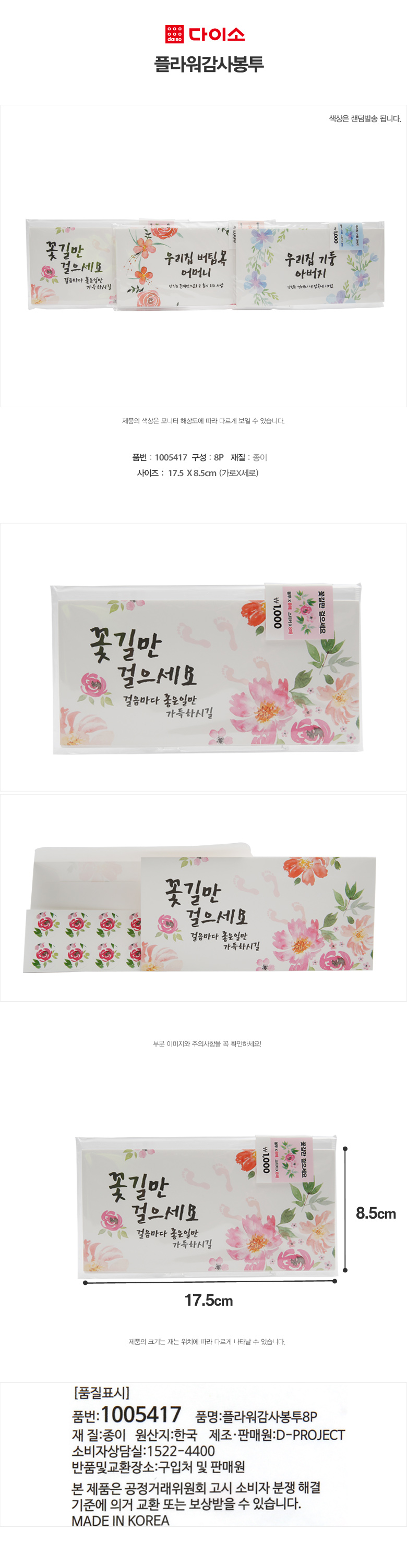 [Daiso] Flower Appreciation Bag 8P-1005417 花花 感谢信封JPY带授权招加盟代理