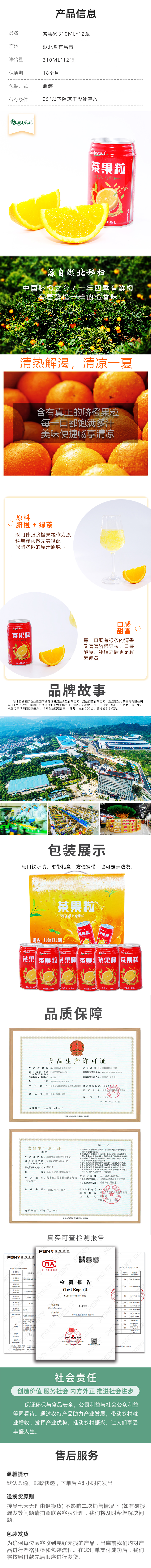 【严选】【秭归脐橙+绿茶 含有真正脐橙果粒 】屈姑茶果粒 310ML*6罐简装/12罐/提 礼盒装 (厂家直发)