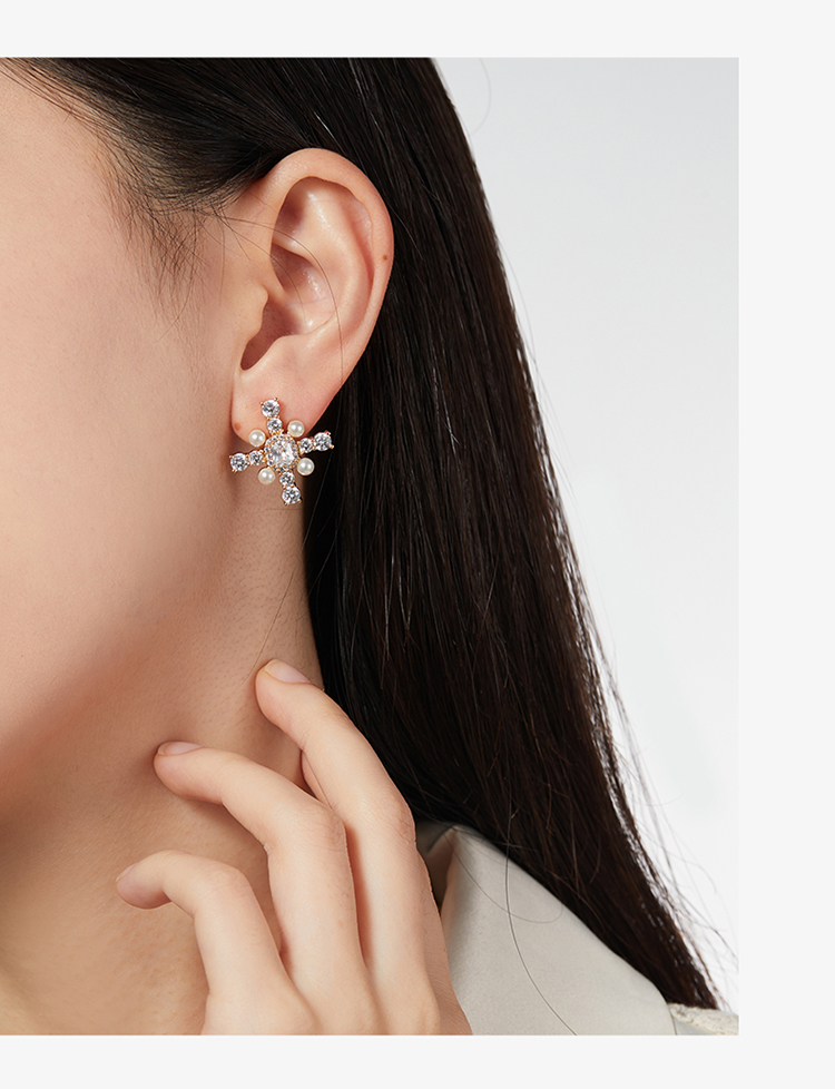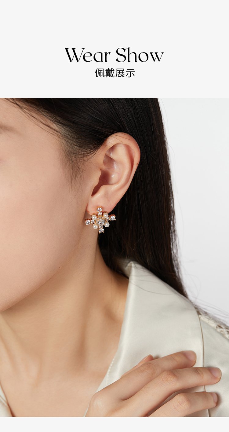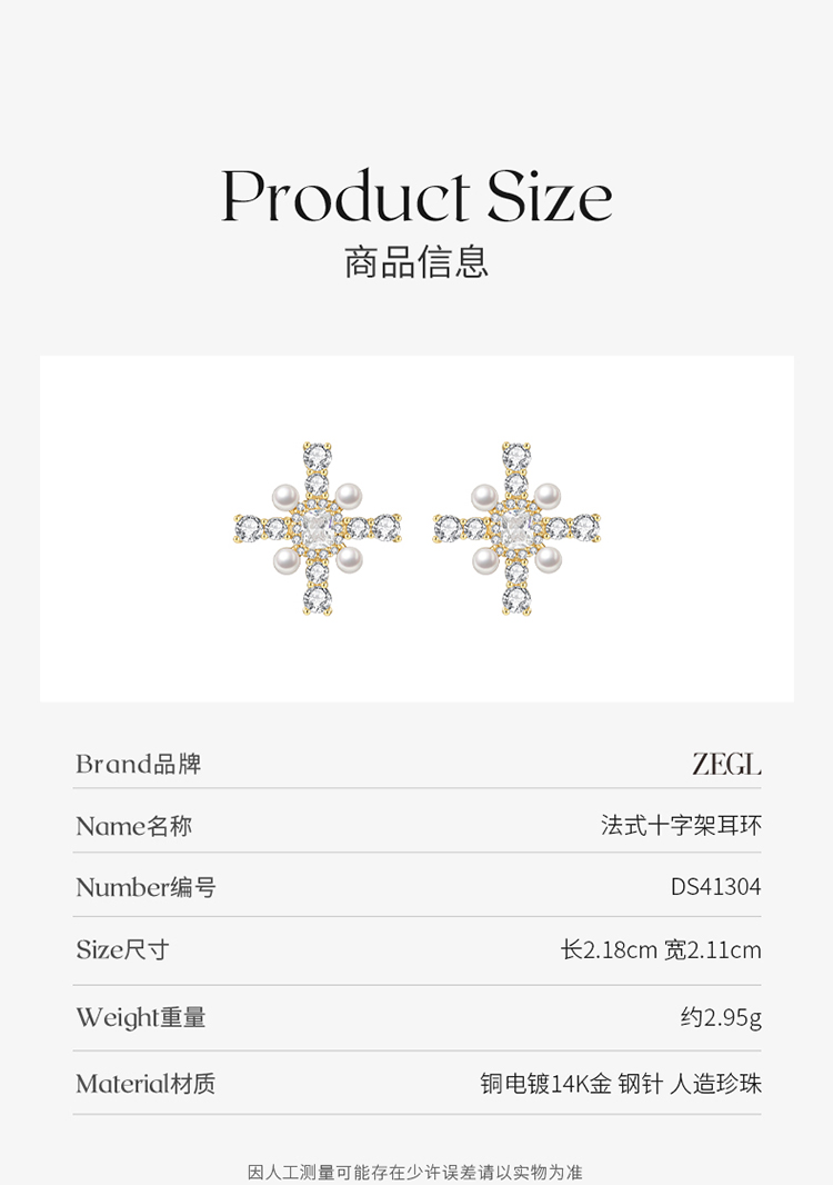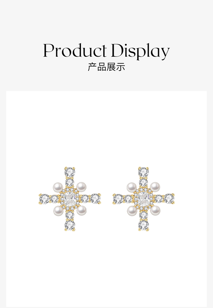 ZEGL设计师法式十字架系列人造珍珠耳环女高级感复古耳钉银针耳饰