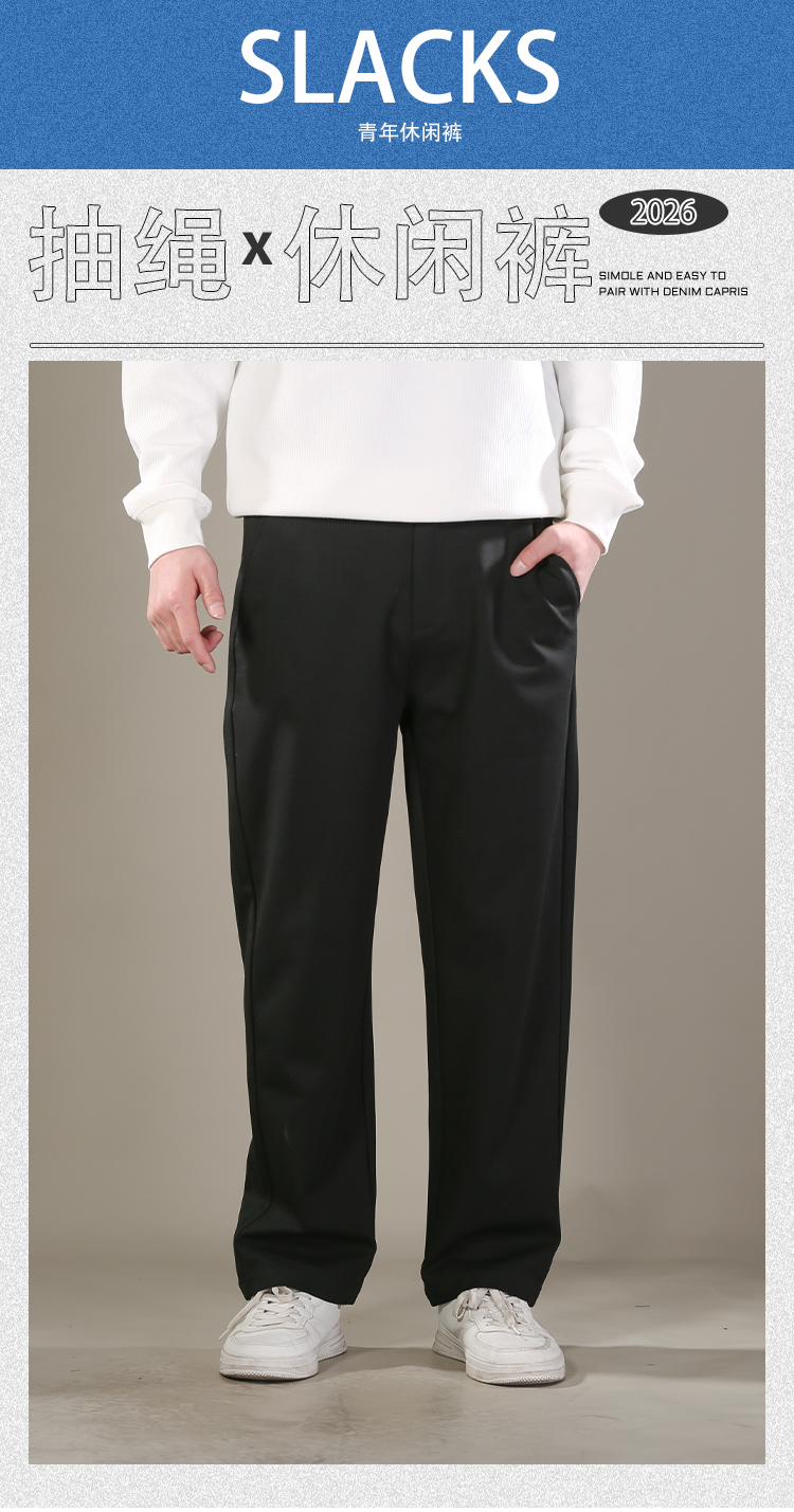 DRONKOO 2026 半松紧腰左口袋压线织唛斜纹小直筒中厚休闲长裤