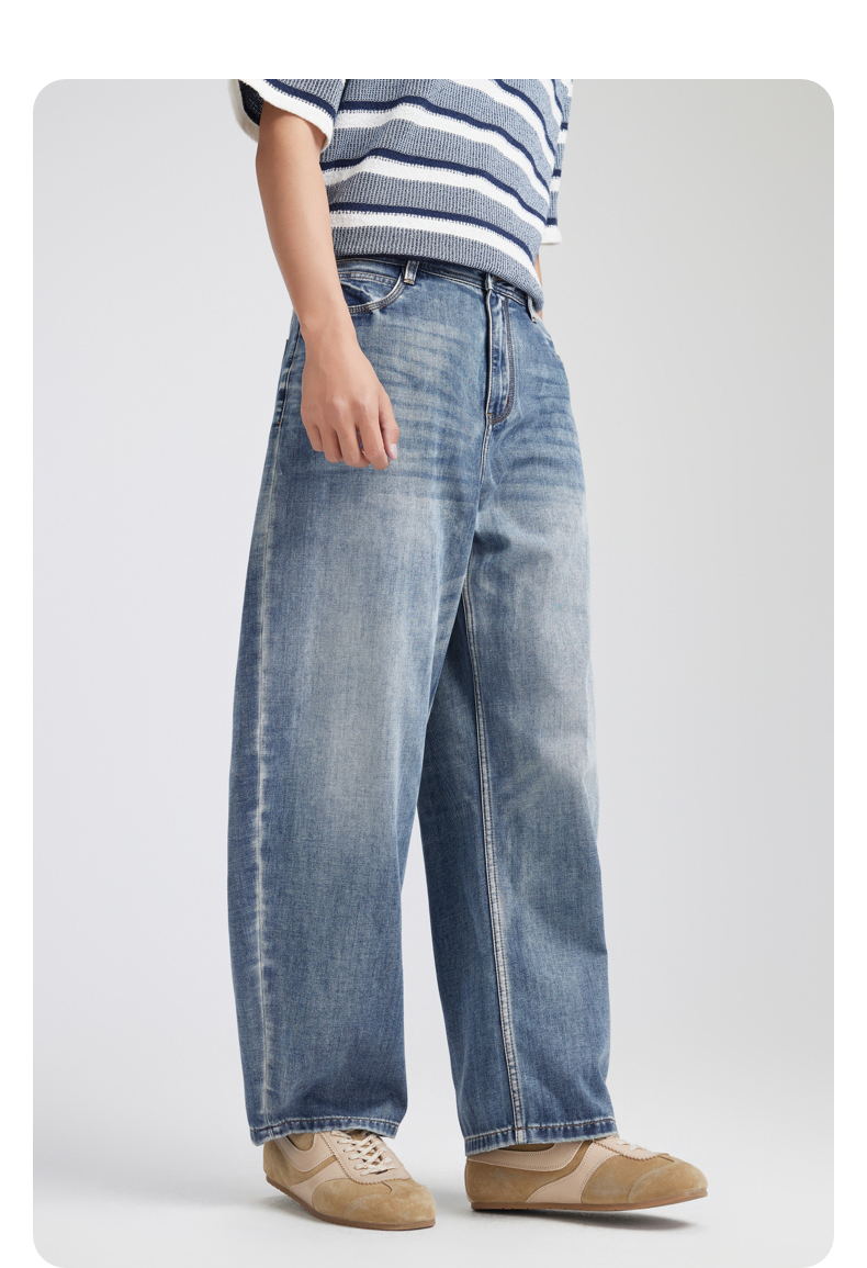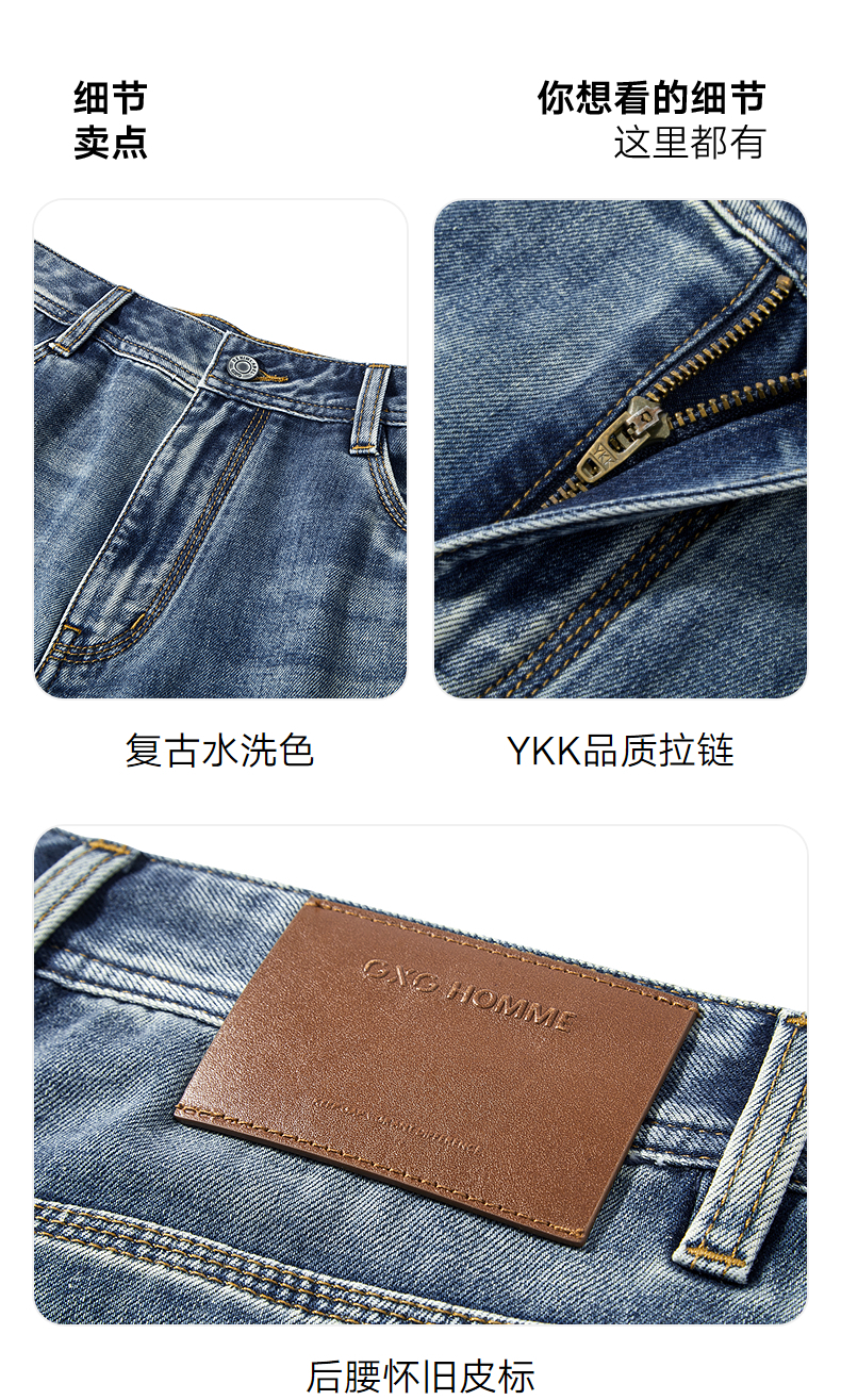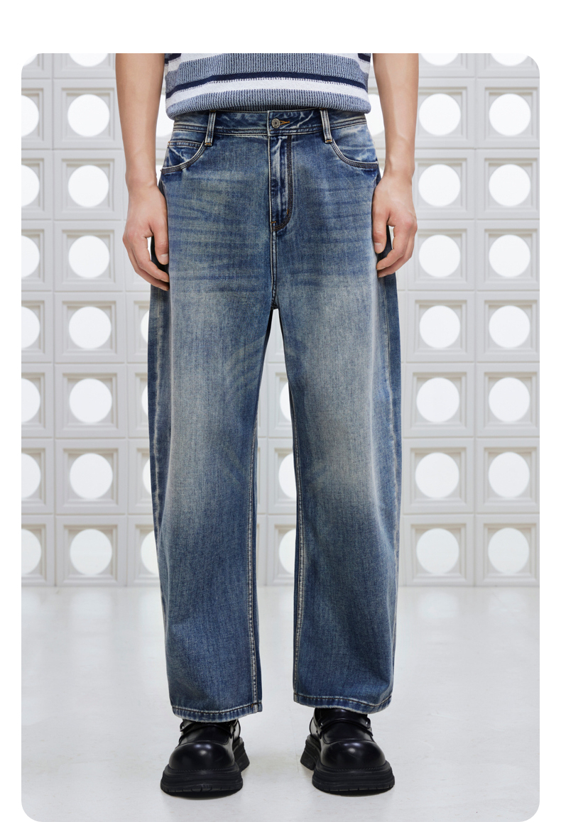 GXG男装 复古水洗宽松锥形牛仔裤休闲裤弹力长裤子 2025夏季新品