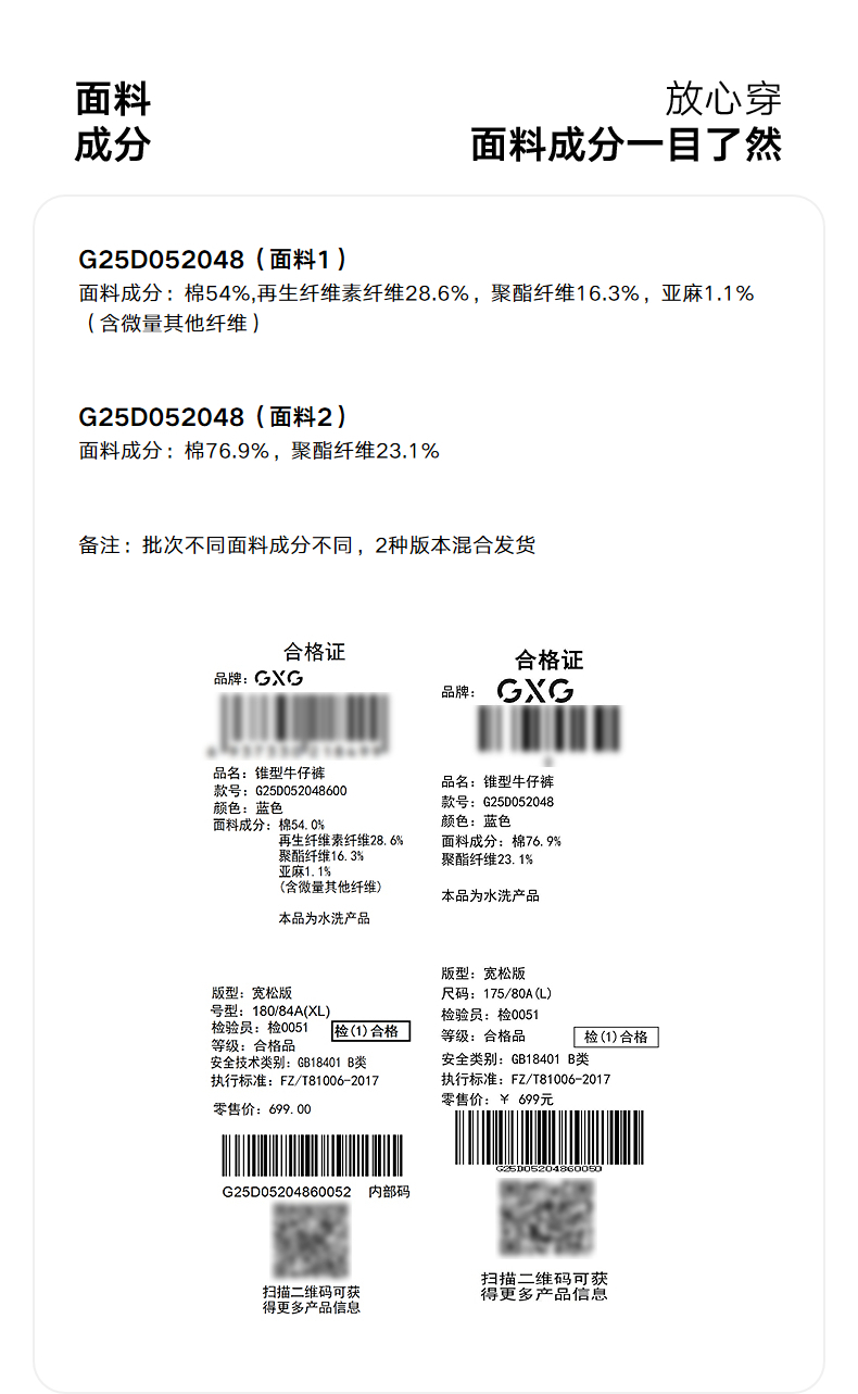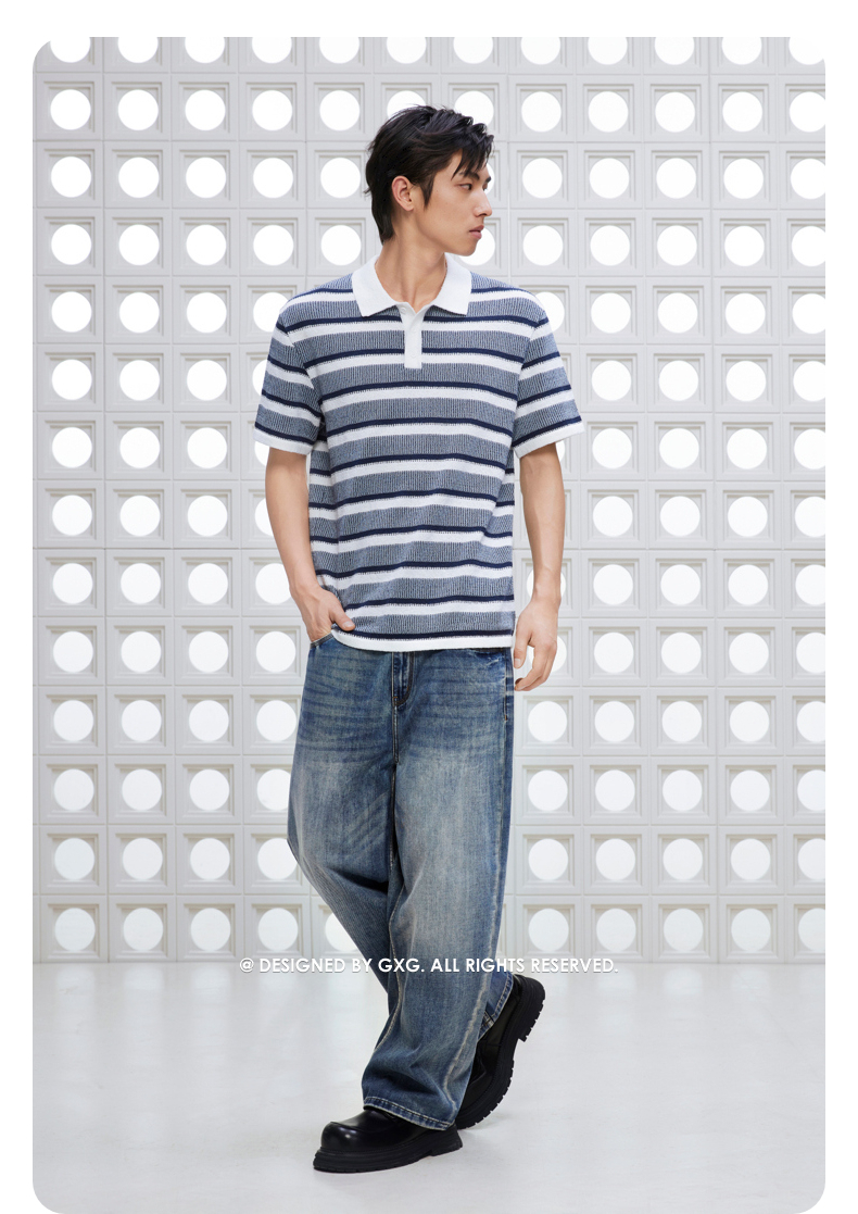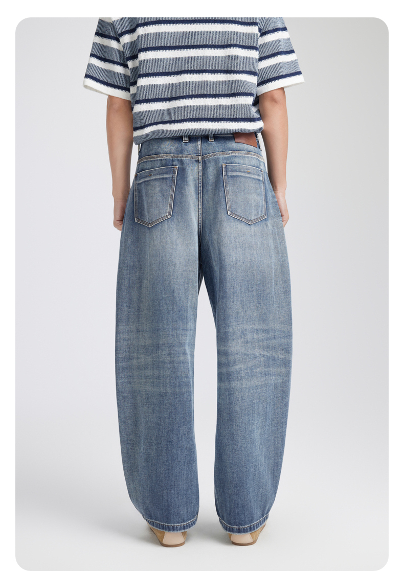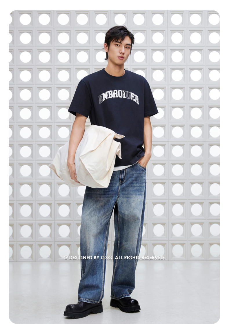 GXG男装 复古水洗宽松锥形牛仔裤休闲裤弹力长裤子 2025夏季新品