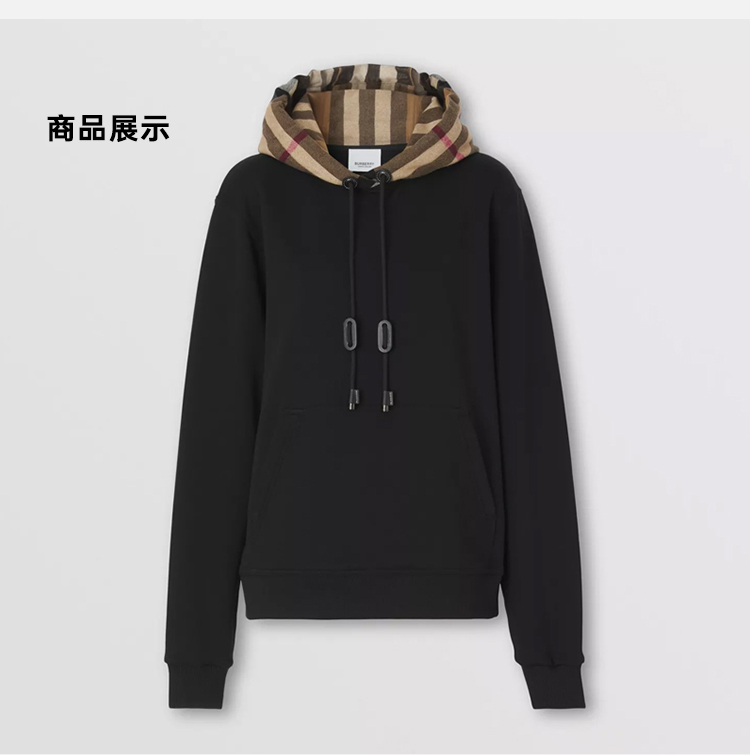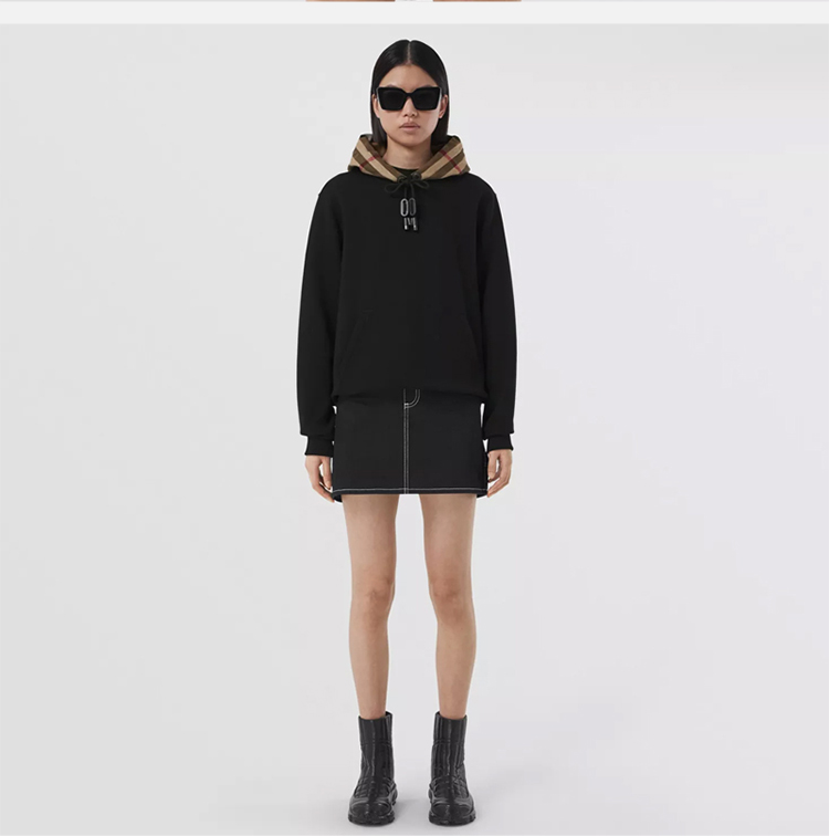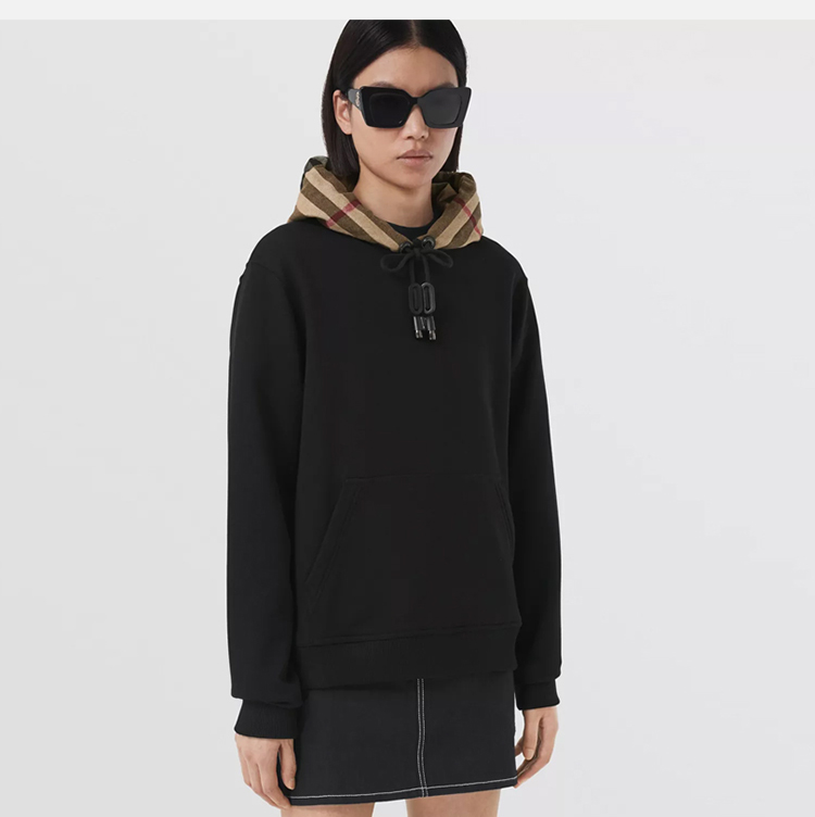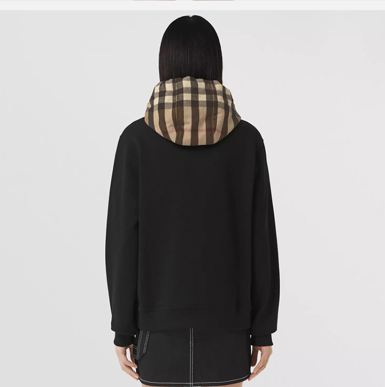 【一】BURBERRY 巴宝莉 女士格纹连帽棉质大廓形连帽卫衣 黑色 8050951 A1189