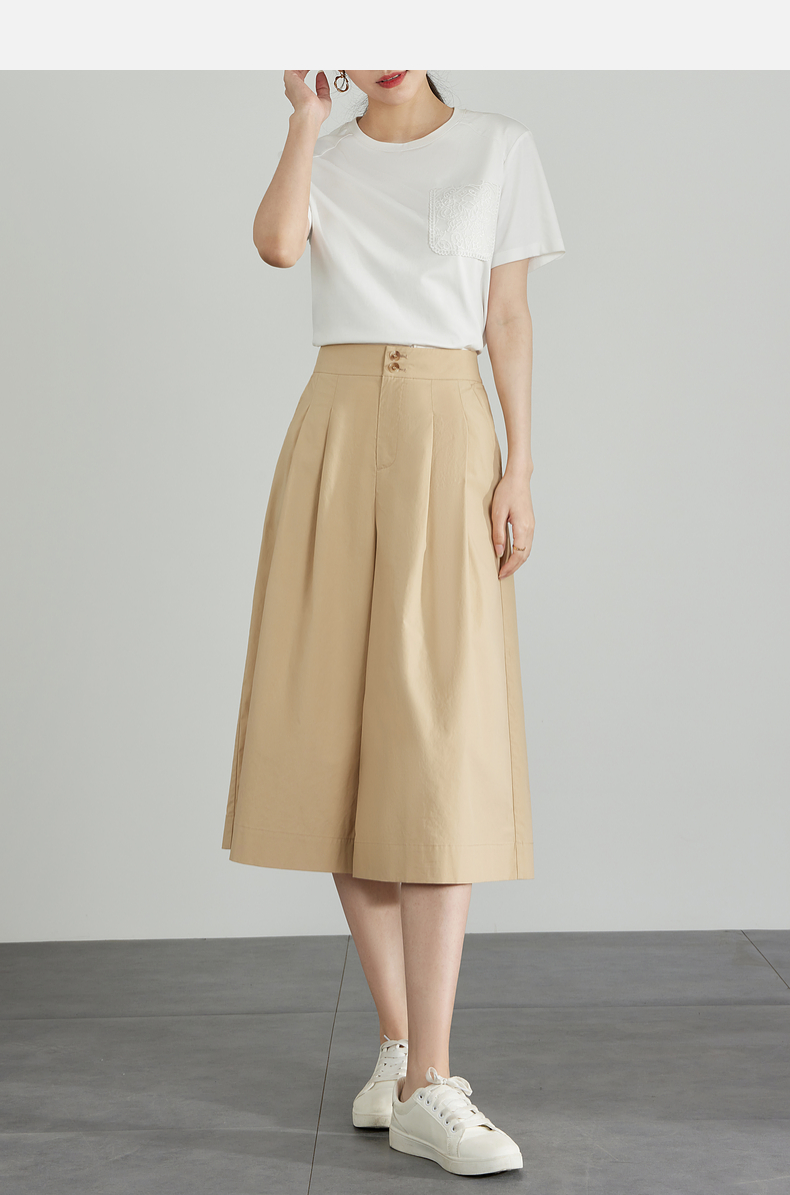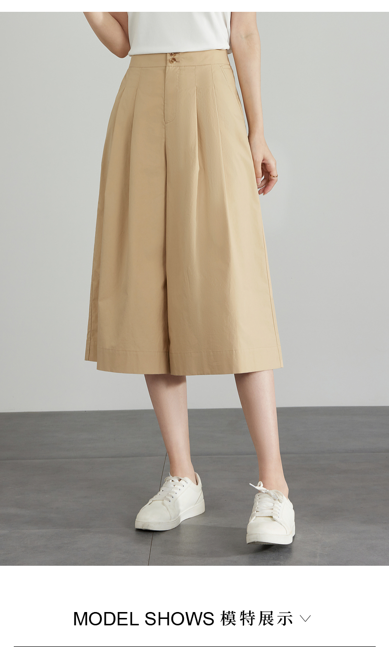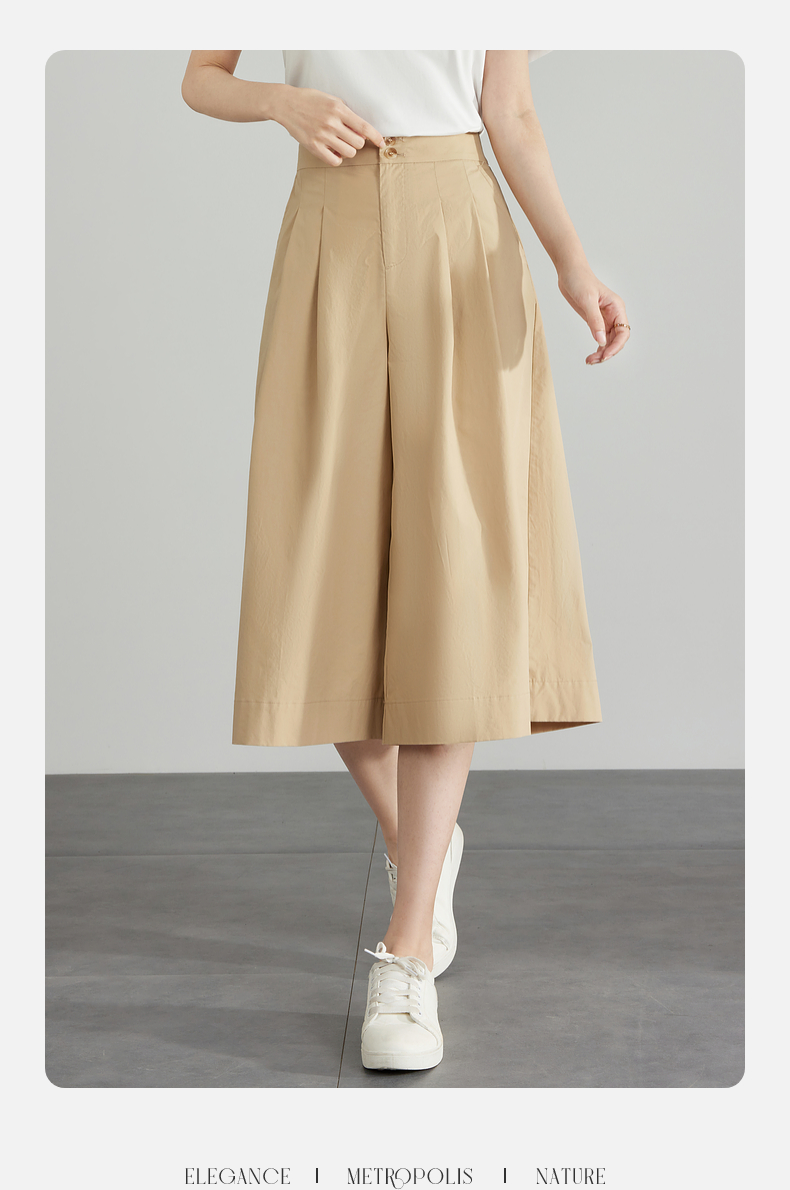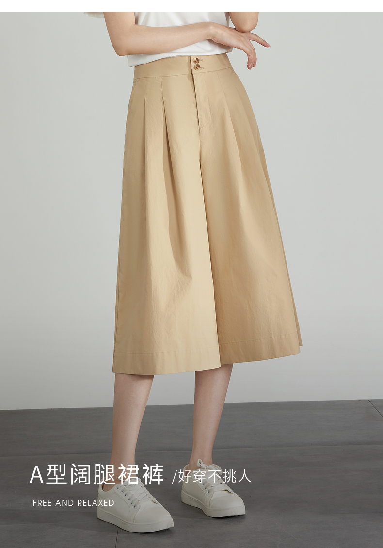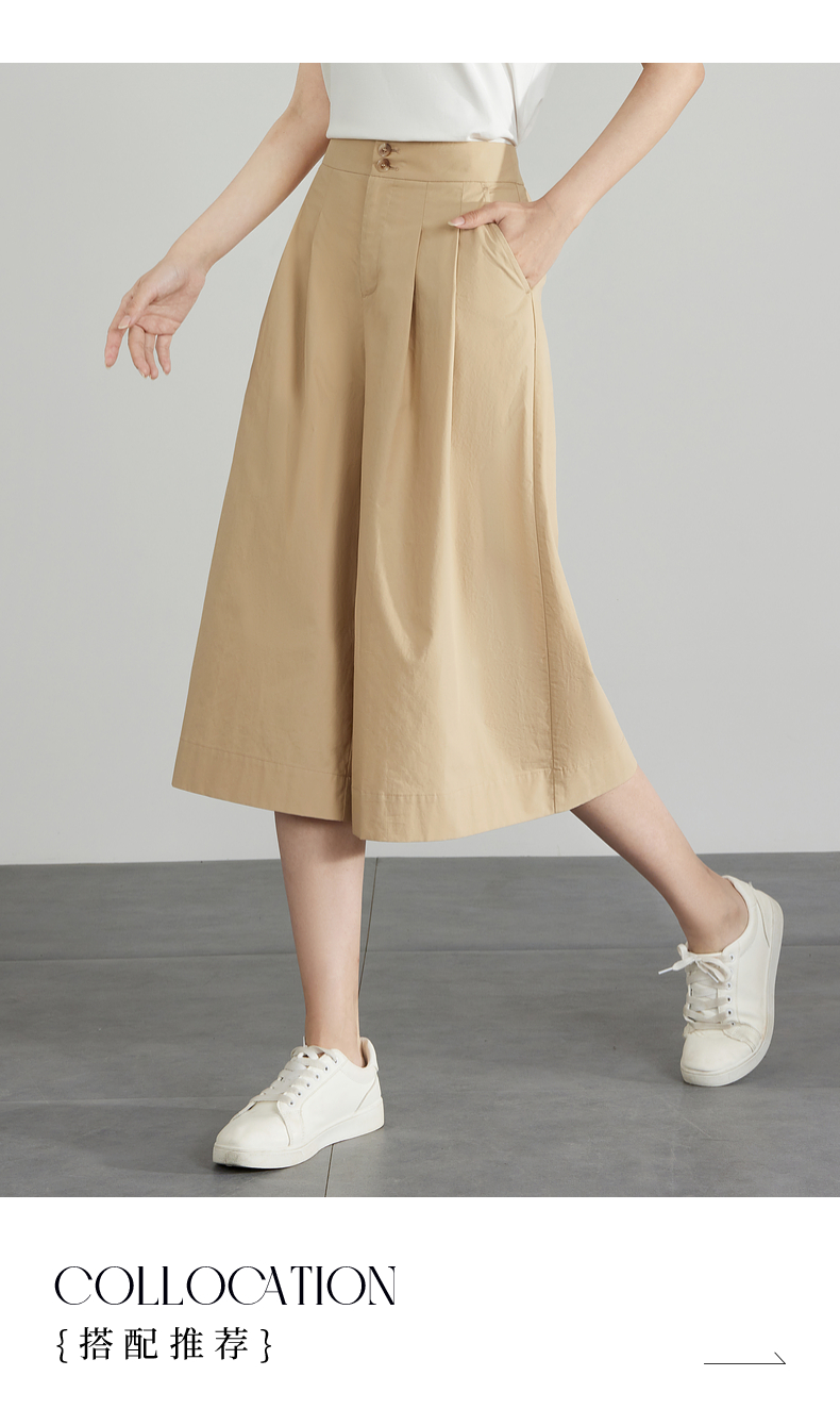【五折购】熙世界通勤七分裙裤夏季新款百搭宽松垂感高腰休闲阔腿裤山本裤