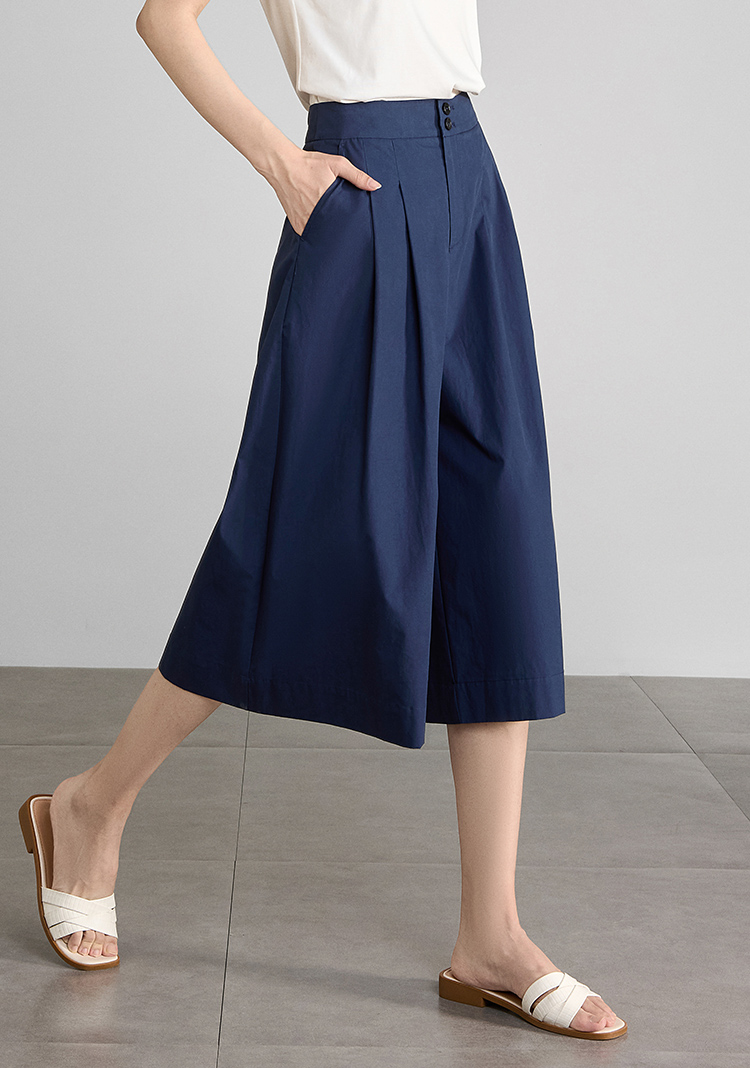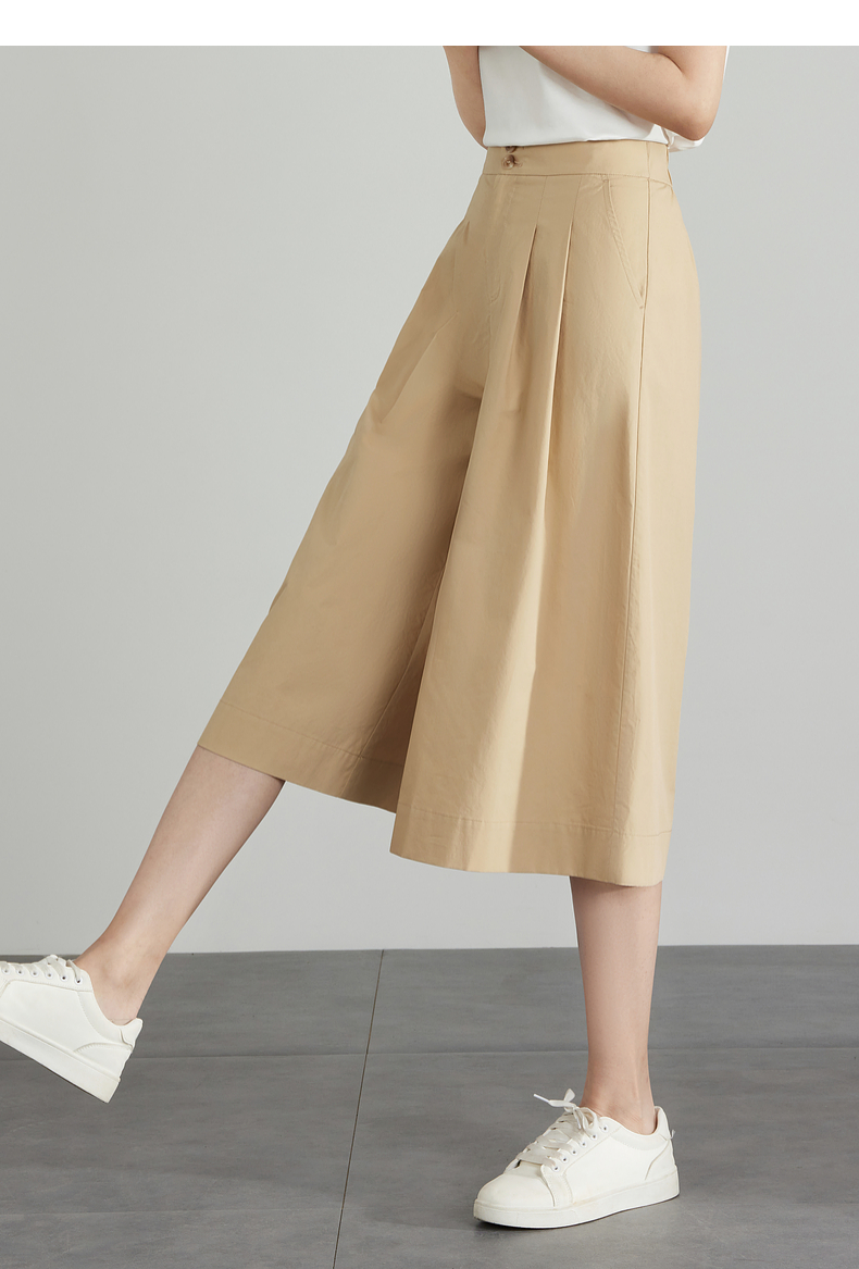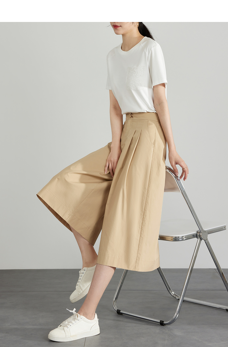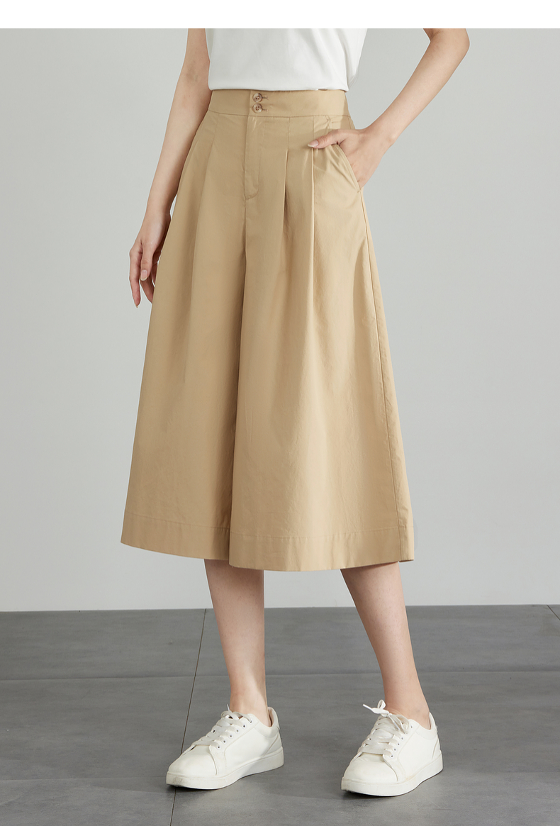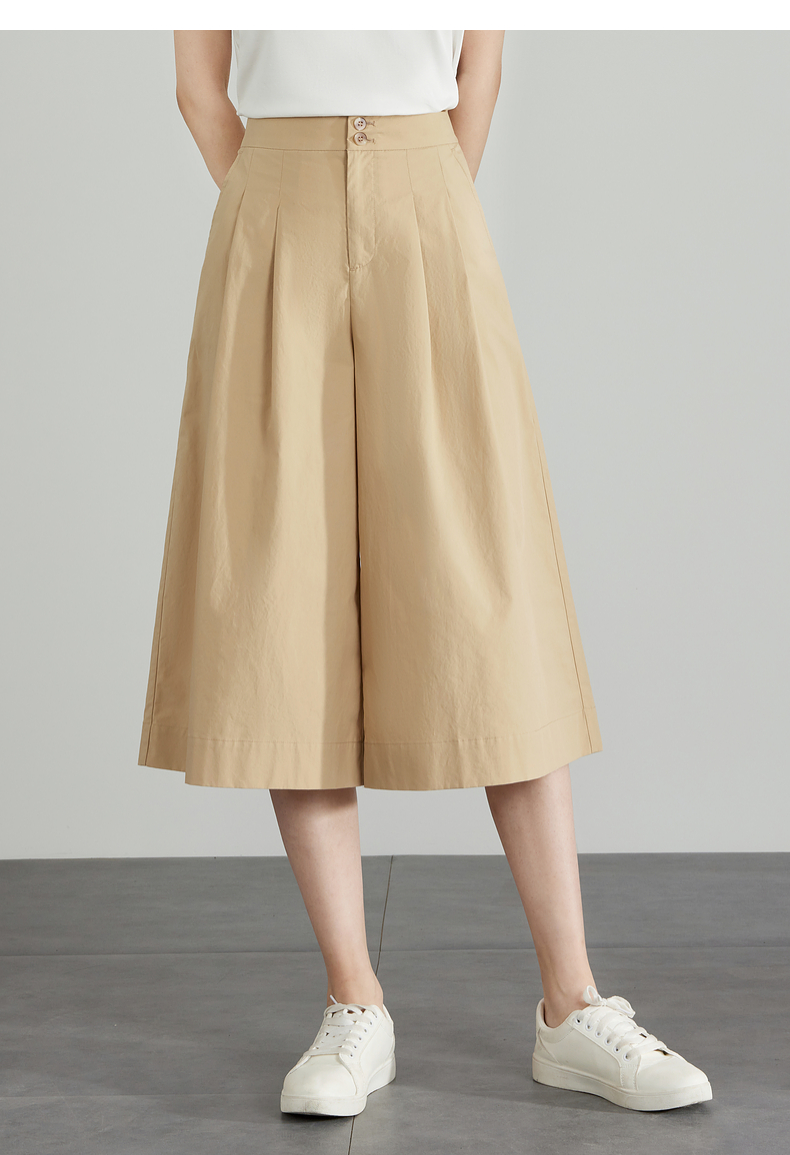 【五折购】熙世界通勤七分裙裤夏季新款百搭宽松垂感高腰休闲阔腿裤山本裤