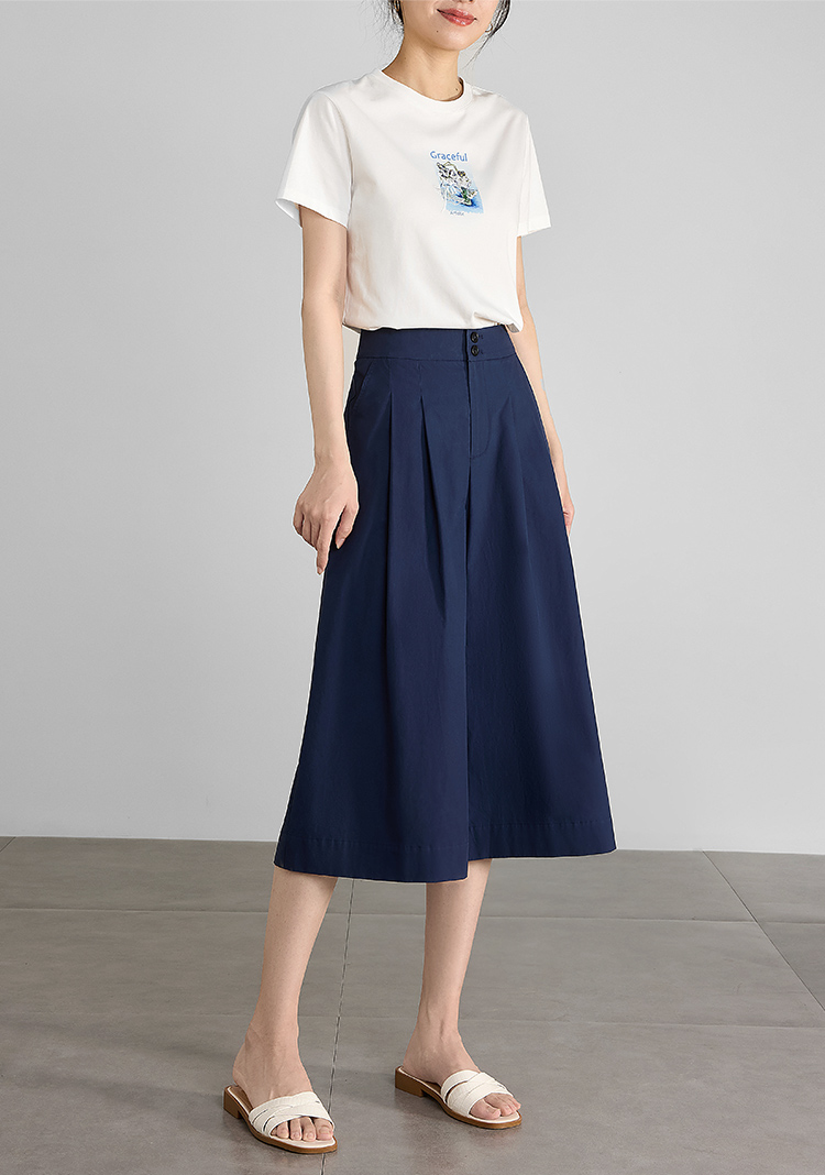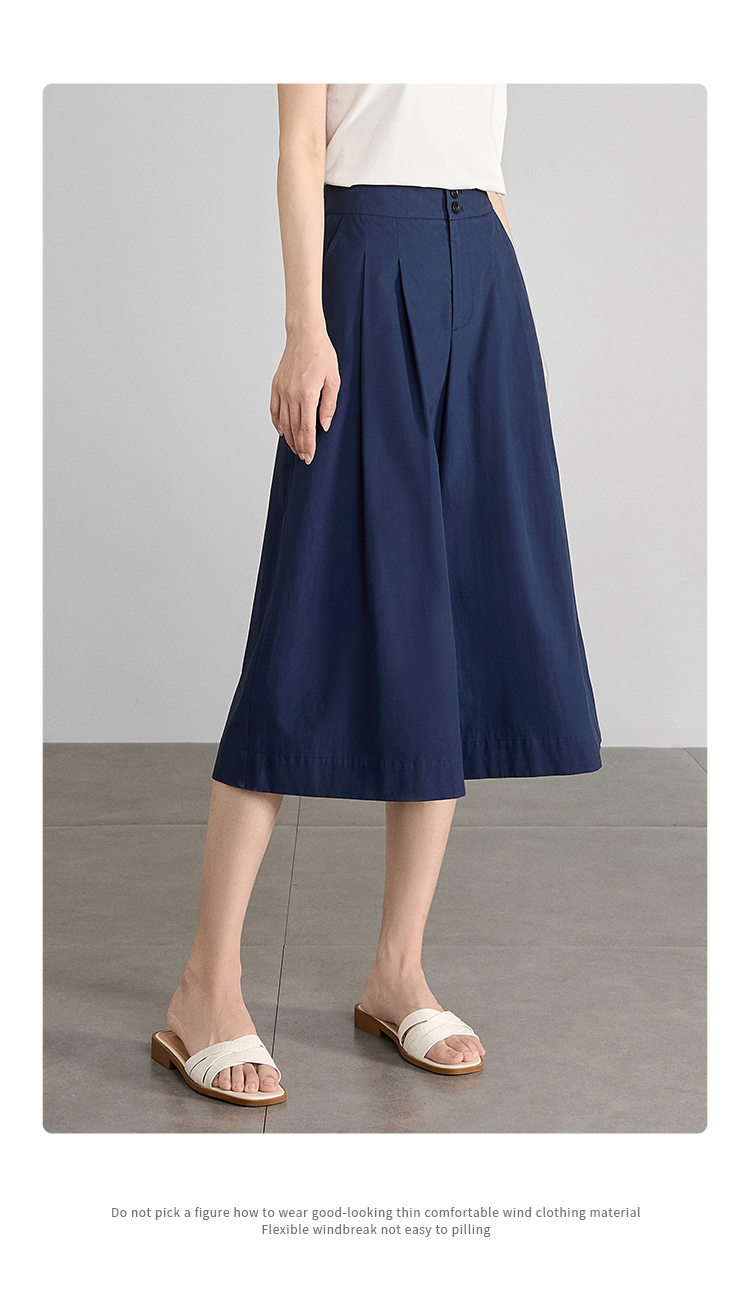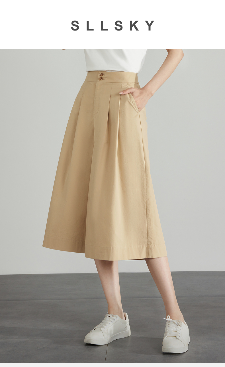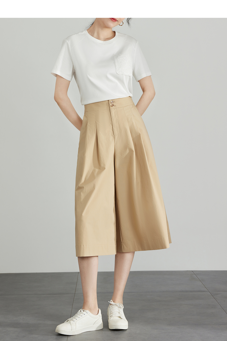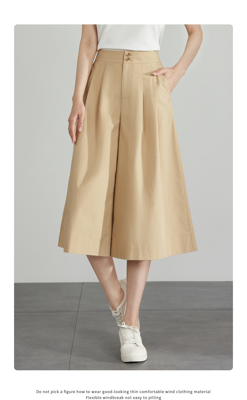 【五折购】熙世界通勤七分裙裤夏季新款百搭宽松垂感高腰休闲阔腿裤山本裤