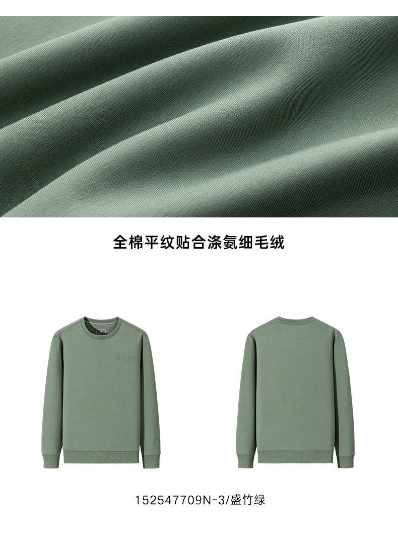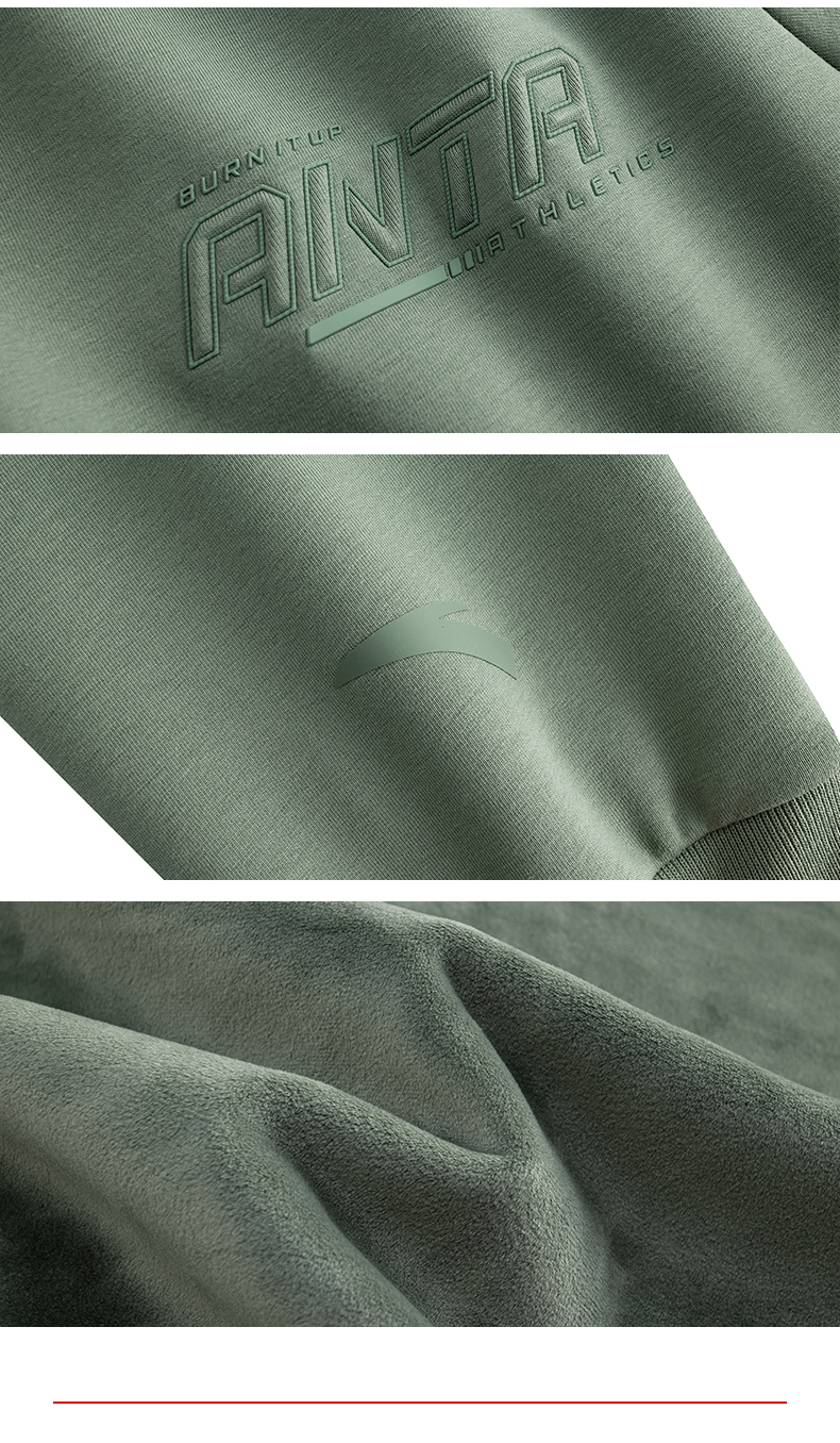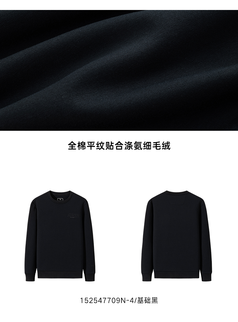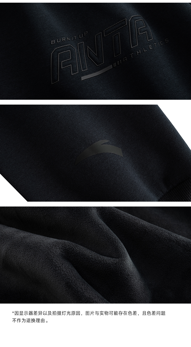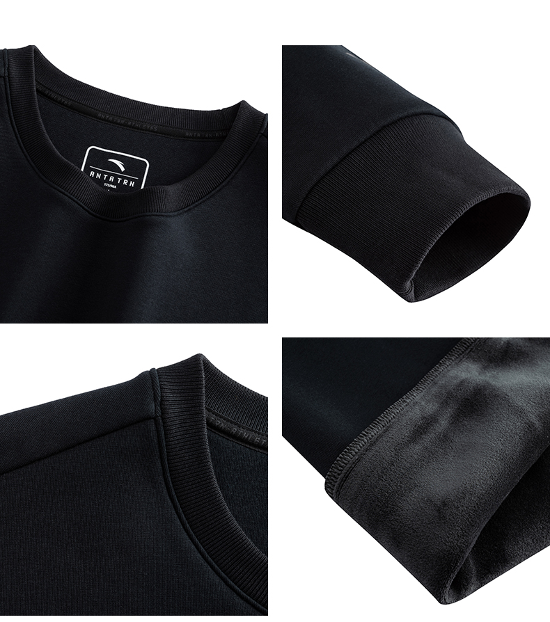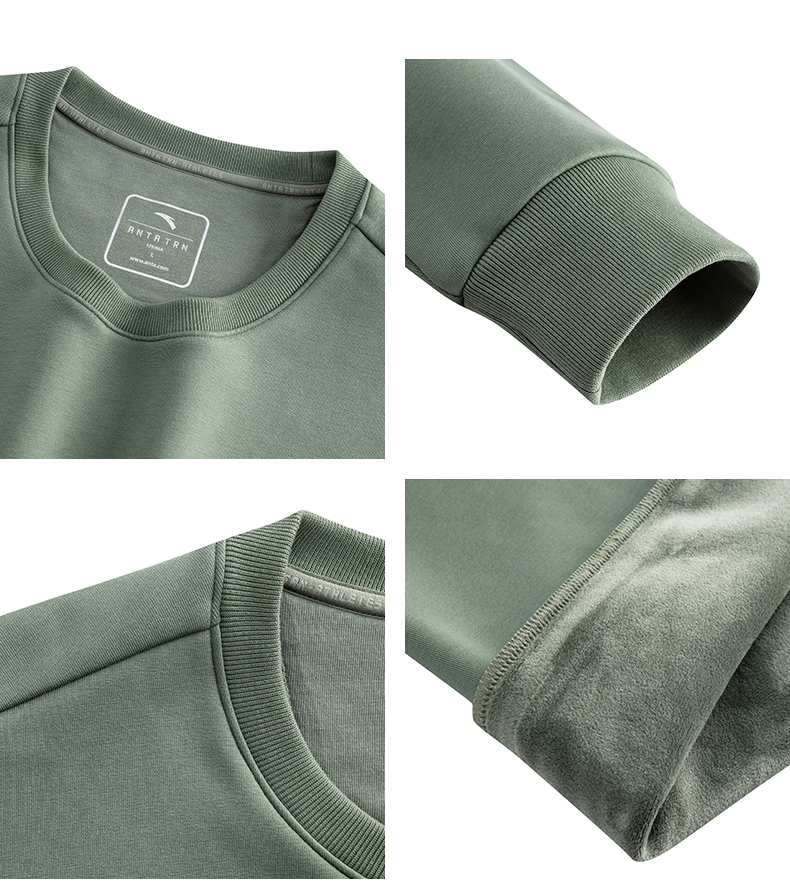 安踏加绒运动卫衣男装圆领套头衫长袖上衣152547709N-3