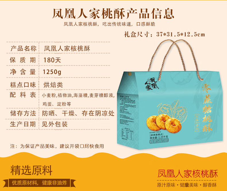 【分仓直发包邮】凤凰人家零蔗糖桃酥1.25kg