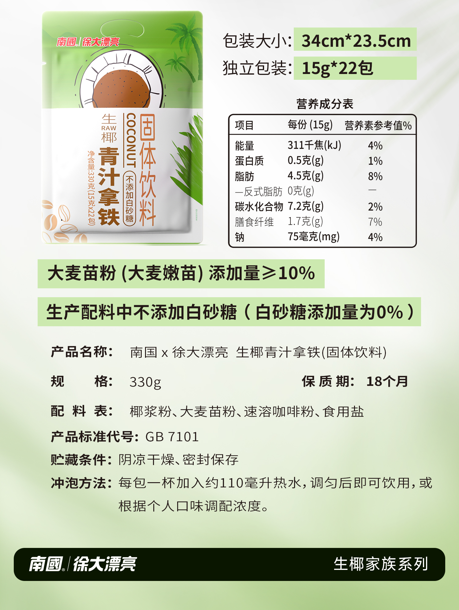 南国生椰青汁拿铁330g 自律期快乐水 轻盈随享 48小时发货