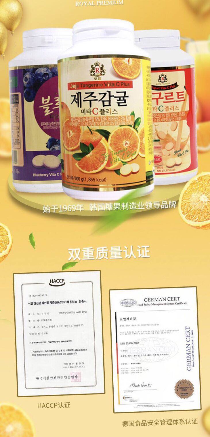 韩国济州岛/柑橘维生素c片酸奶味/维他命咀嚼维c片