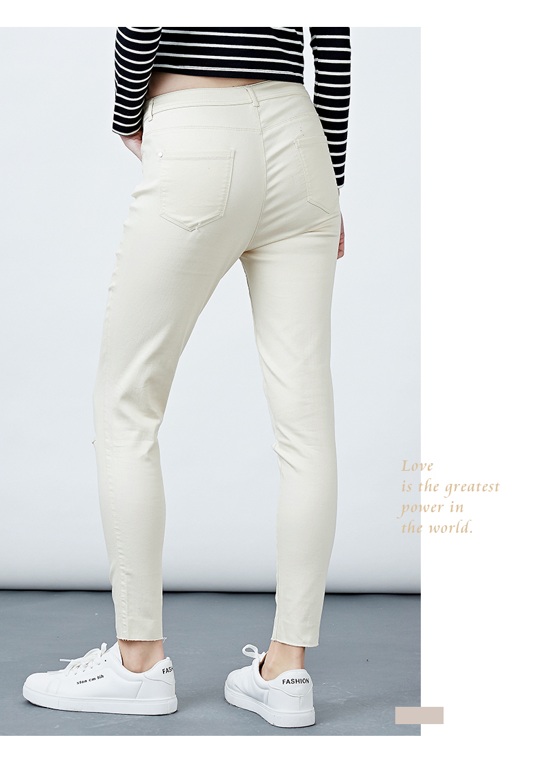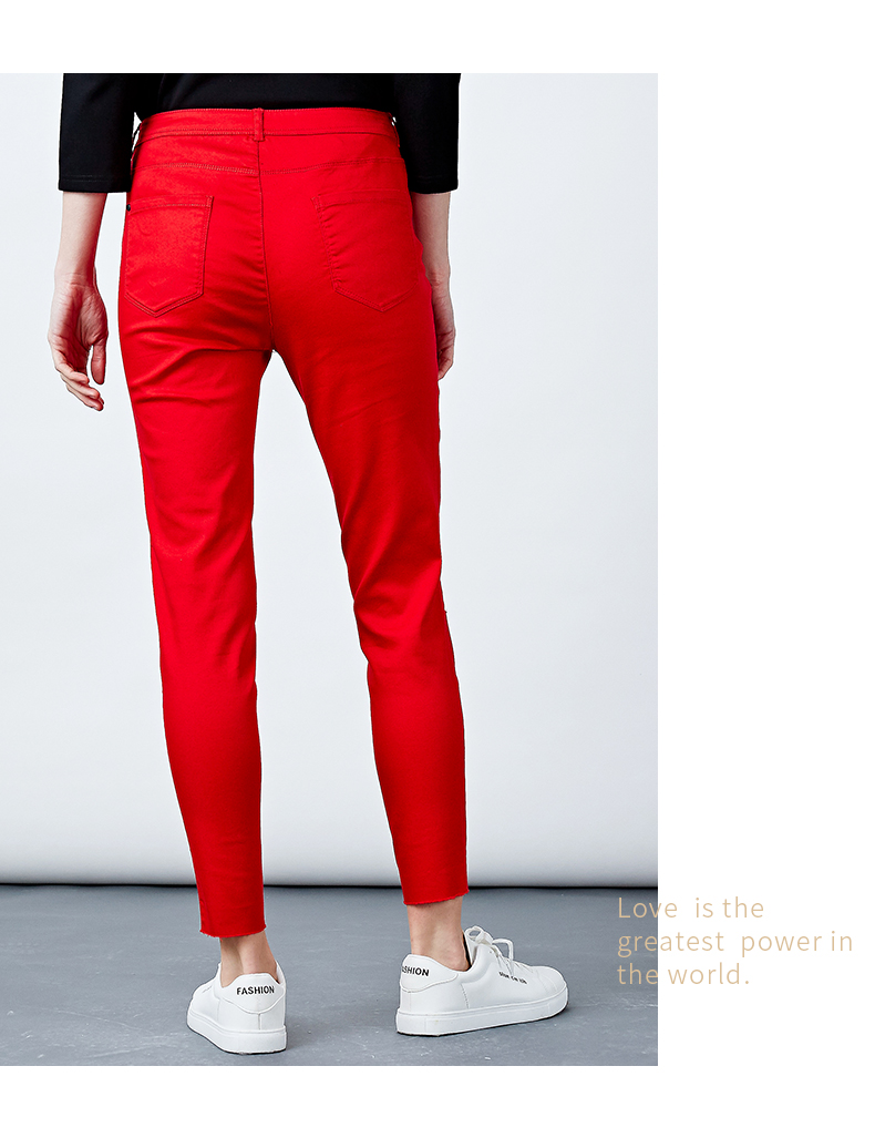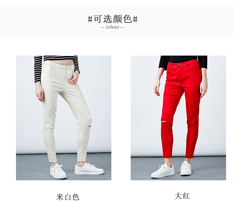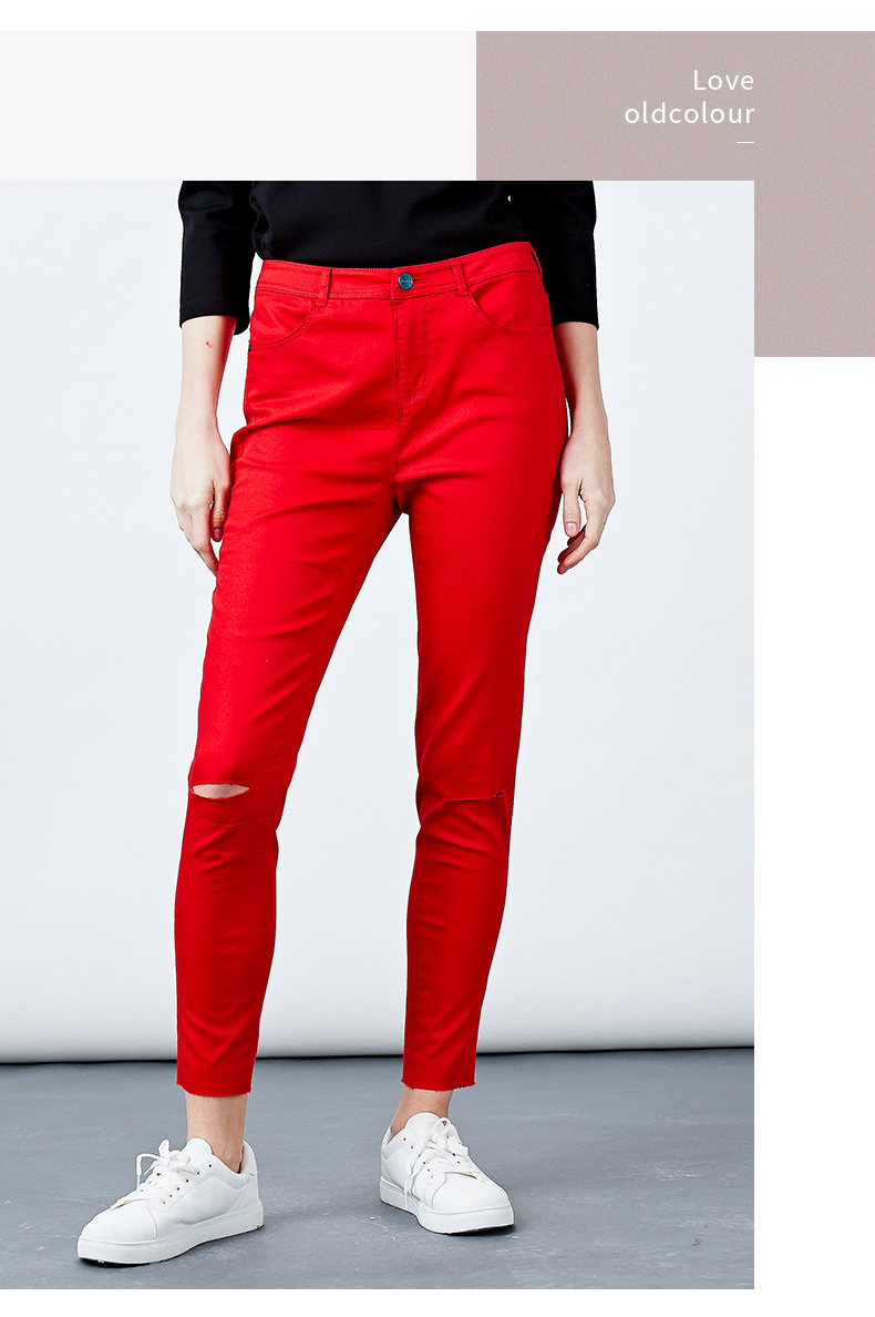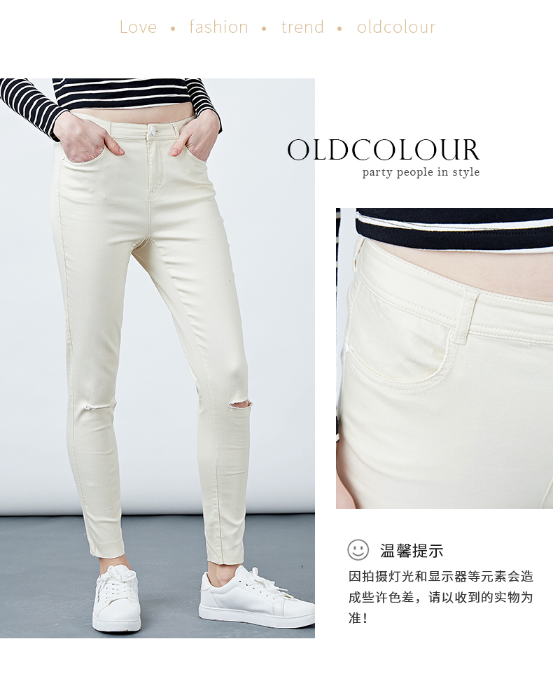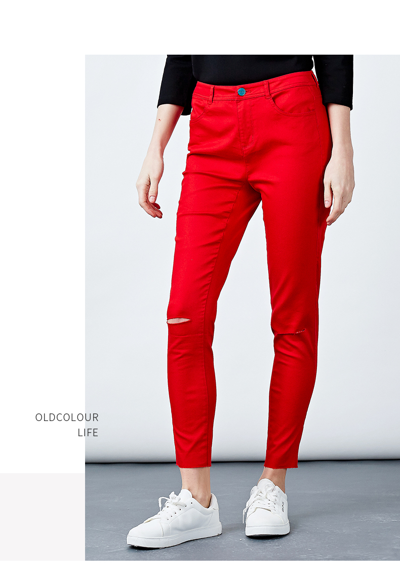 oldcolour裤子女春破洞纯色小脚裤女春秋款修身长裤女