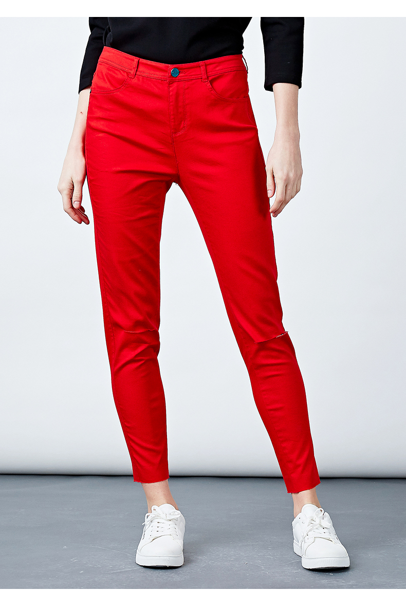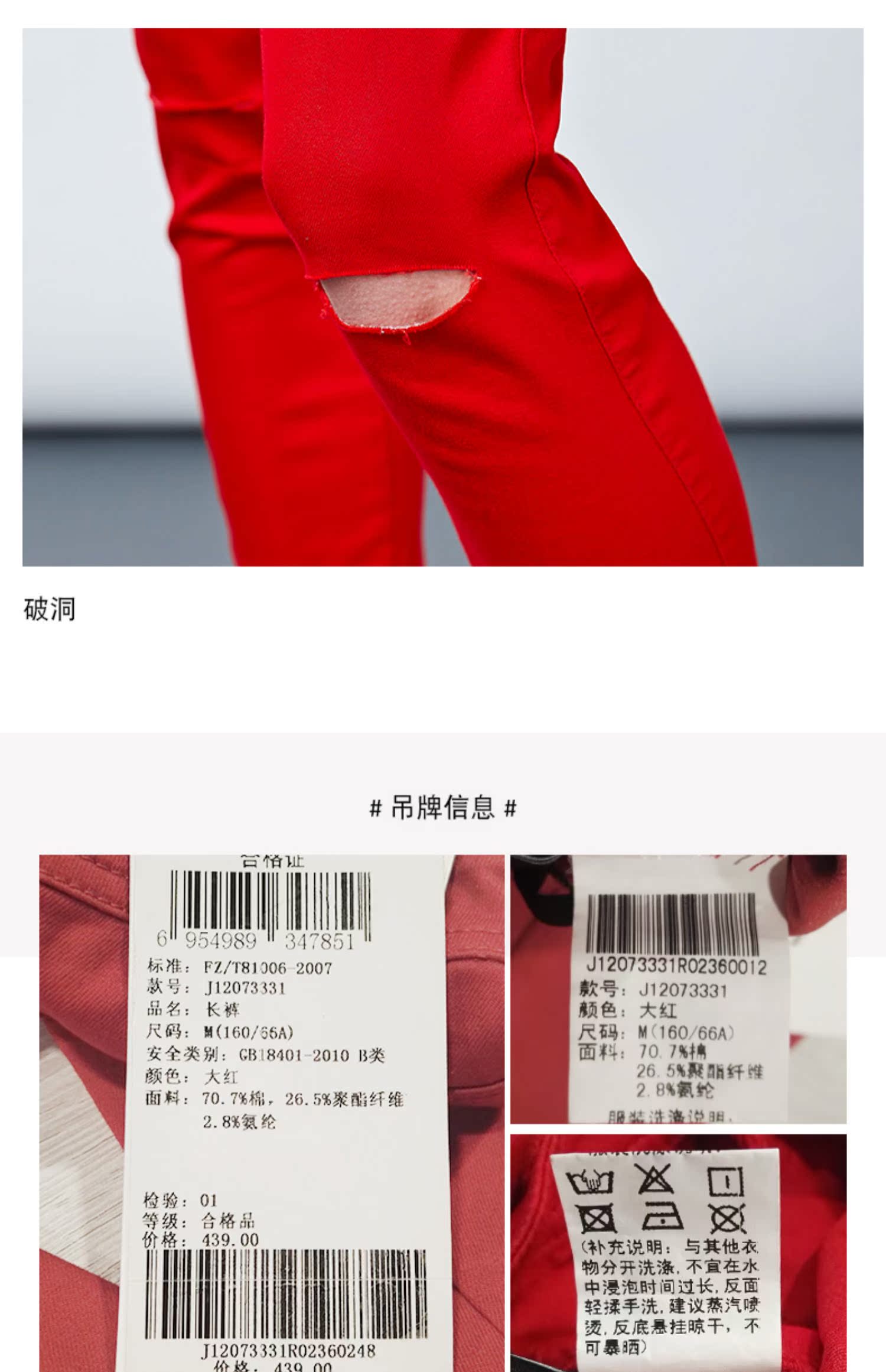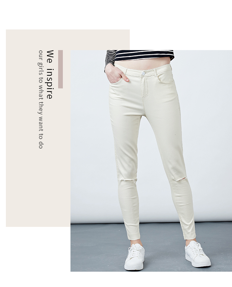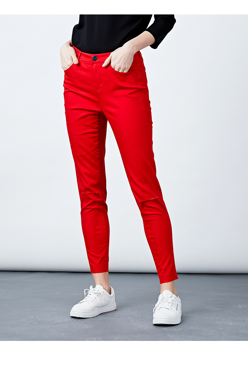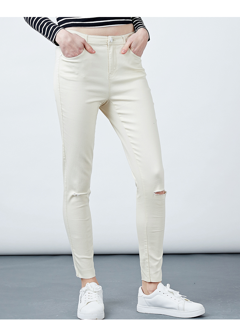 oldcolour裤子女春破洞纯色小脚裤女春秋款修身长裤女