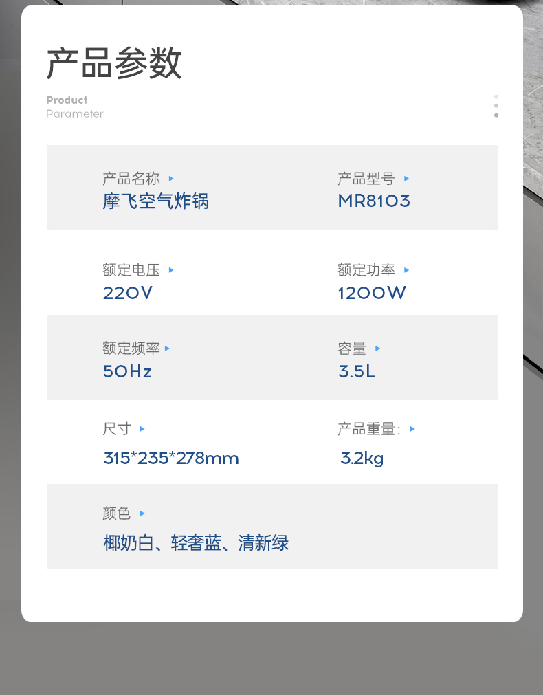 摩飞空气炸锅MR8103 可视化智能一体自由控温控时电炸锅