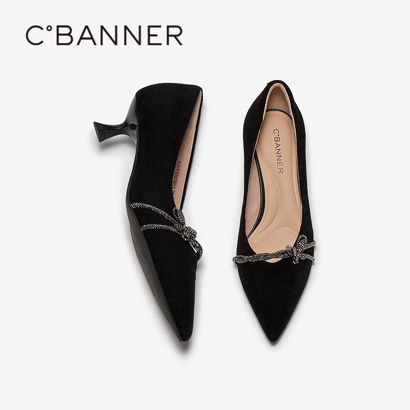 千百度CºBANNER2025新款小猫跟羊皮婚鞋A25176803