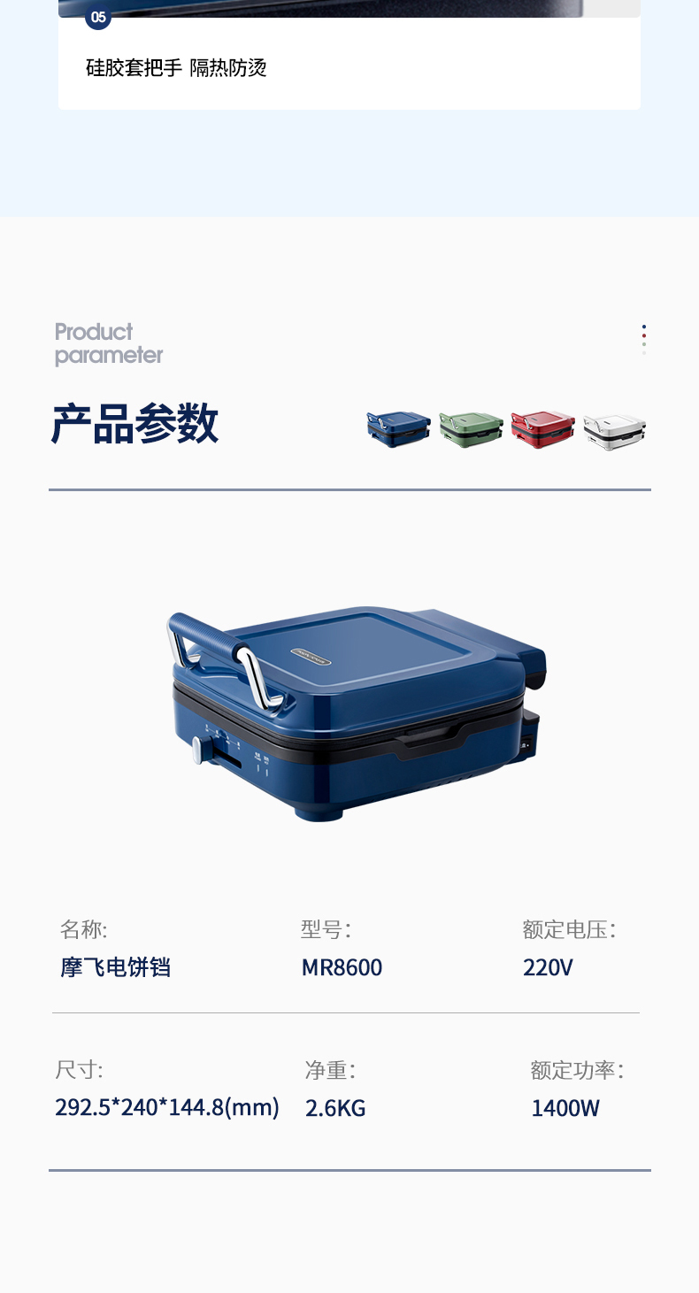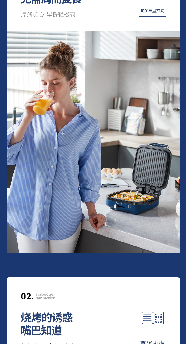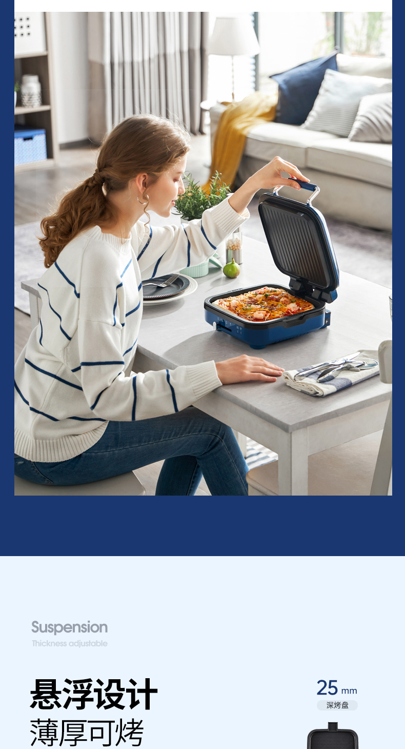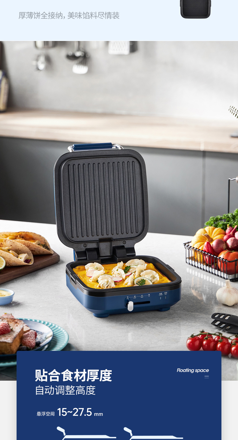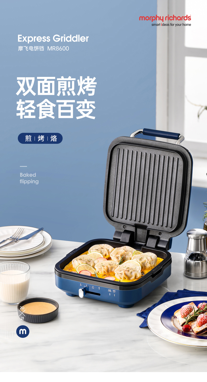 摩飞电饼铛烤肉烧烤烙饼双面加热大火力三明治早餐机加深烙饼煎饼锅21cm悬浮设计双面不粘锅MR8600-XJ