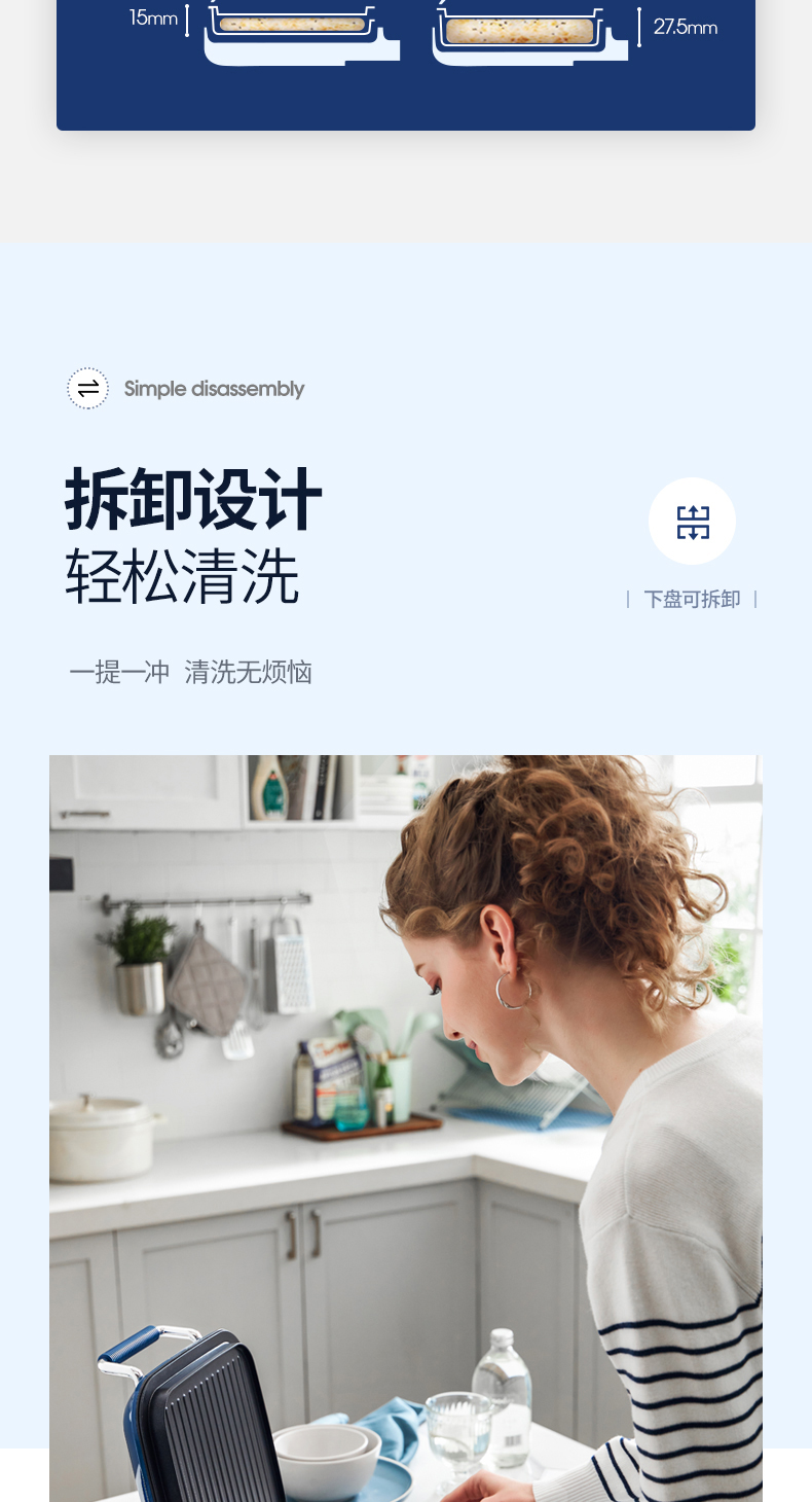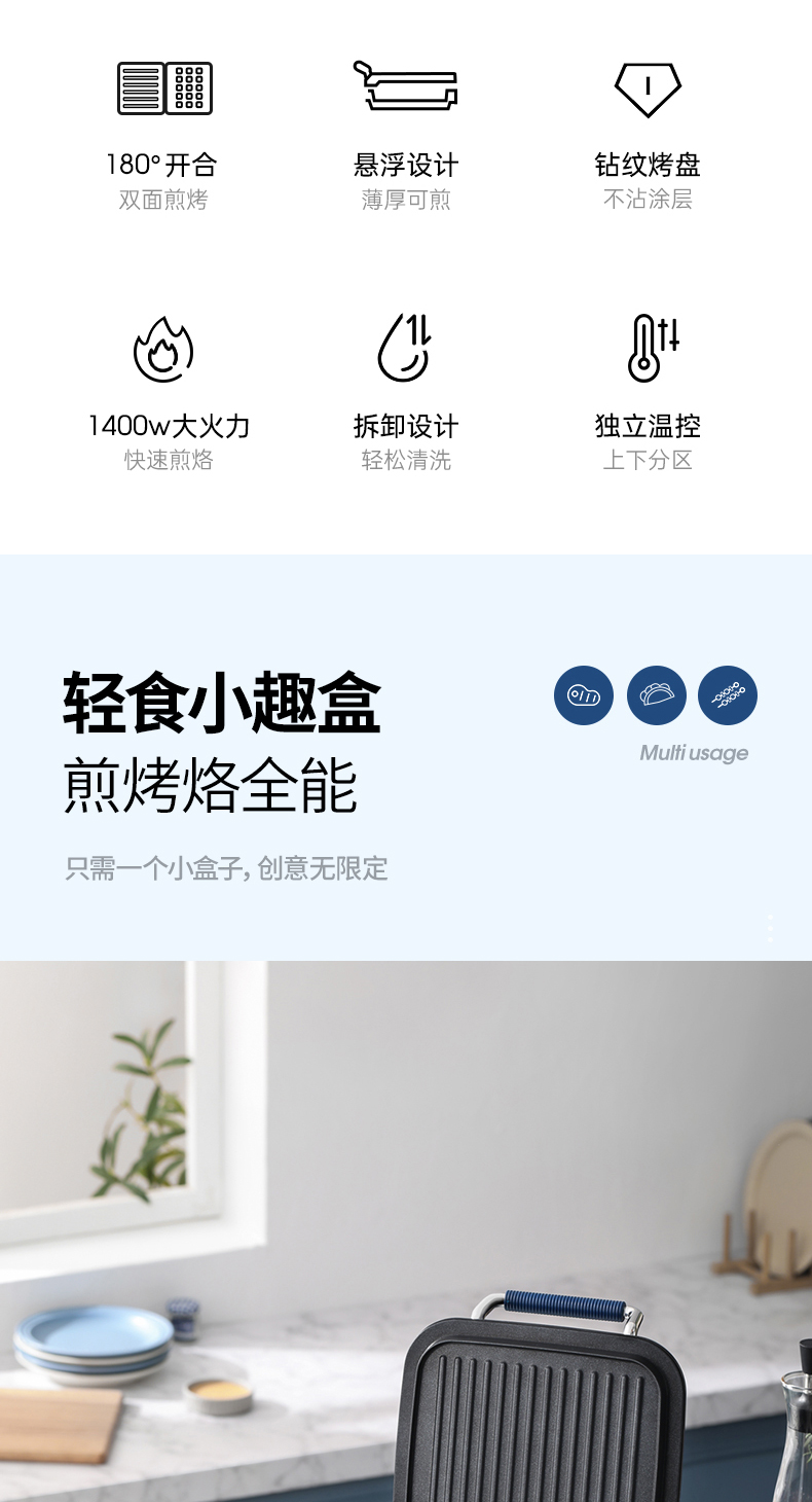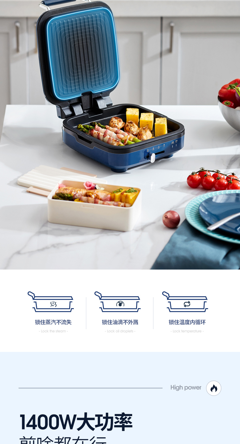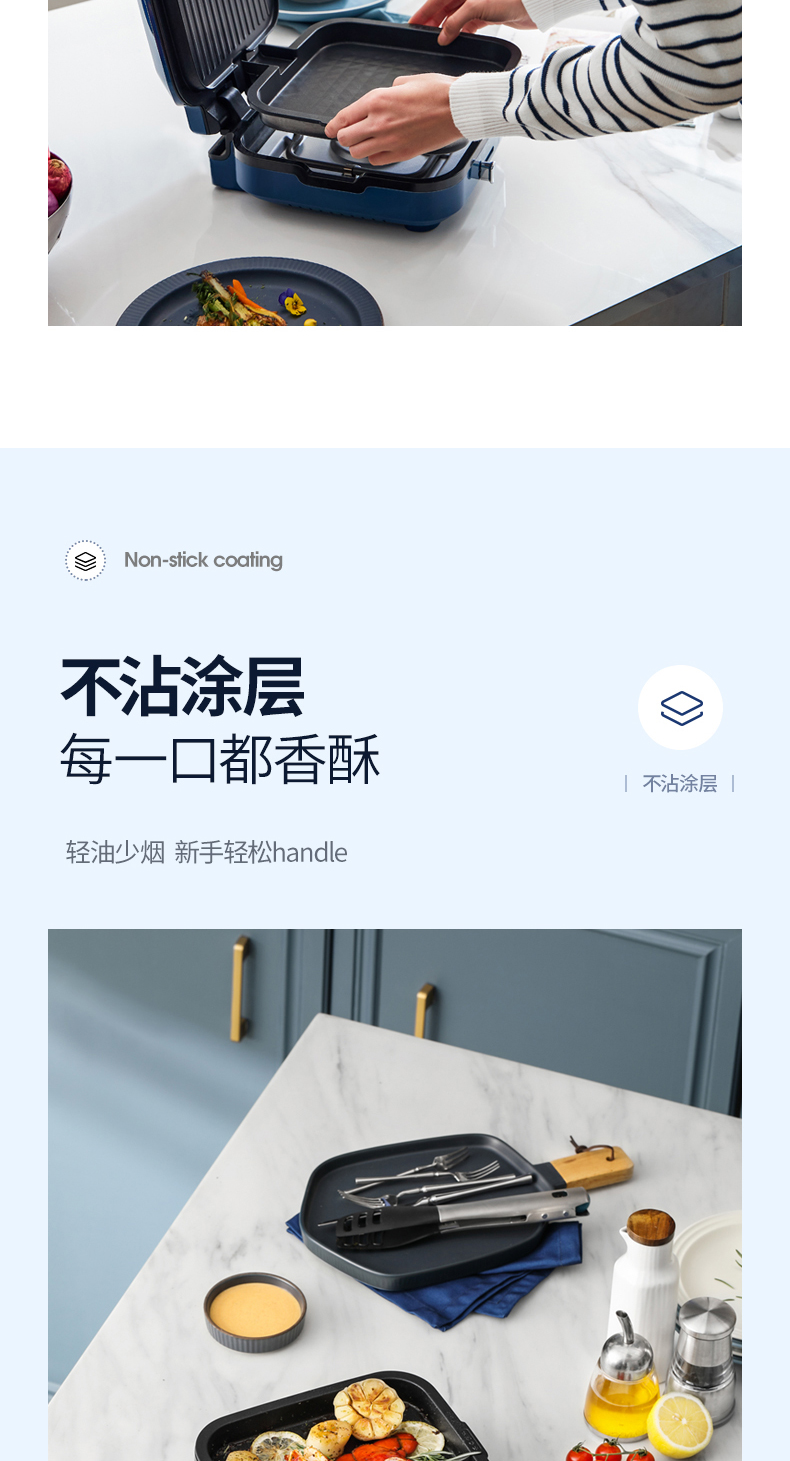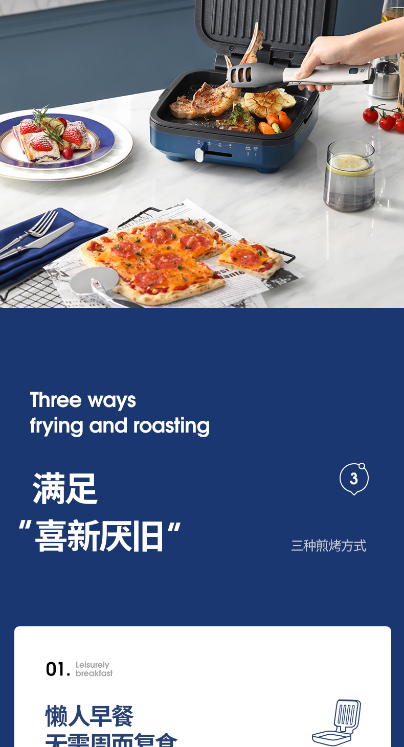 摩飞电饼铛烤肉烧烤烙饼双面加热大火力三明治早餐机加深烙饼煎饼锅21cm悬浮设计双面不粘锅MR8600-XJ