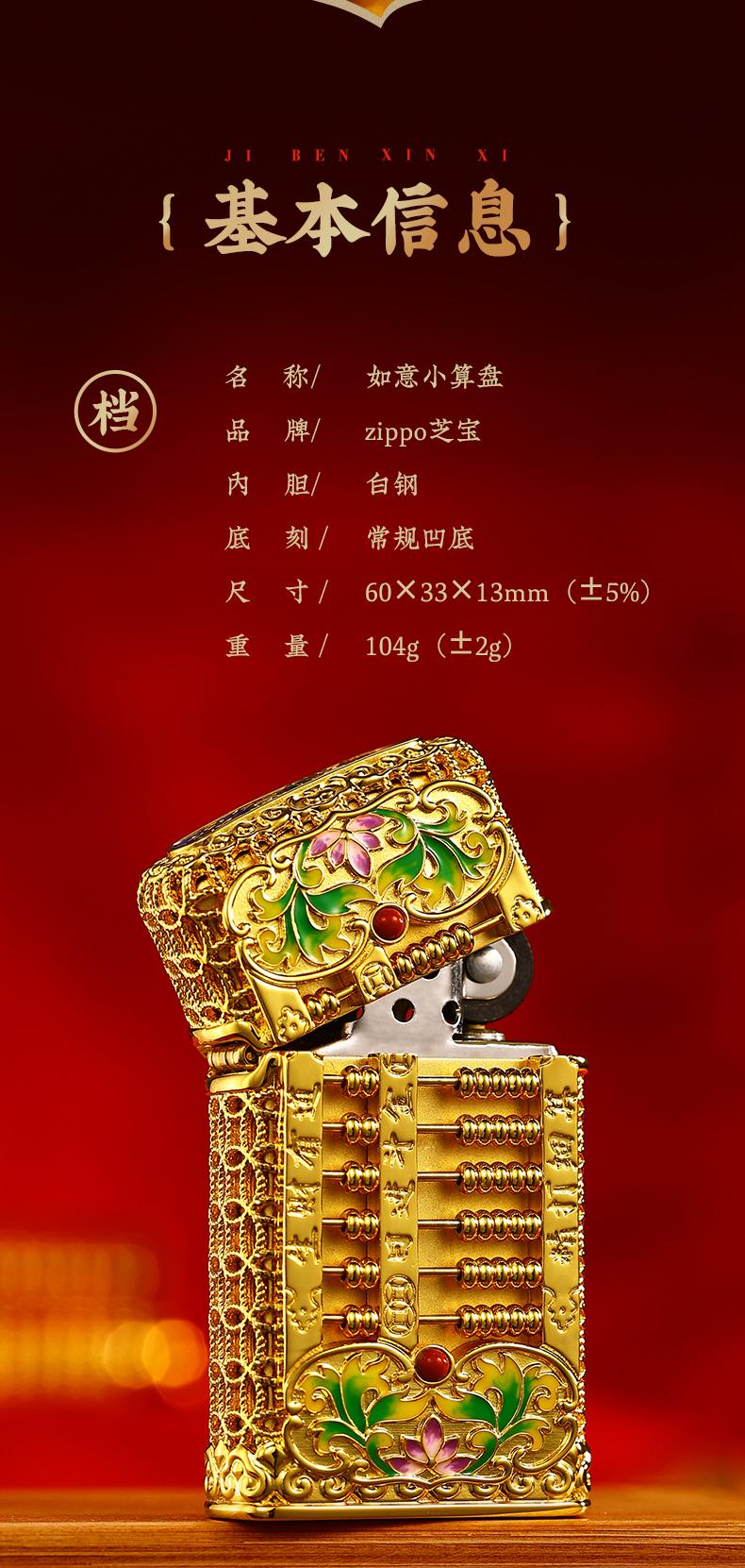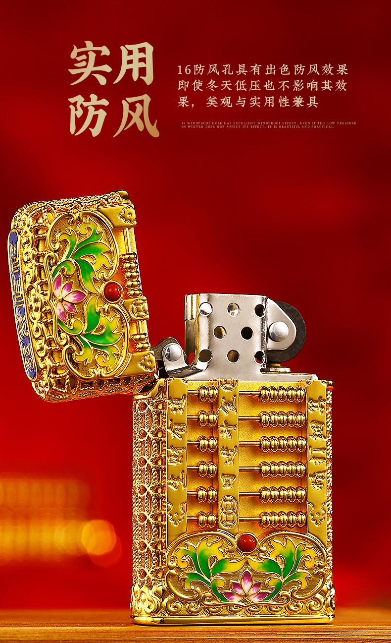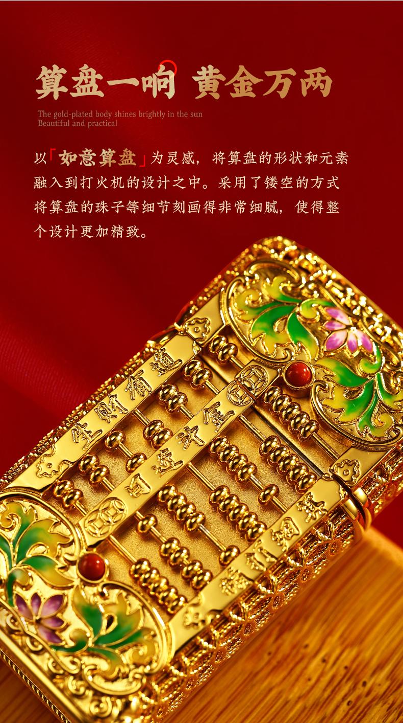 ZIPPO打火机DIY窄机套壳如意小算盘防风男士金色国潮风 JCZ