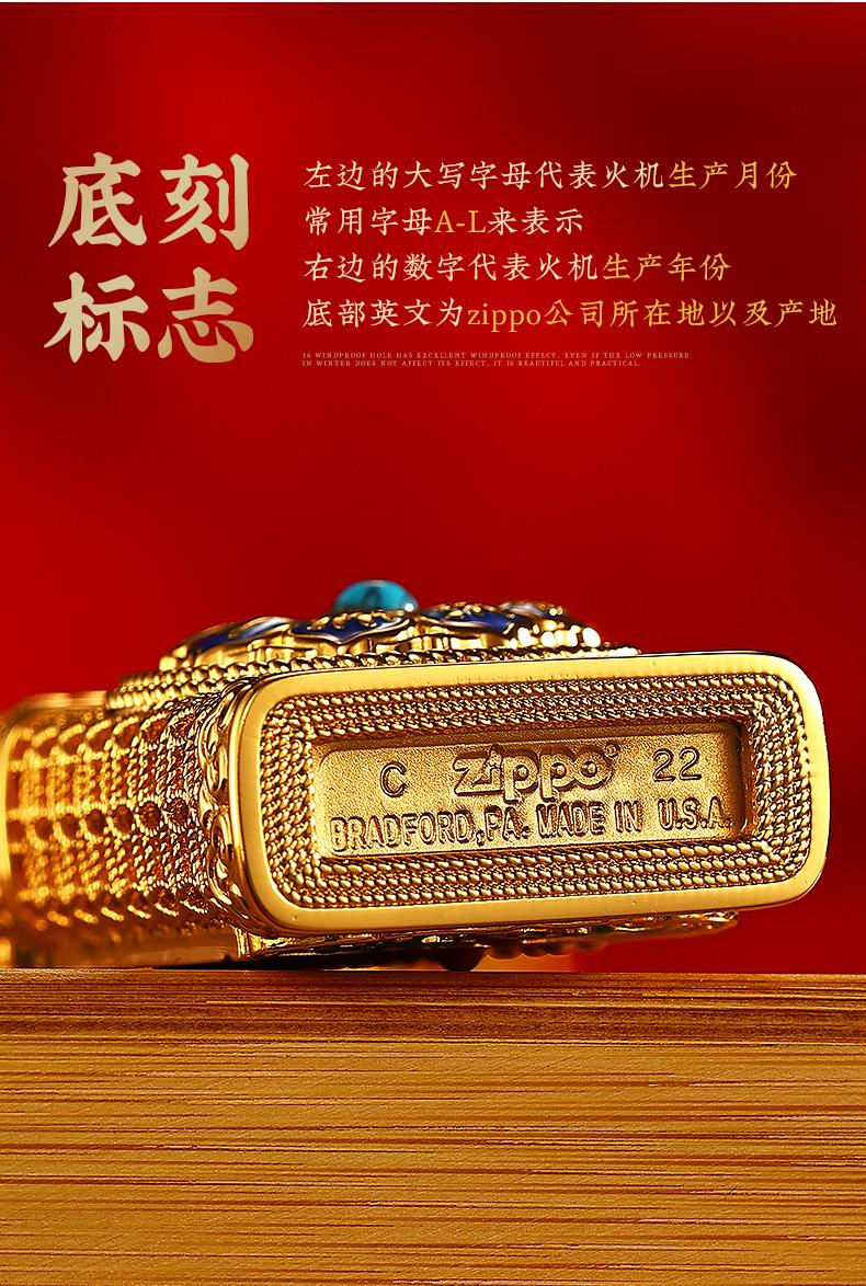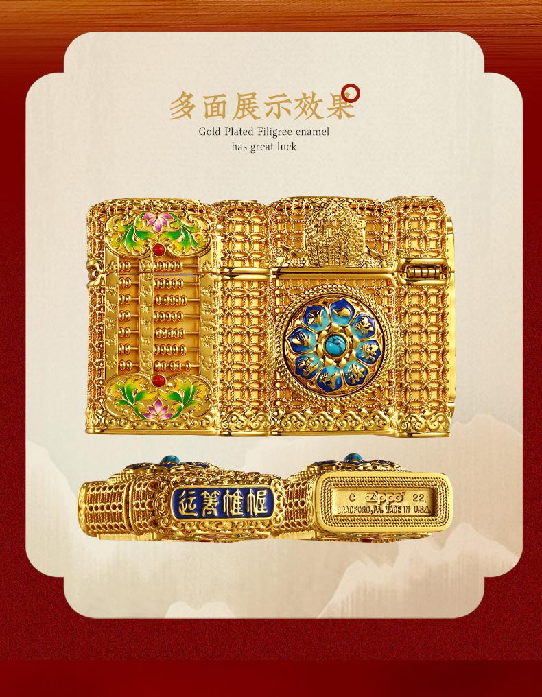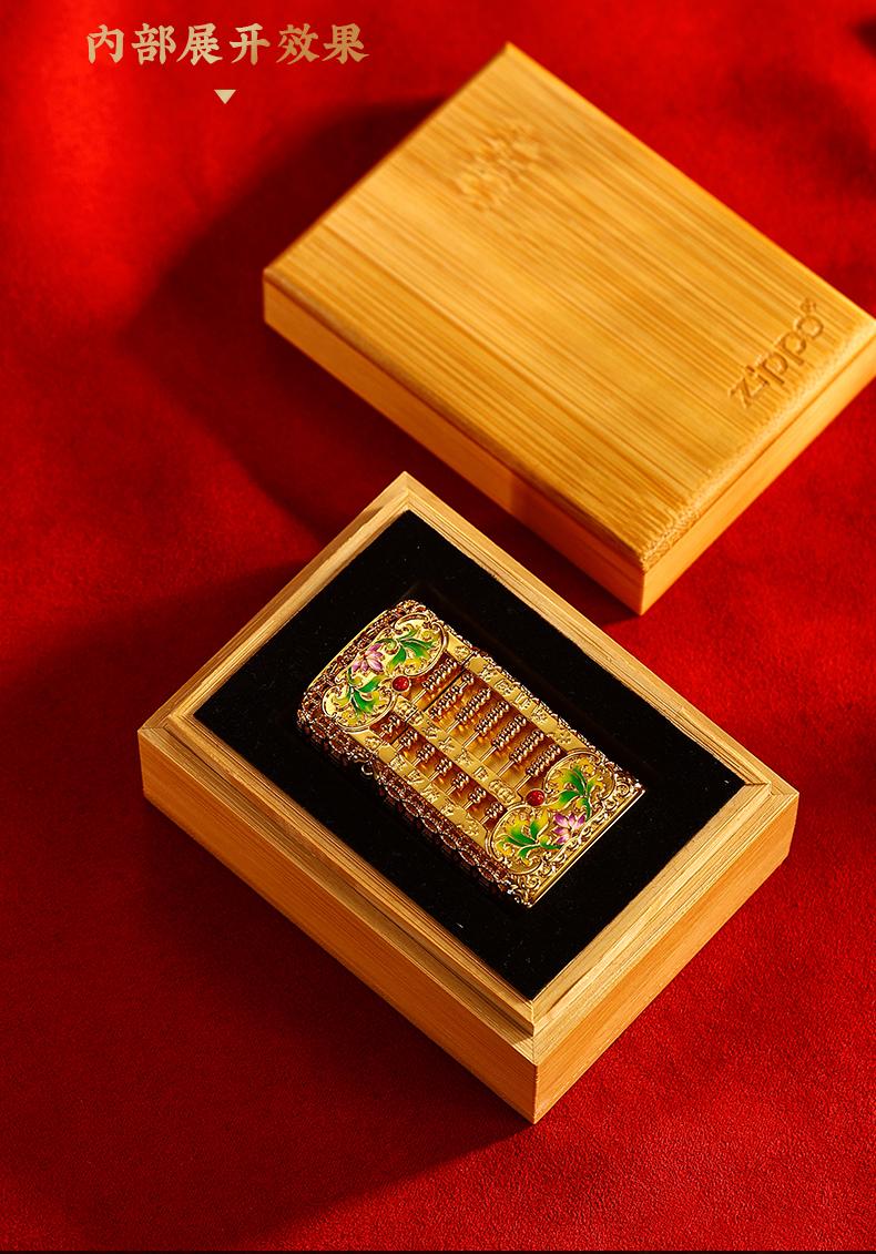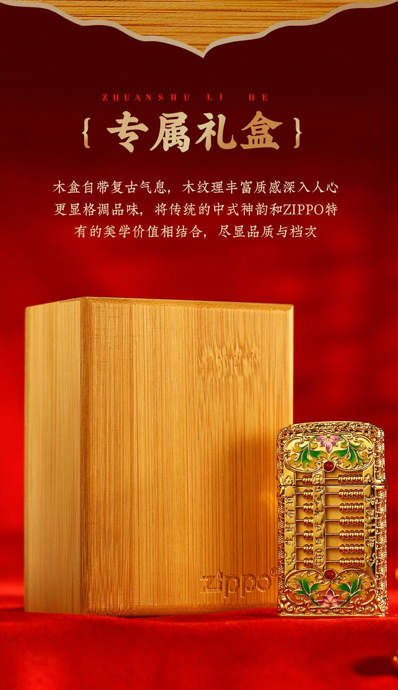 ZIPPO打火机DIY窄机套壳如意小算盘防风男士金色国潮风 JCZ
