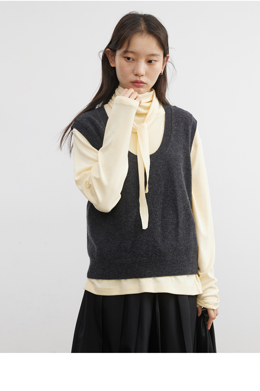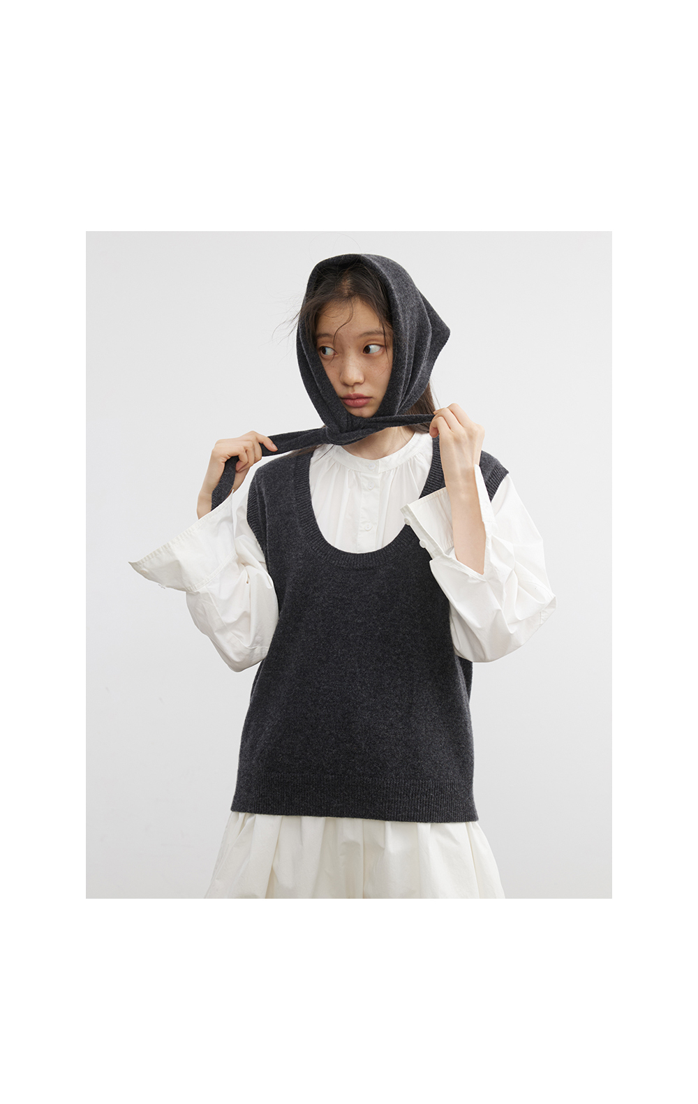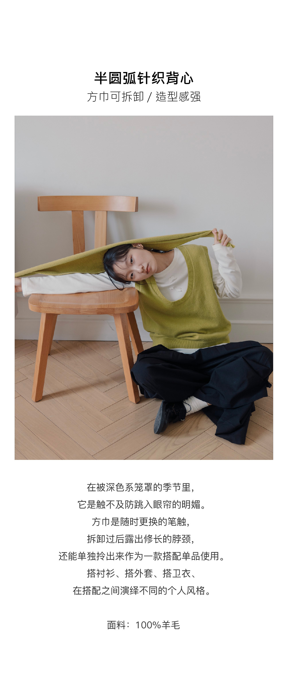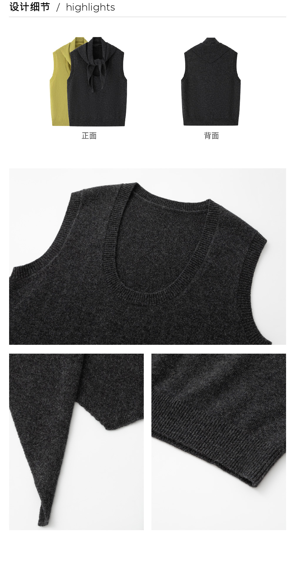 步履不停/5C13290C/u型领无袖针织背心配三角巾