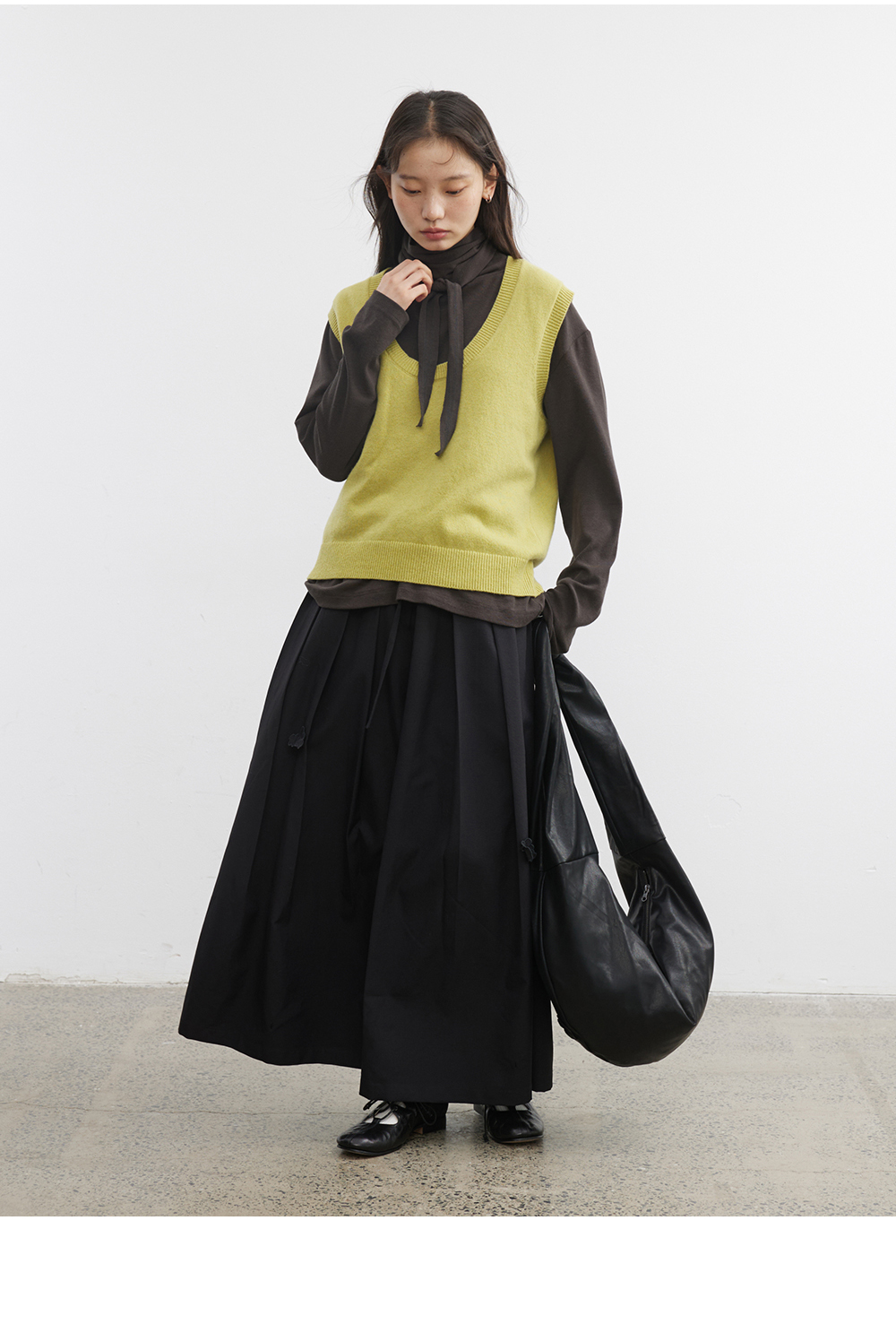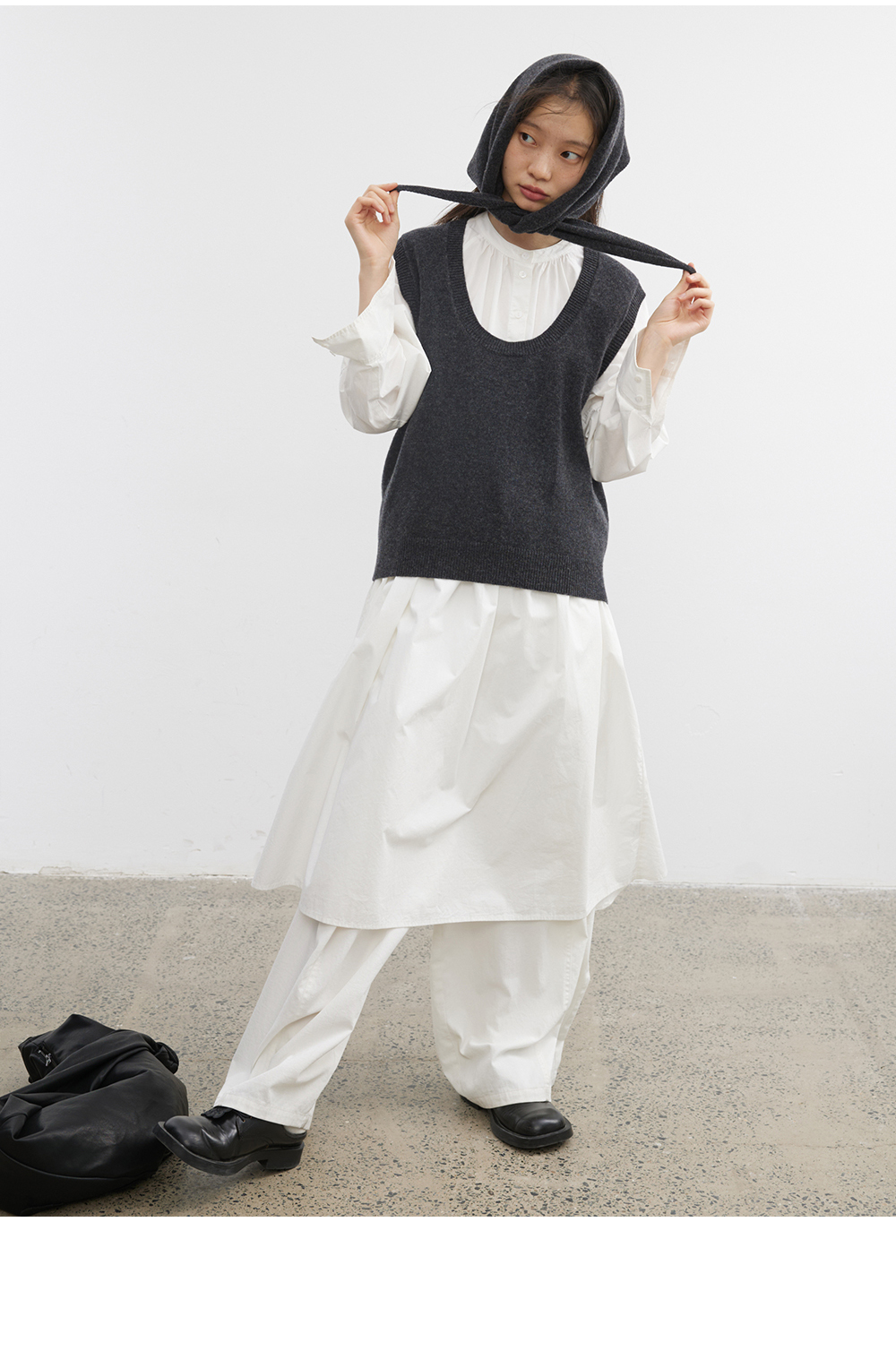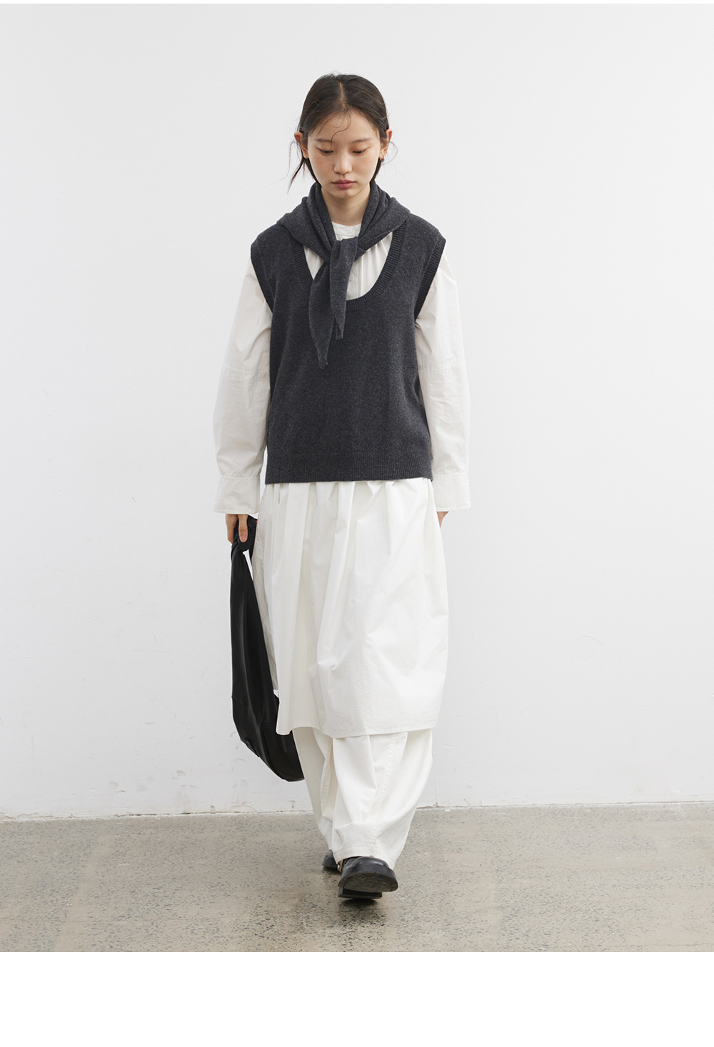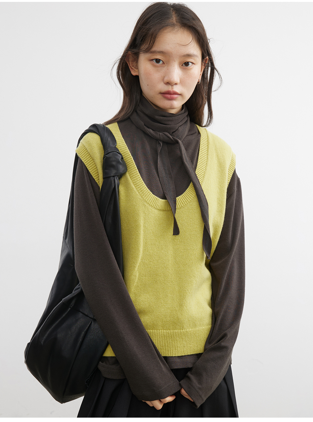 步履不停/5C13290C/u型领无袖针织背心配三角巾