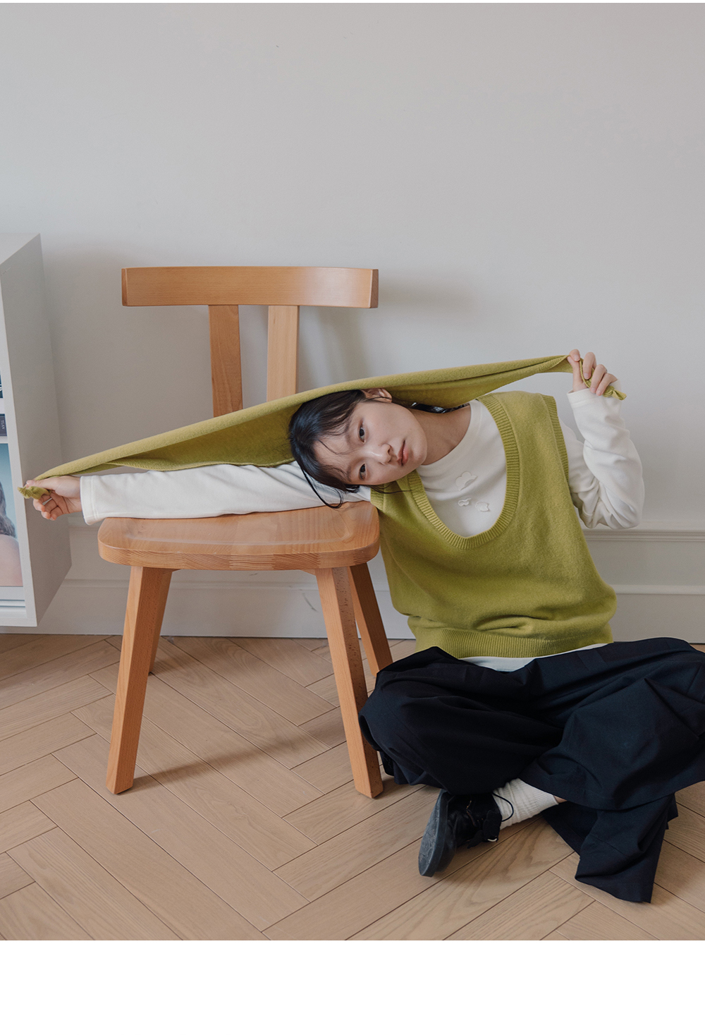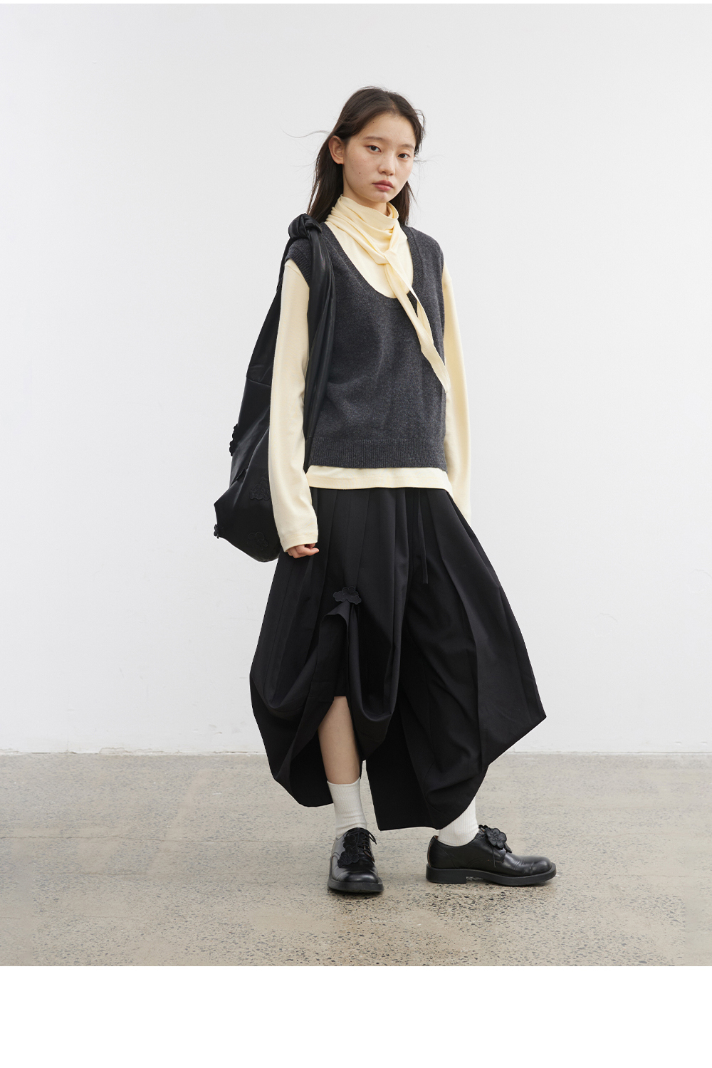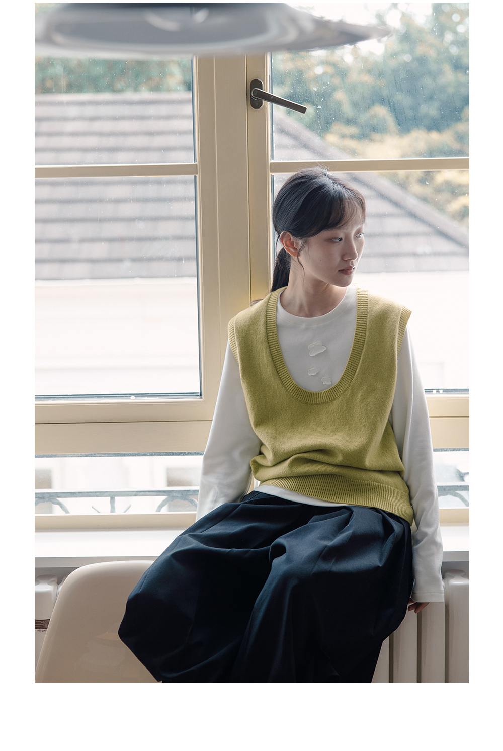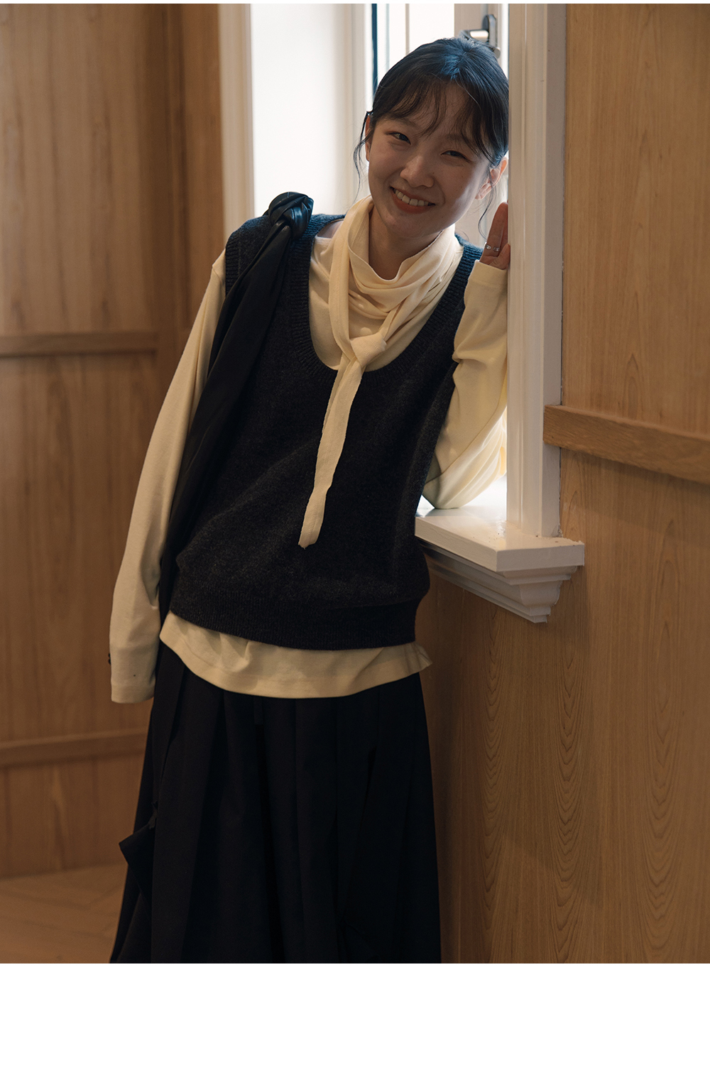步履不停/5C13290C/u型领无袖针织背心配三角巾