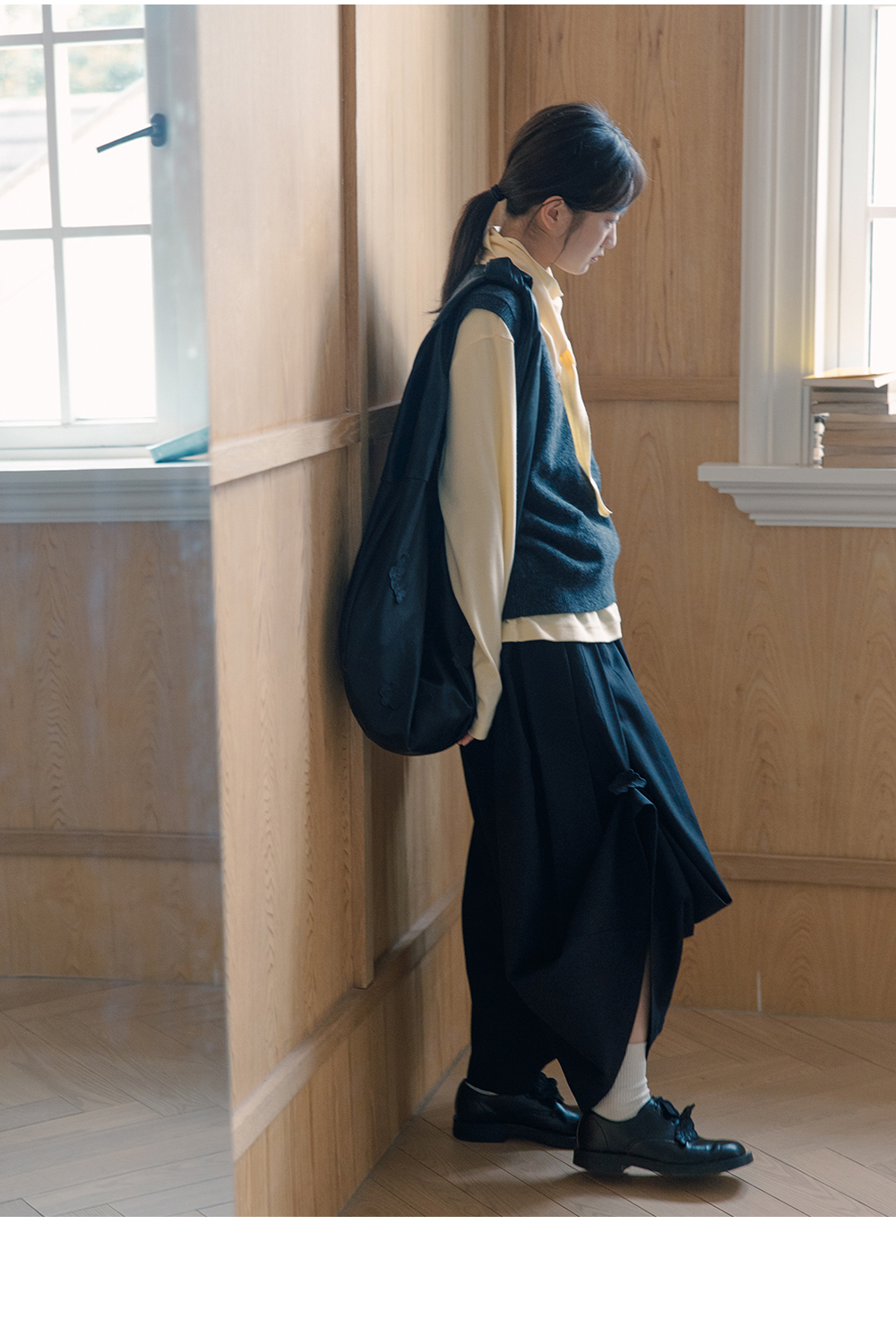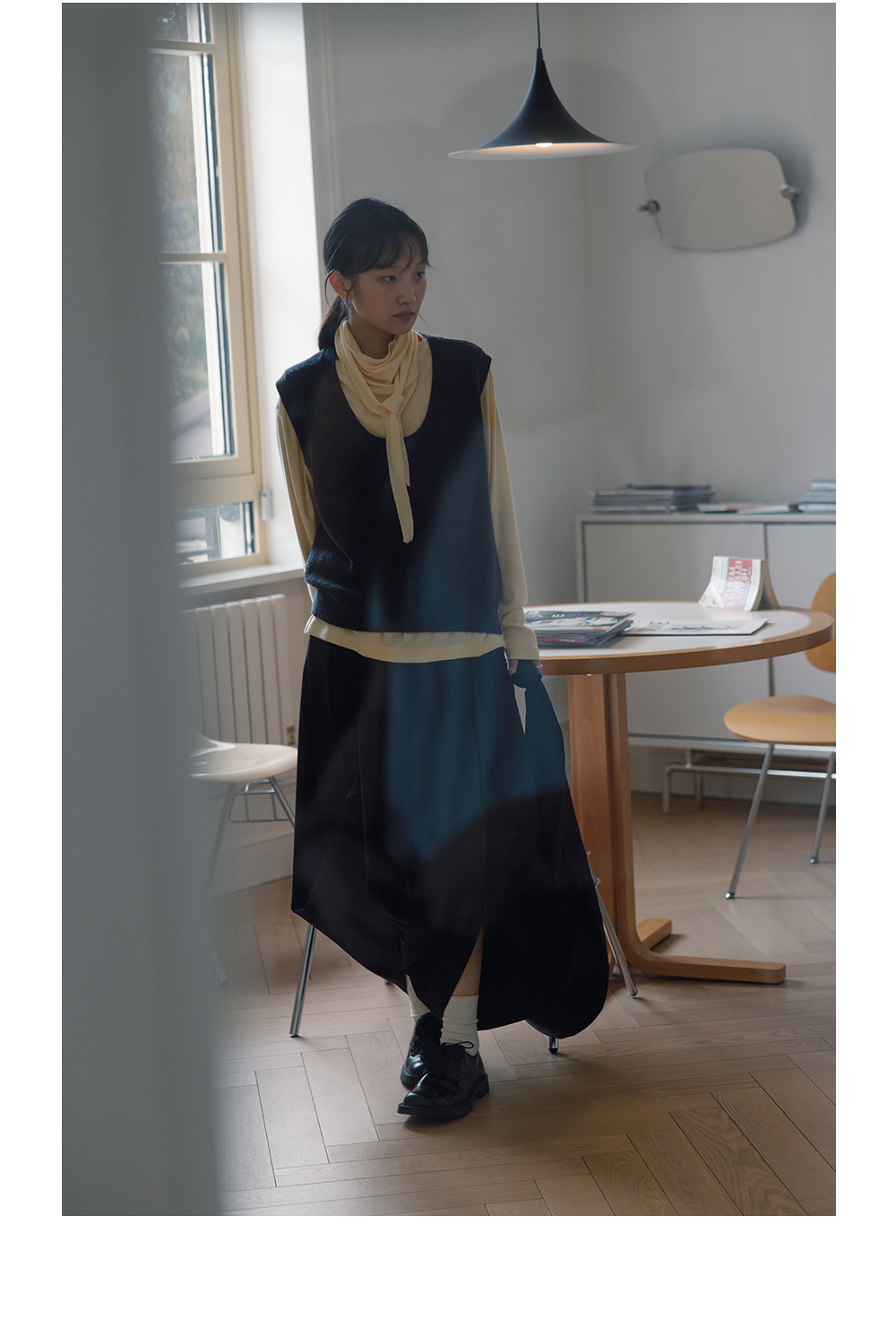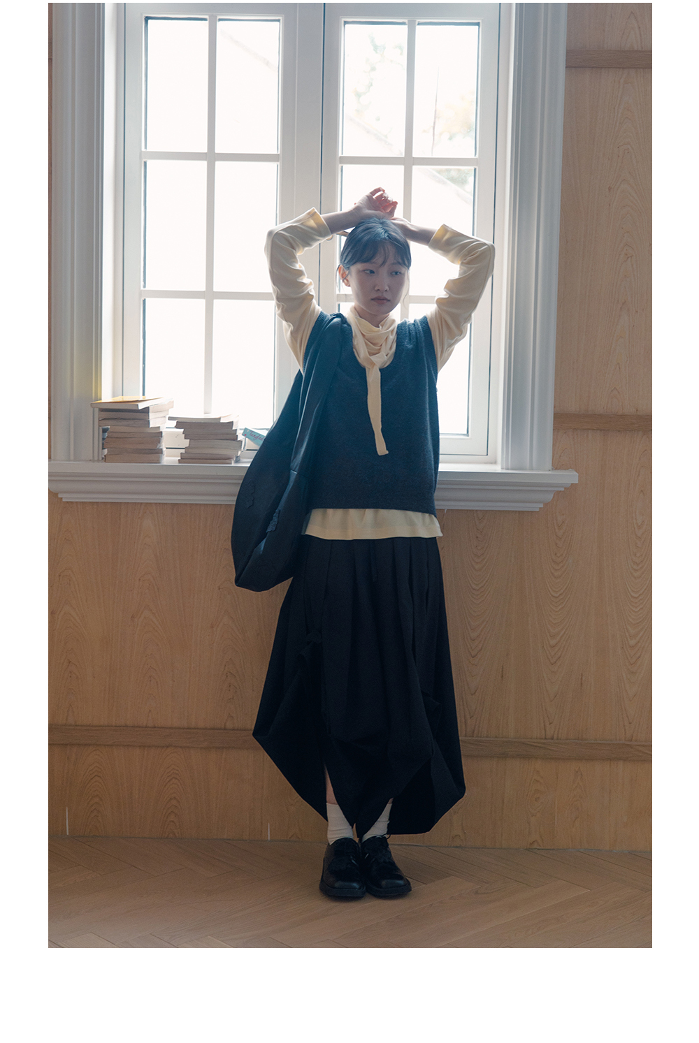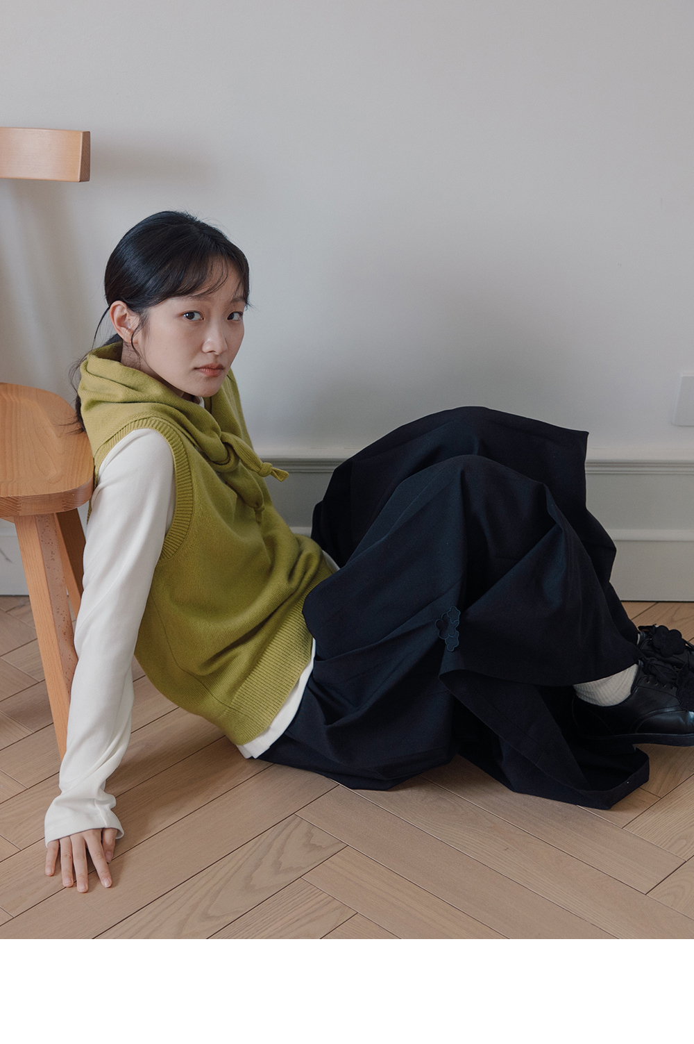 步履不停/5C13290C/u型领无袖针织背心配三角巾