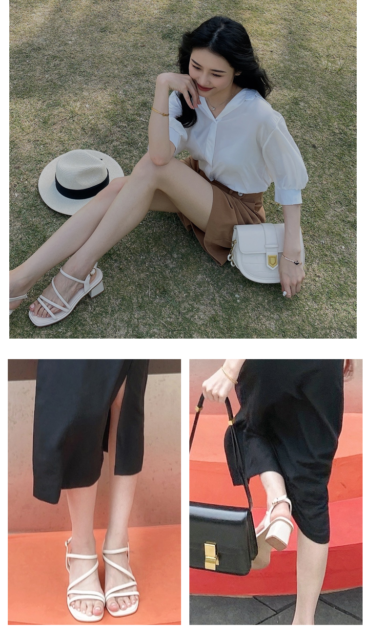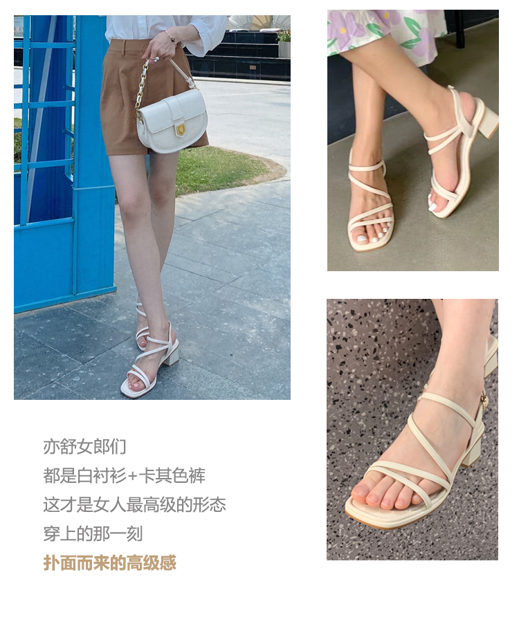 【百图lulu定制】【chic细带鞋】 超纤柔软皮细袢带 纤细双脚,4cm中跟凉鞋