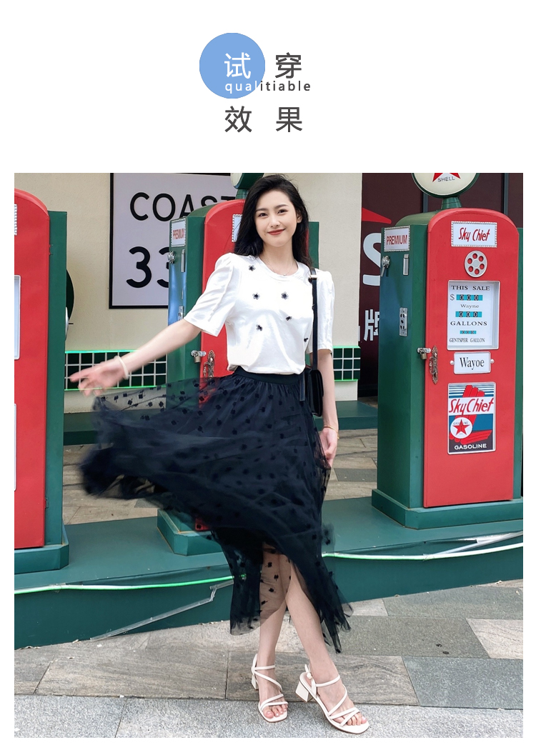 【百图lulu定制】【花蔓套装】【一套299元】花朵刺绣 波浪边马甲 高弹T长袖T恤 A字摆半裙