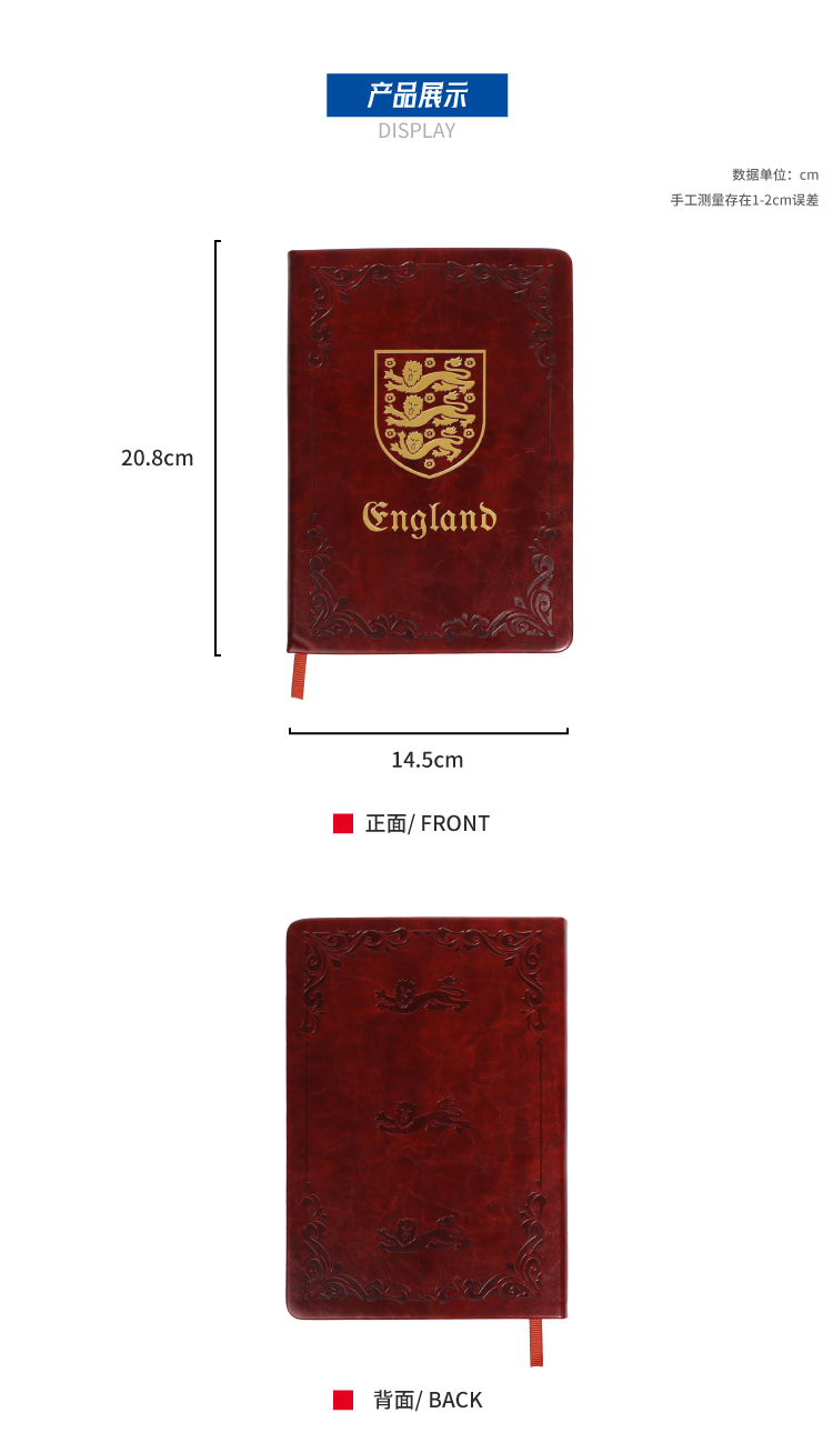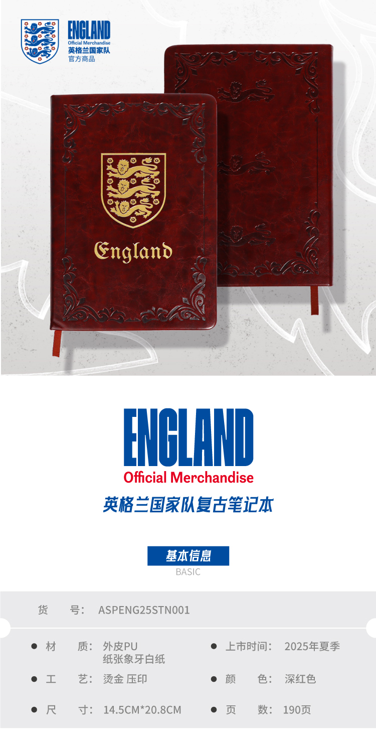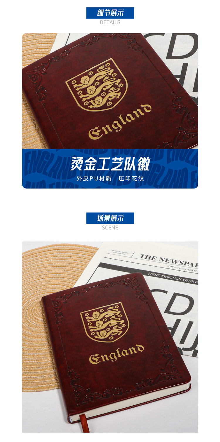 【官方正版】英格兰国 家队 | 深红色复古笔记本烫金创意球迷文具周边