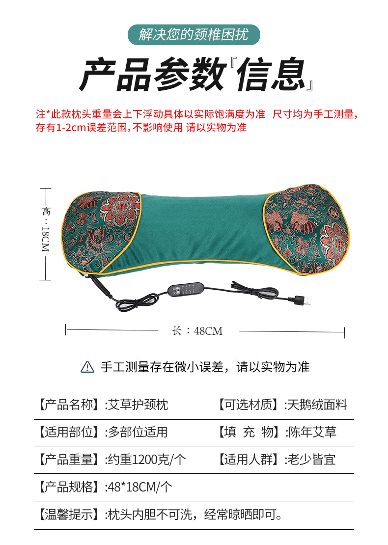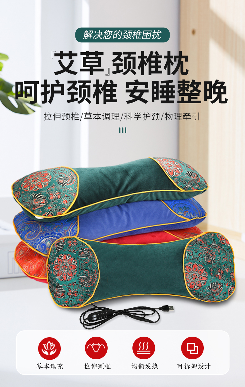电加热艾草枕头 水晶绒