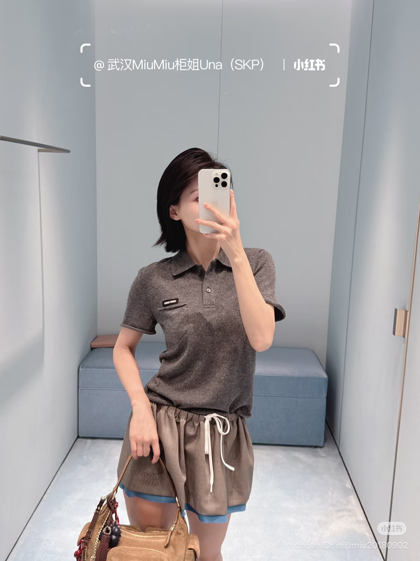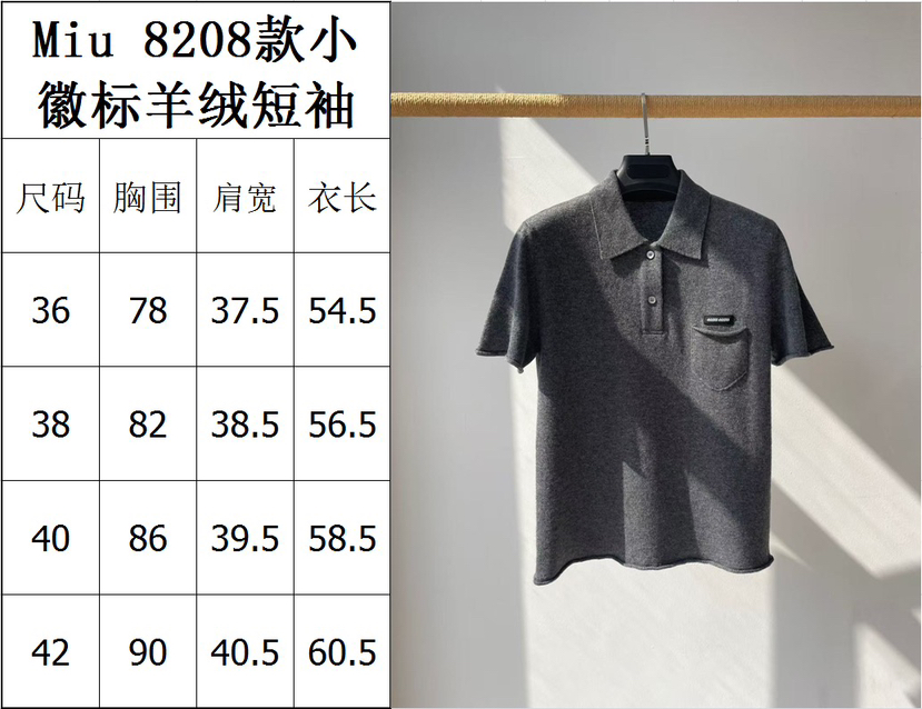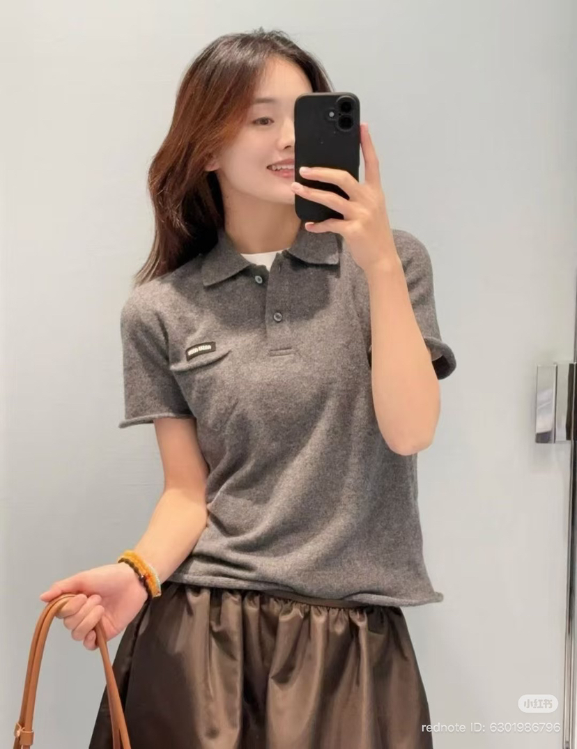 314-4 独家圆正 miu小徽标 羊绒 polo领 短袖针织 我穿42