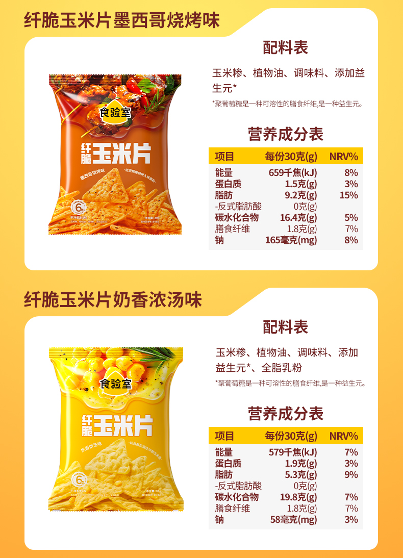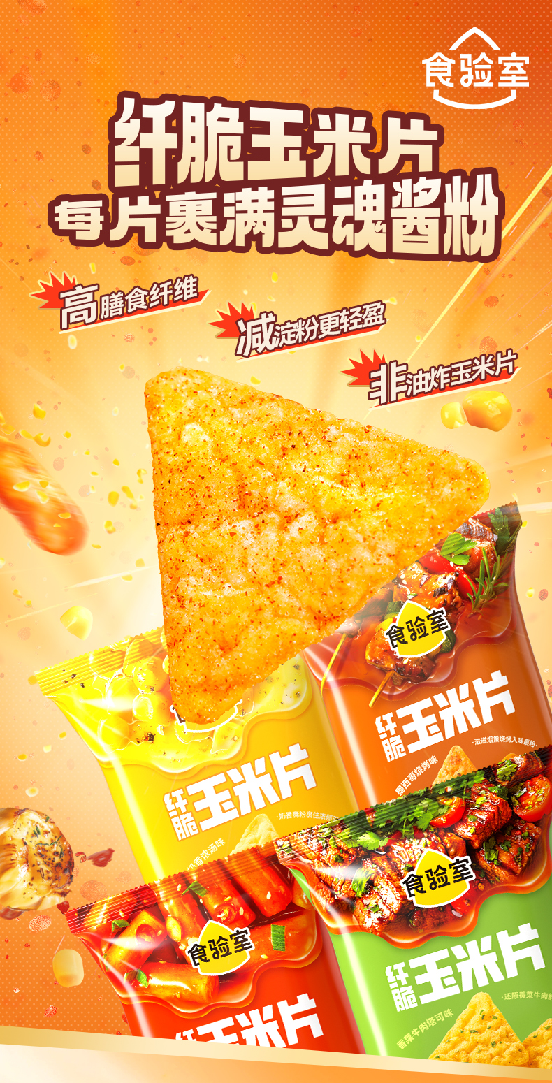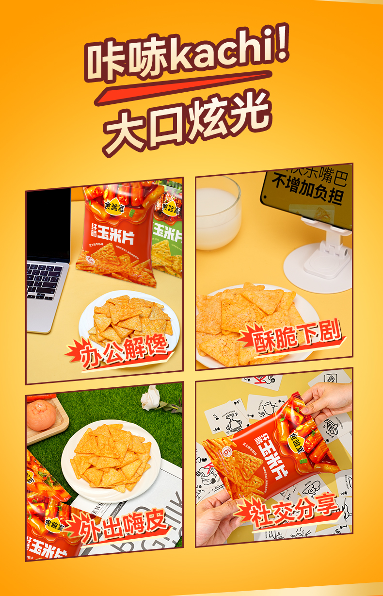 食验室 纤脆玉米片(奶香浓汤/芝士辣年糕/香菜牛肉塔可/墨西哥烧烤)30g 多规格