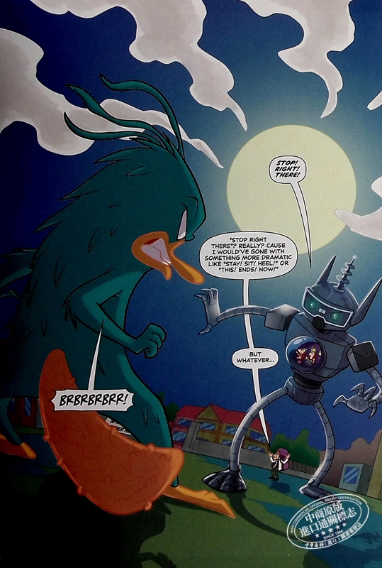 In this outrageous and original double-feature graphic novel, Phineas and Ferb face an oversized maze full of oversized insects and oversized challenges, forcing them to invent their way home! The second story features an alternate reality adventure with Dr Doofenshmirtz as a horror movie TV host teaming up with Phineas and the gang to face real monsters, including a giant feral Perry!