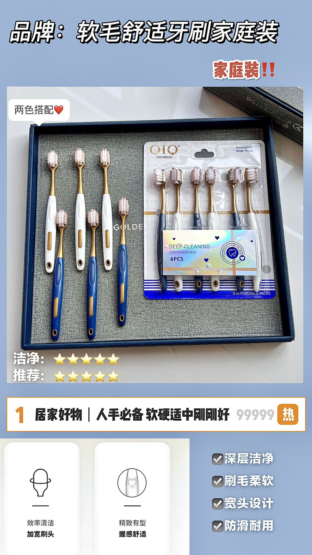 【6支装】山姆同款牙刷成人宽头牙刷成人细软毛牙刷家庭装牙刷