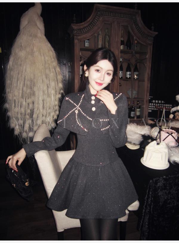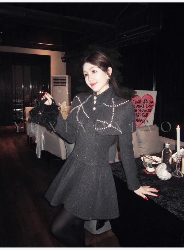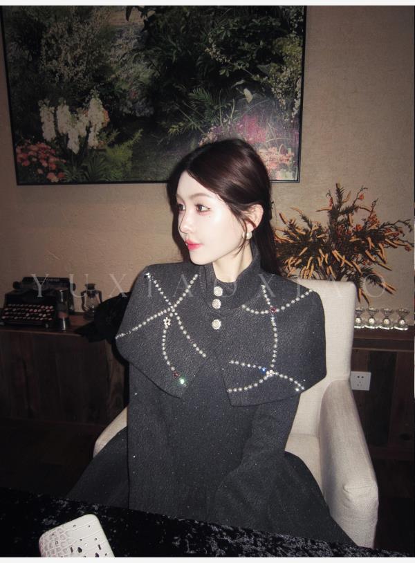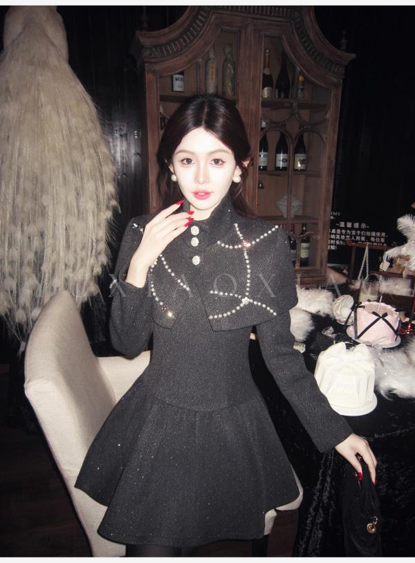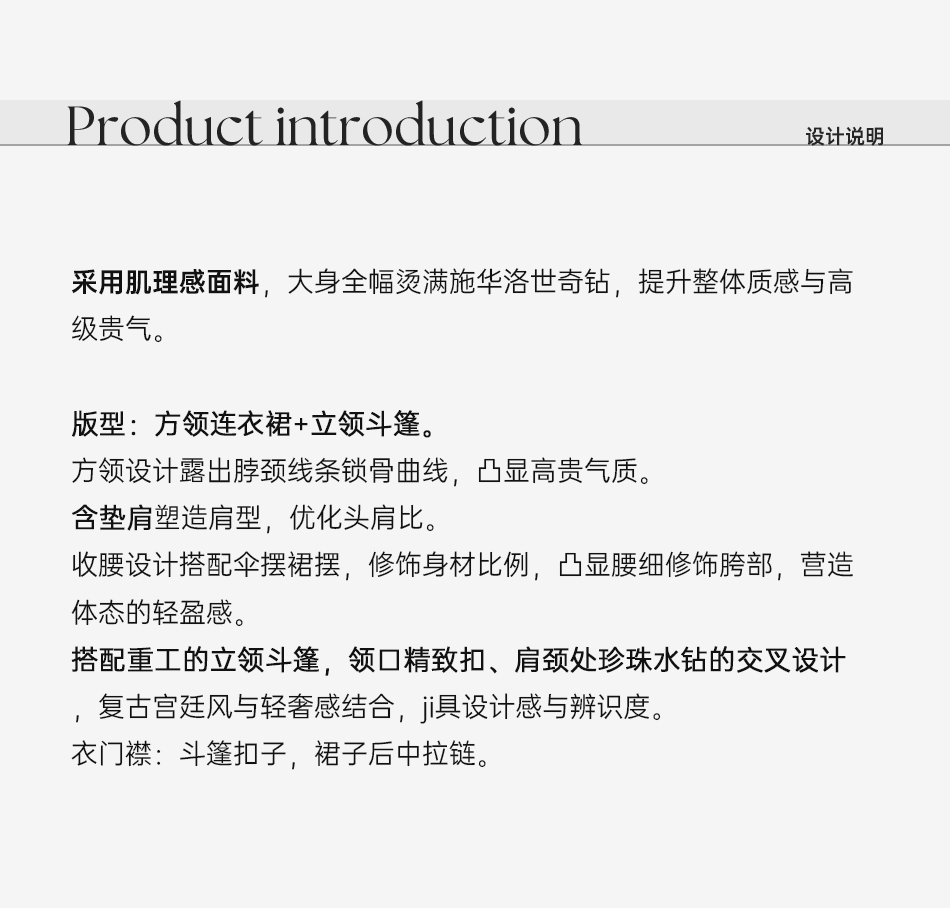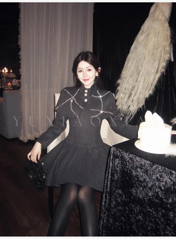 余潇潇【灰天鹅之梦】复古宫廷风珍珠水钻方领连衣裙+立体斗篷套装