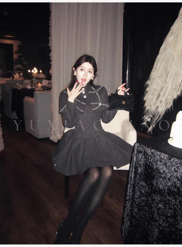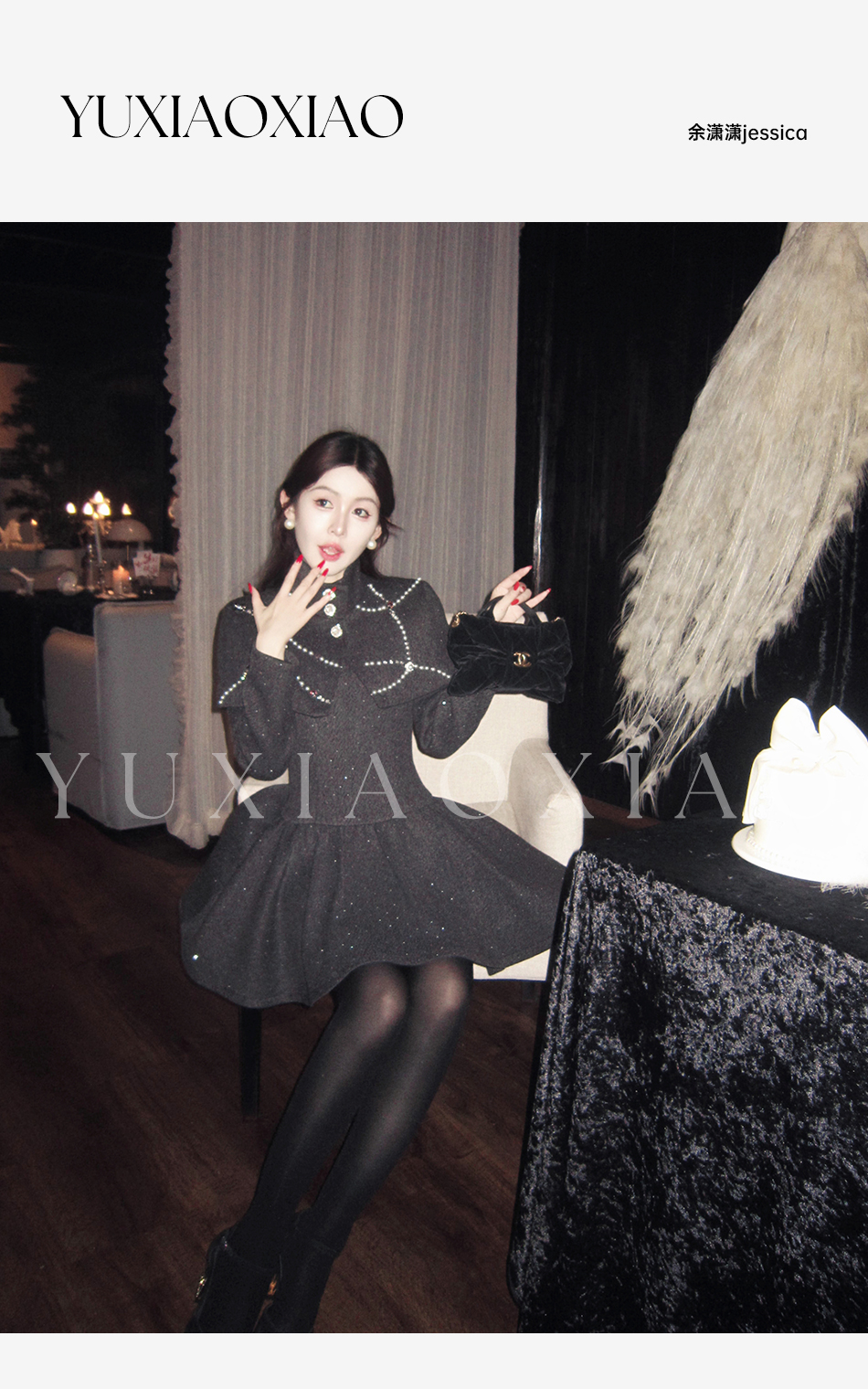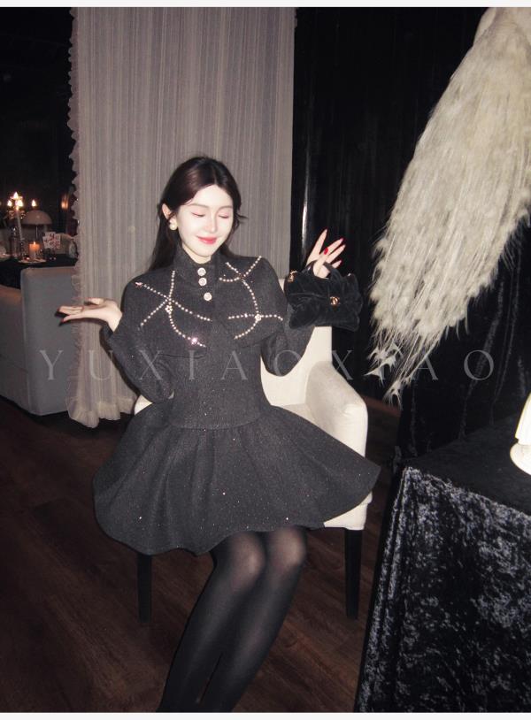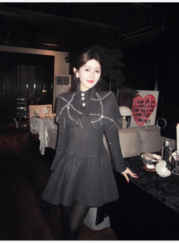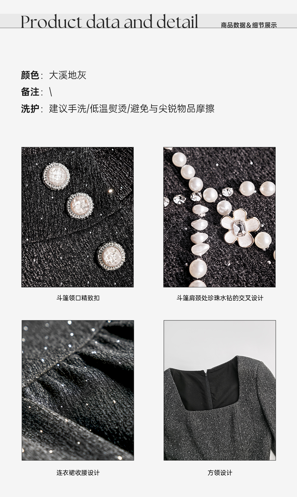 余潇潇【灰天鹅之梦】复古宫廷风珍珠水钻方领连衣裙+立体斗篷套装