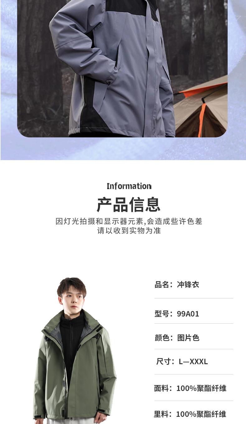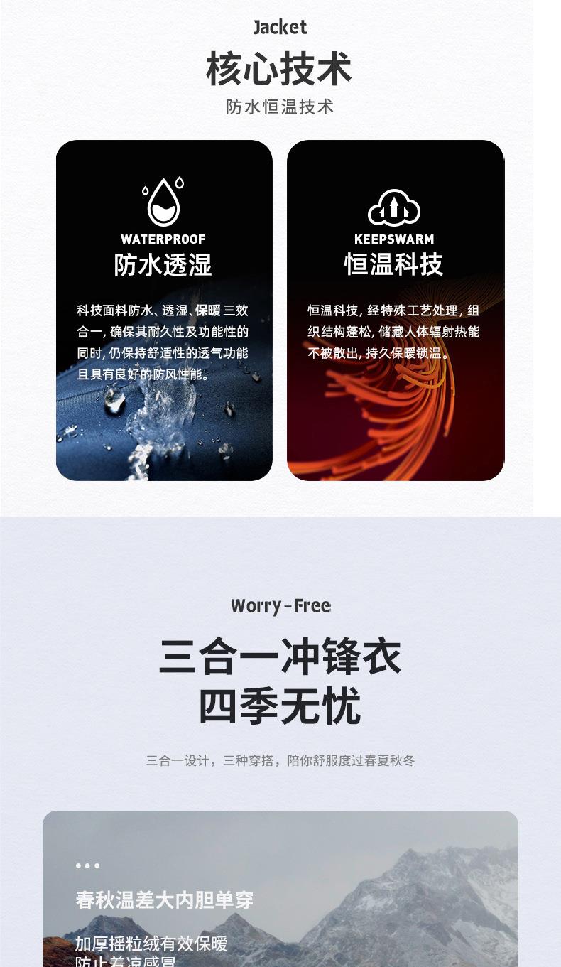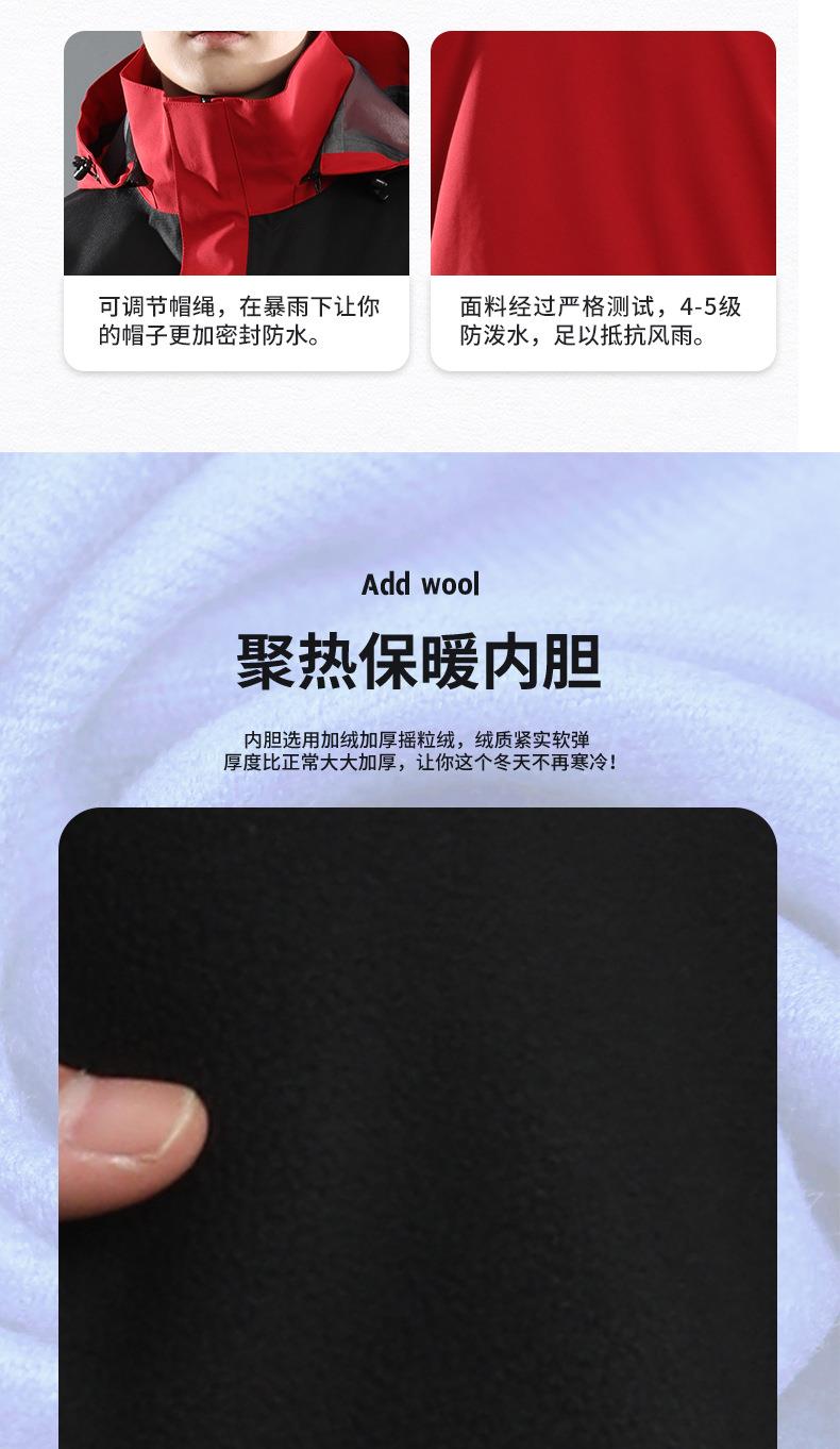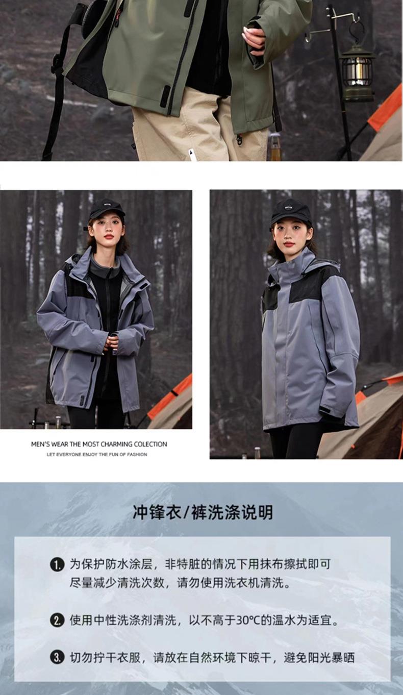 秋冬户外冲锋衣男女三层压胶滑雪服防风水两件套三合一登山服