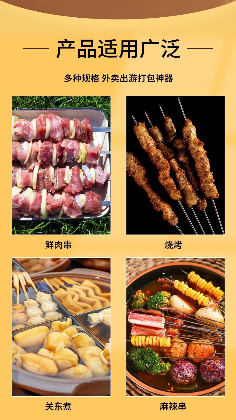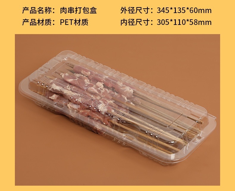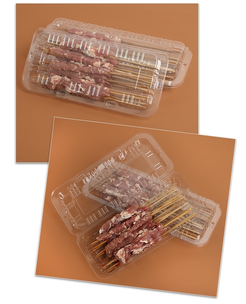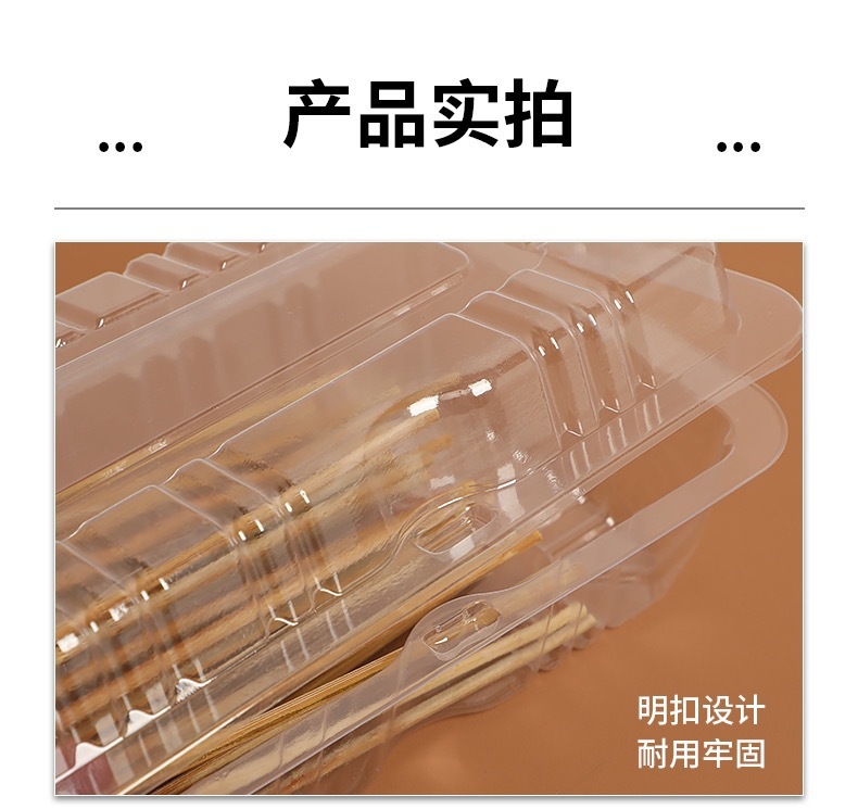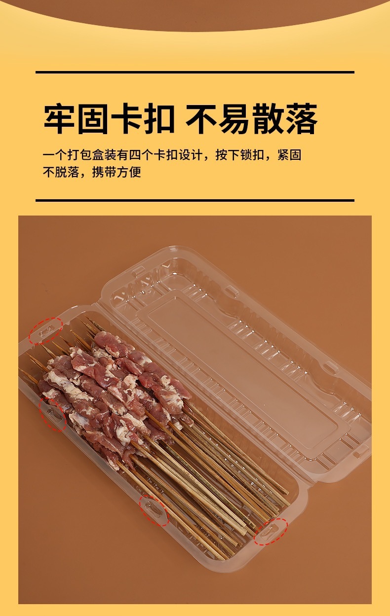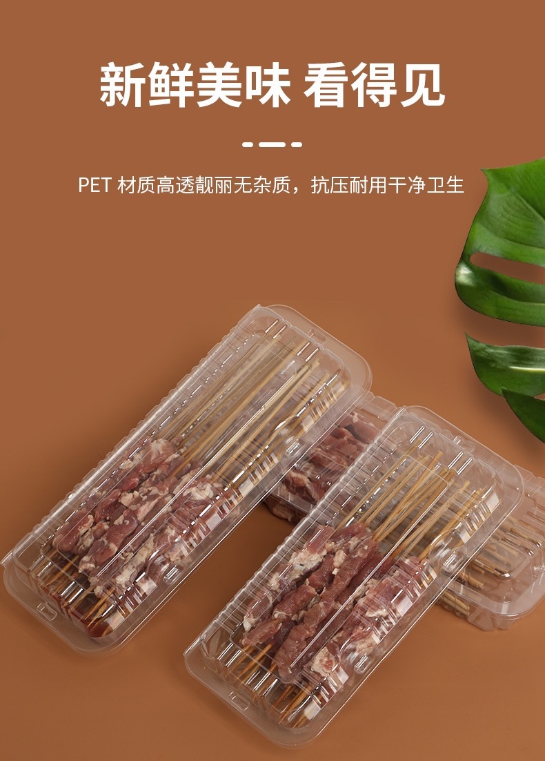 【加厚升级!耐压抗压】新鲜美味,看得见,烧烤打包盒一次性烤串盒子加厚塑料透明羊肉串盒长方形有盖外卖盒。rb