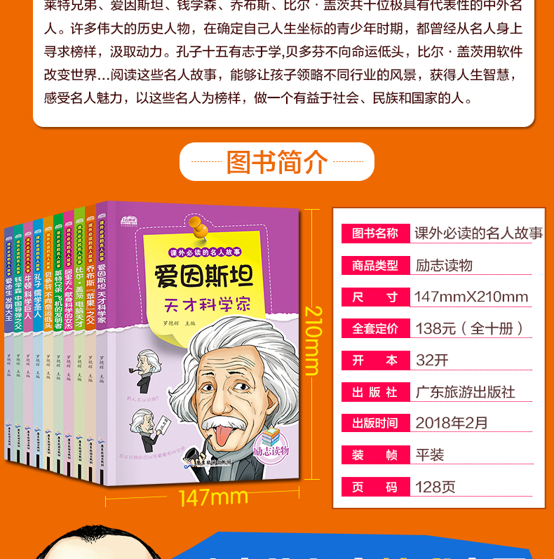 课外必读的名人故事中外名人传记(全套10册)乔布斯正版包邮居里夫人的故事小学生课外阅读书籍三四五六年级校园励志读物畅销儿童文学