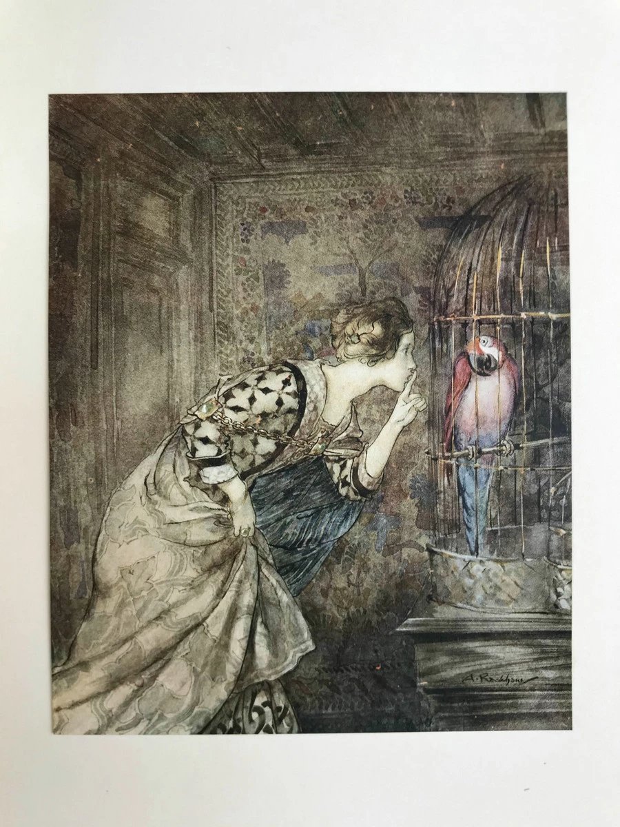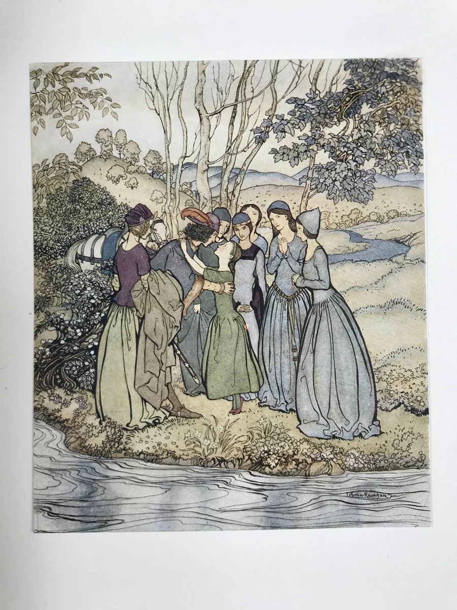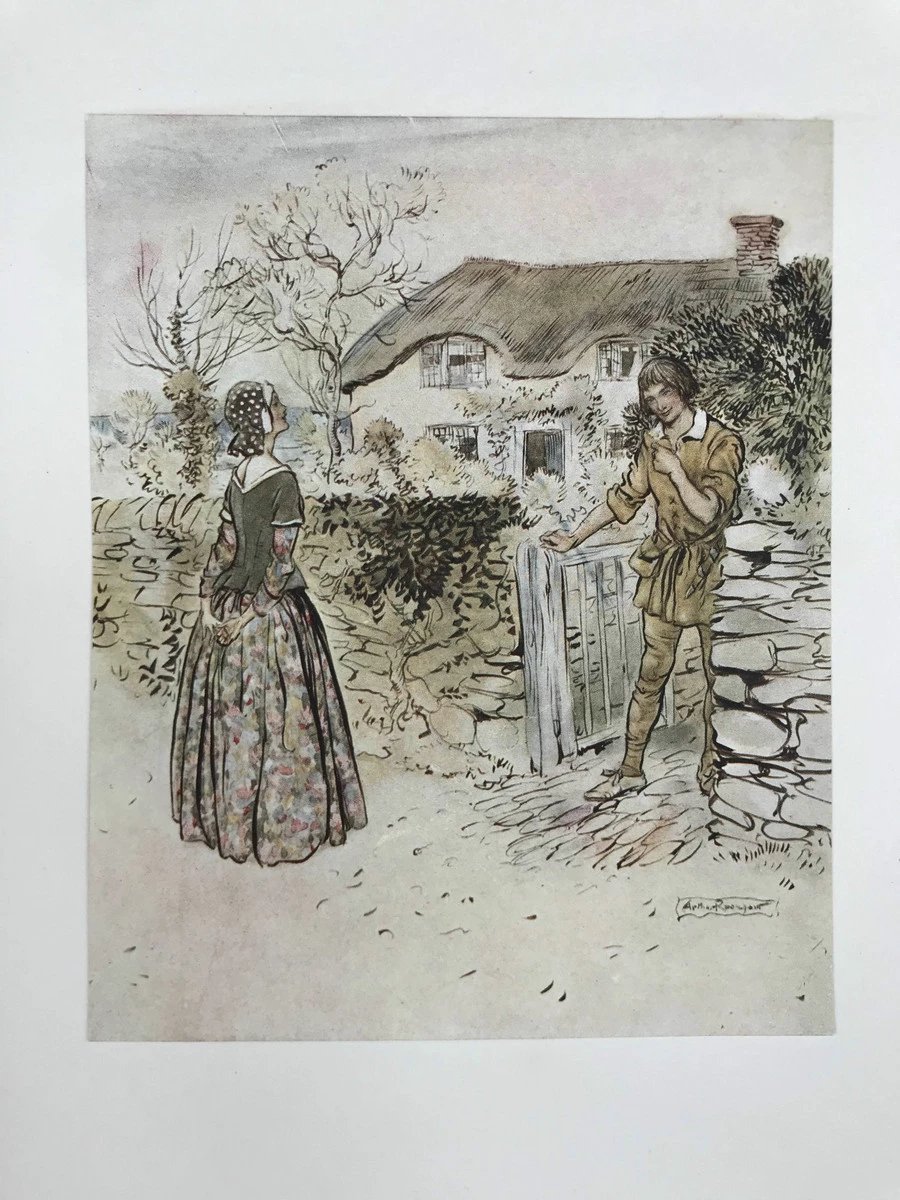 鬼才拉克姆限量签名本!1919年 英国民谣集 16幅彩色手工贴图与多幅黑白文间插图 犊皮(vellum)脊精装大16开