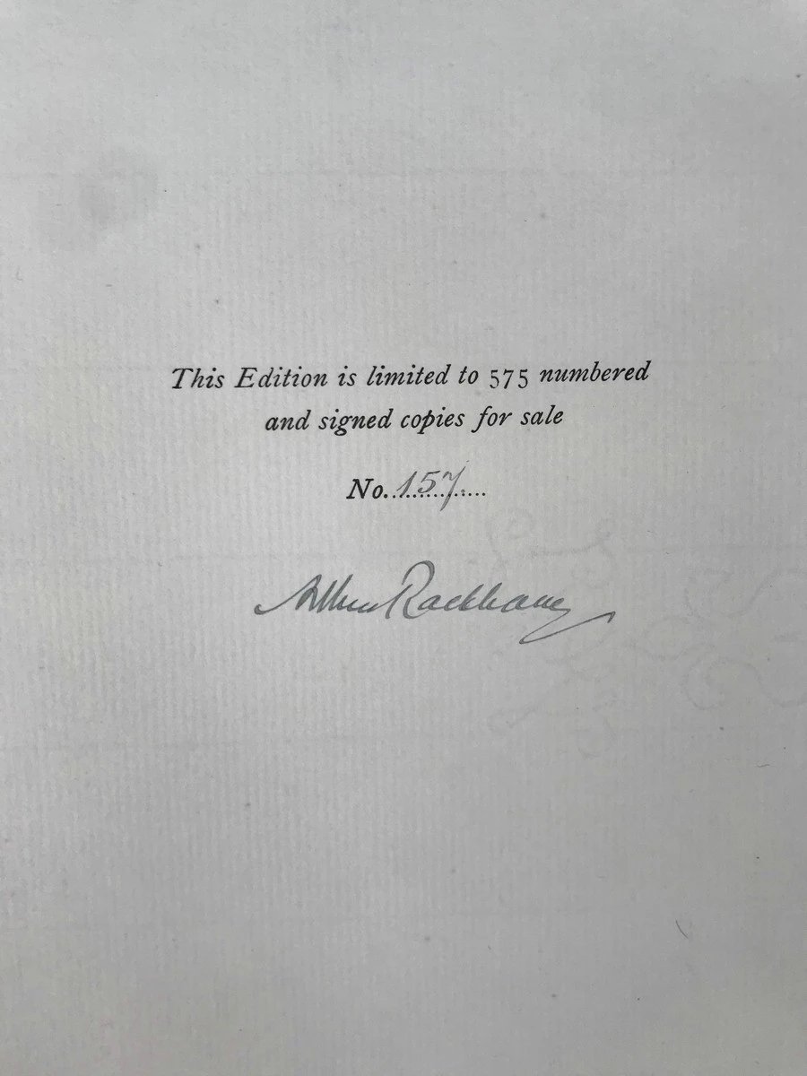 本书为仅发行575册的限量版图书,编号157,卷首有限量标示,以及画家亚瑟·拉克姆的亲笔签名