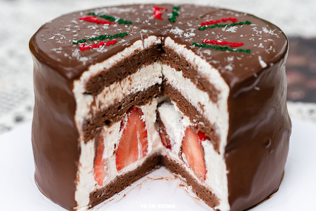 整整15颗大草莓内馅夹心 外层法芙娜巧克力 简单不失内涵的优雅圣诞风生日蛋糕
