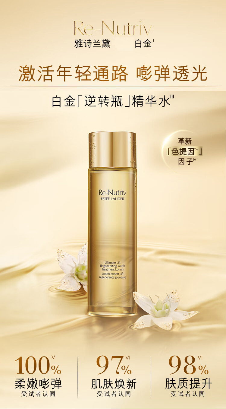 【礼盒礼袋】雅诗兰黛白金级赋活精华水挚爱套组(精华水 200ml+50ml*3),帮助肌肤激活能量、提升吸收力,带来焕亮紧致的逆龄体验