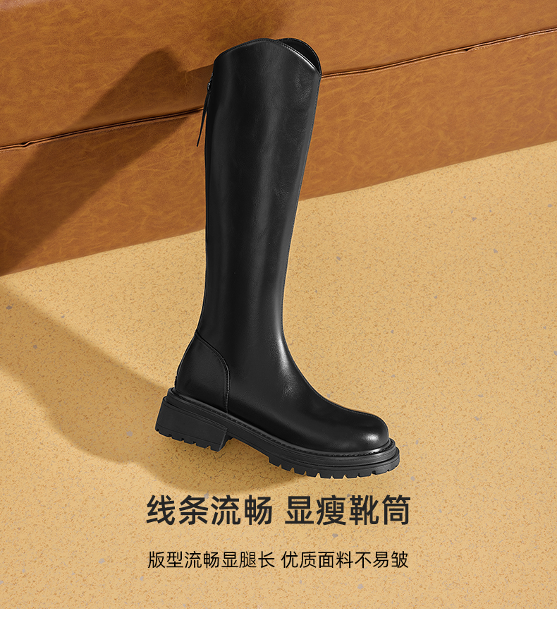 星期六复古高筒不过膝骑士靴SS34117H61