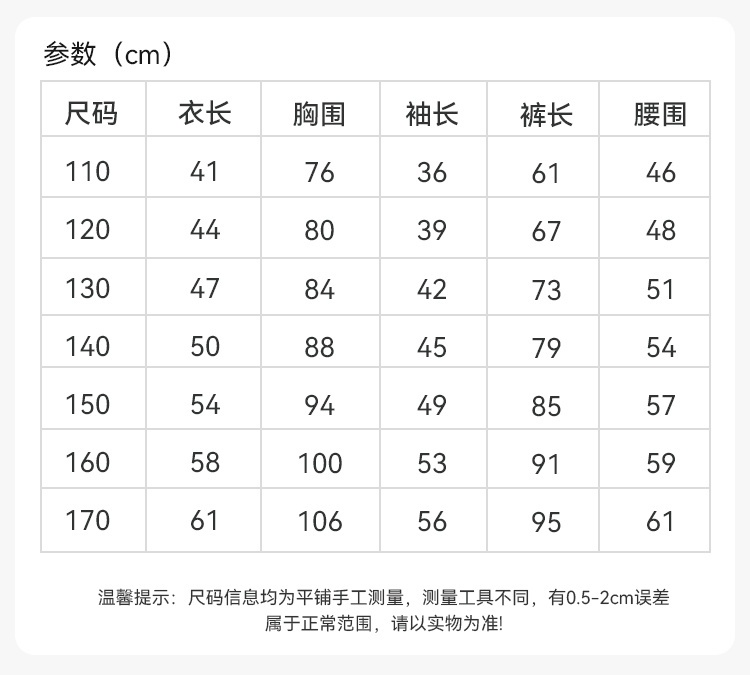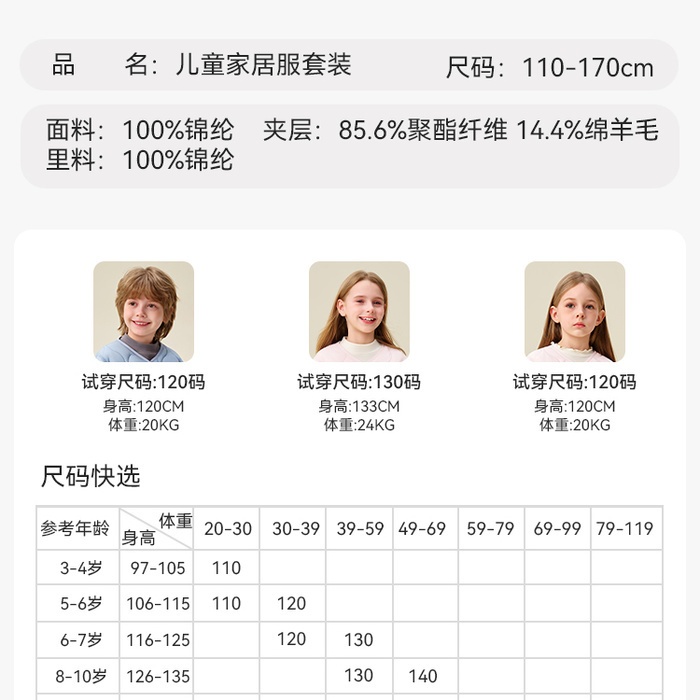 尺码:110-170cm