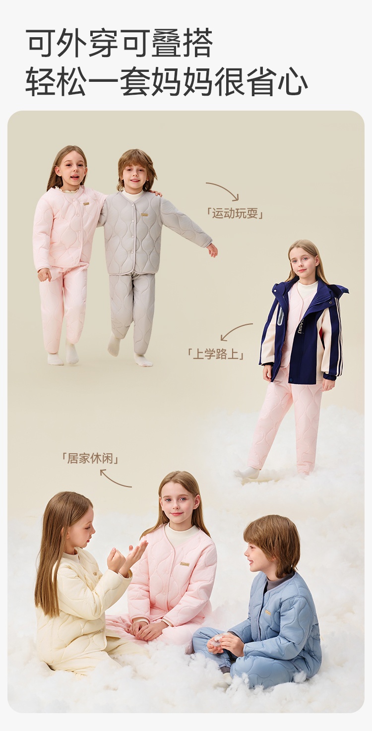 早上不用纠结搭配,一套就能出门,温暖又省心,孩子穿得开心,家长更放心~