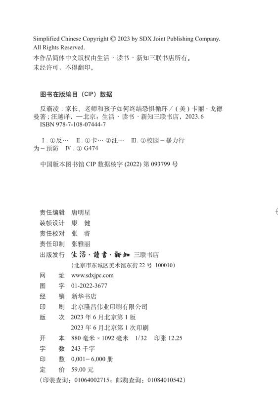 反霸凌:家长、老师和孩子如何终结恐惧循环 卡丽·戈德曼 著 汪越 译 社会科学 三联书店