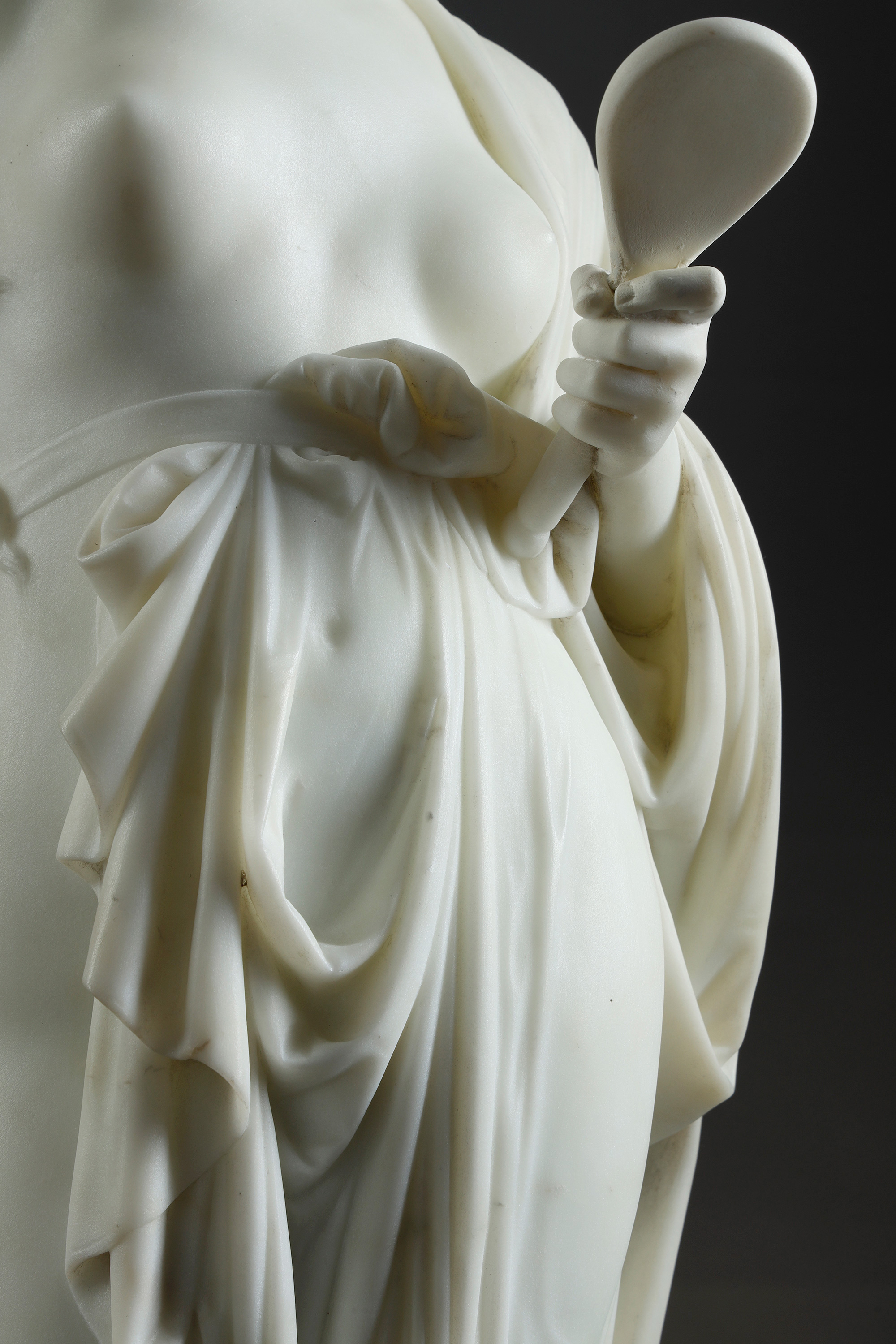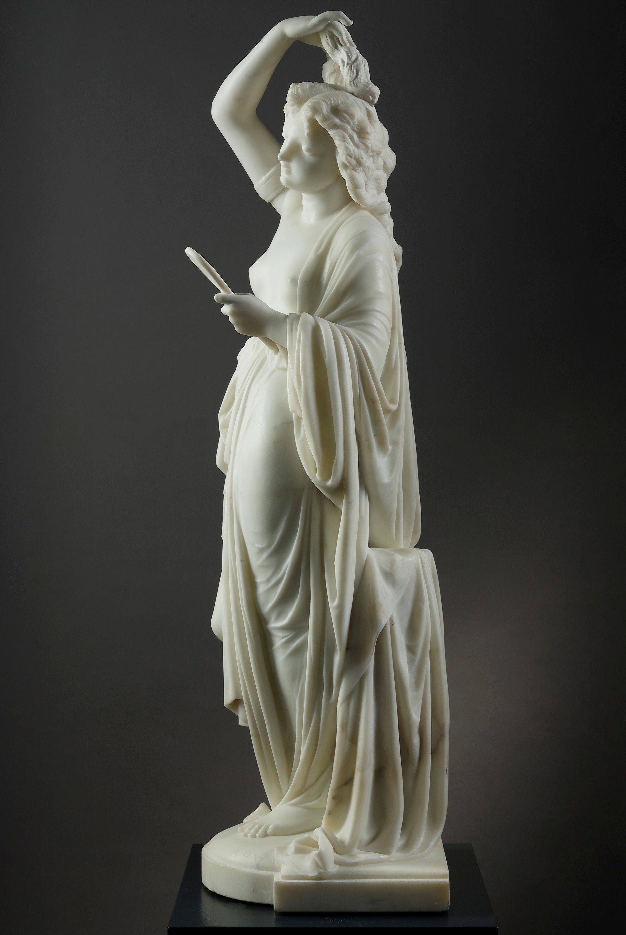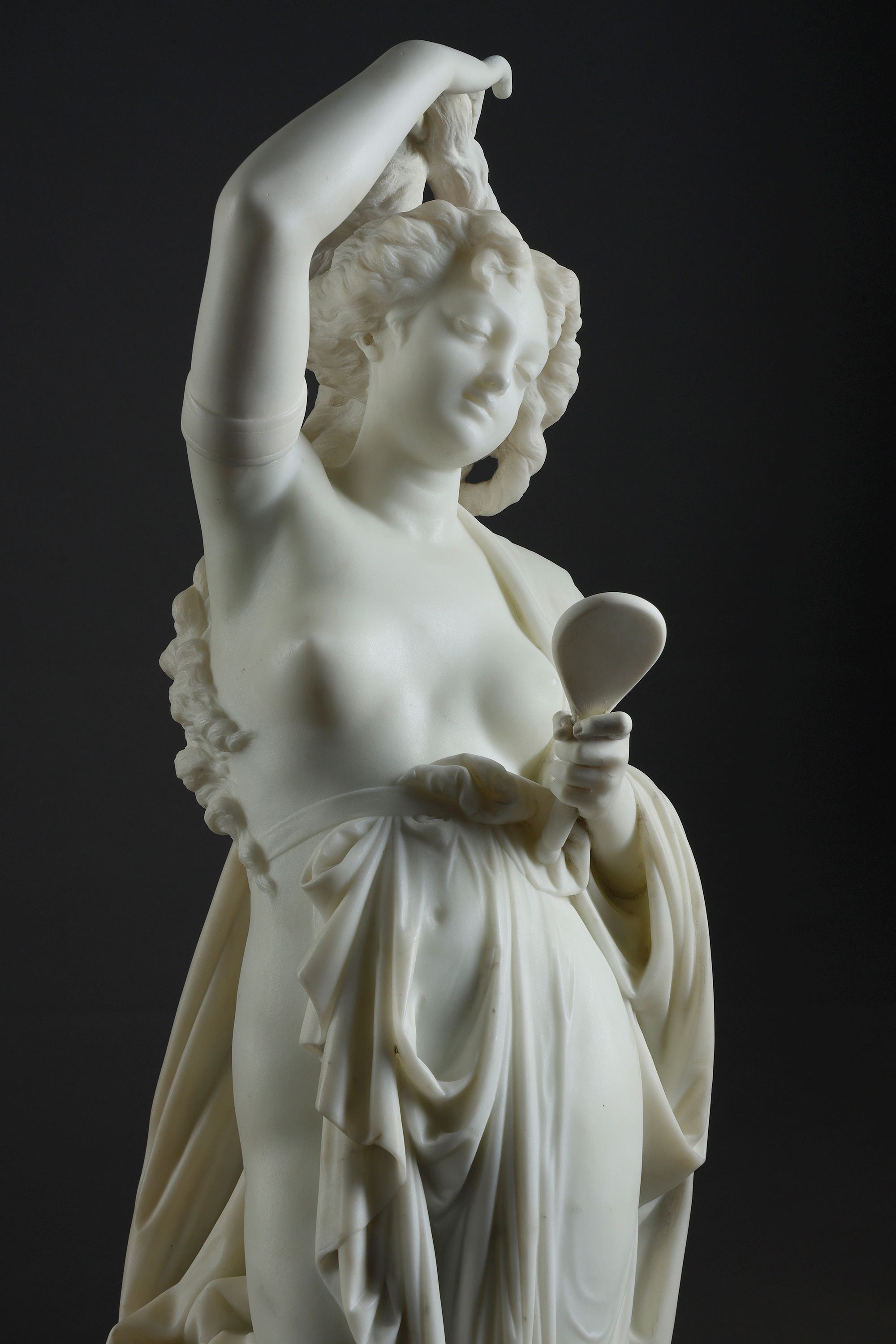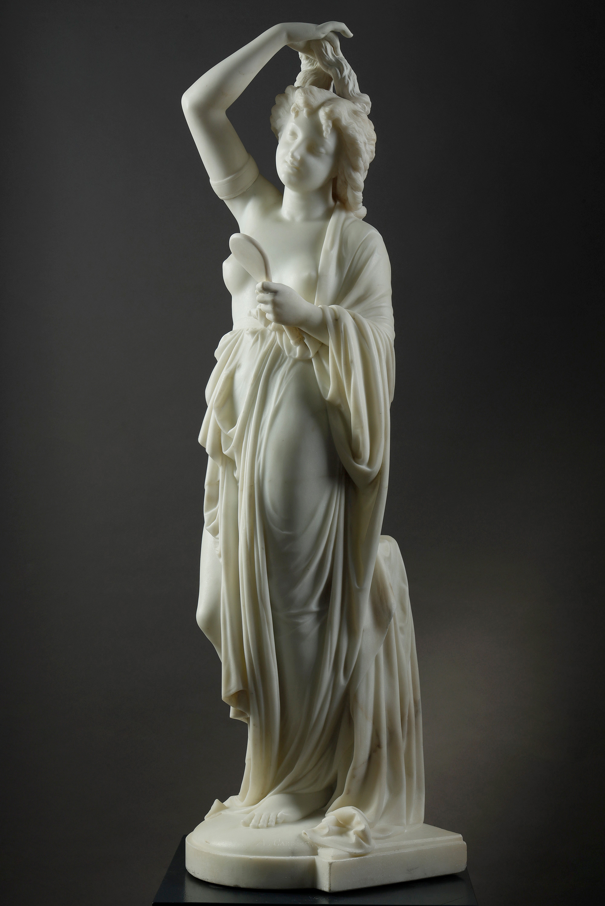 19世纪法国雕塑名家Albert Ernest Carrier Belleuse签名创作人物主题大理石雕塑作品《持镜女子》