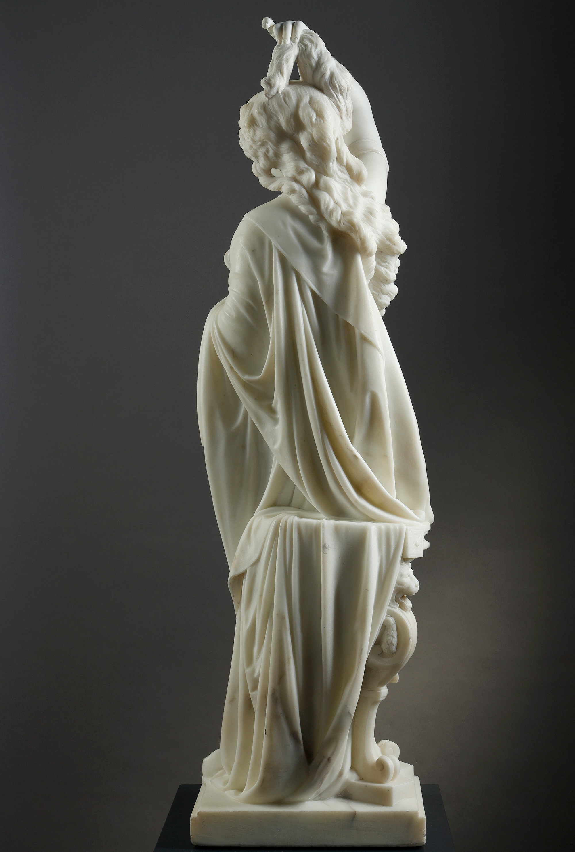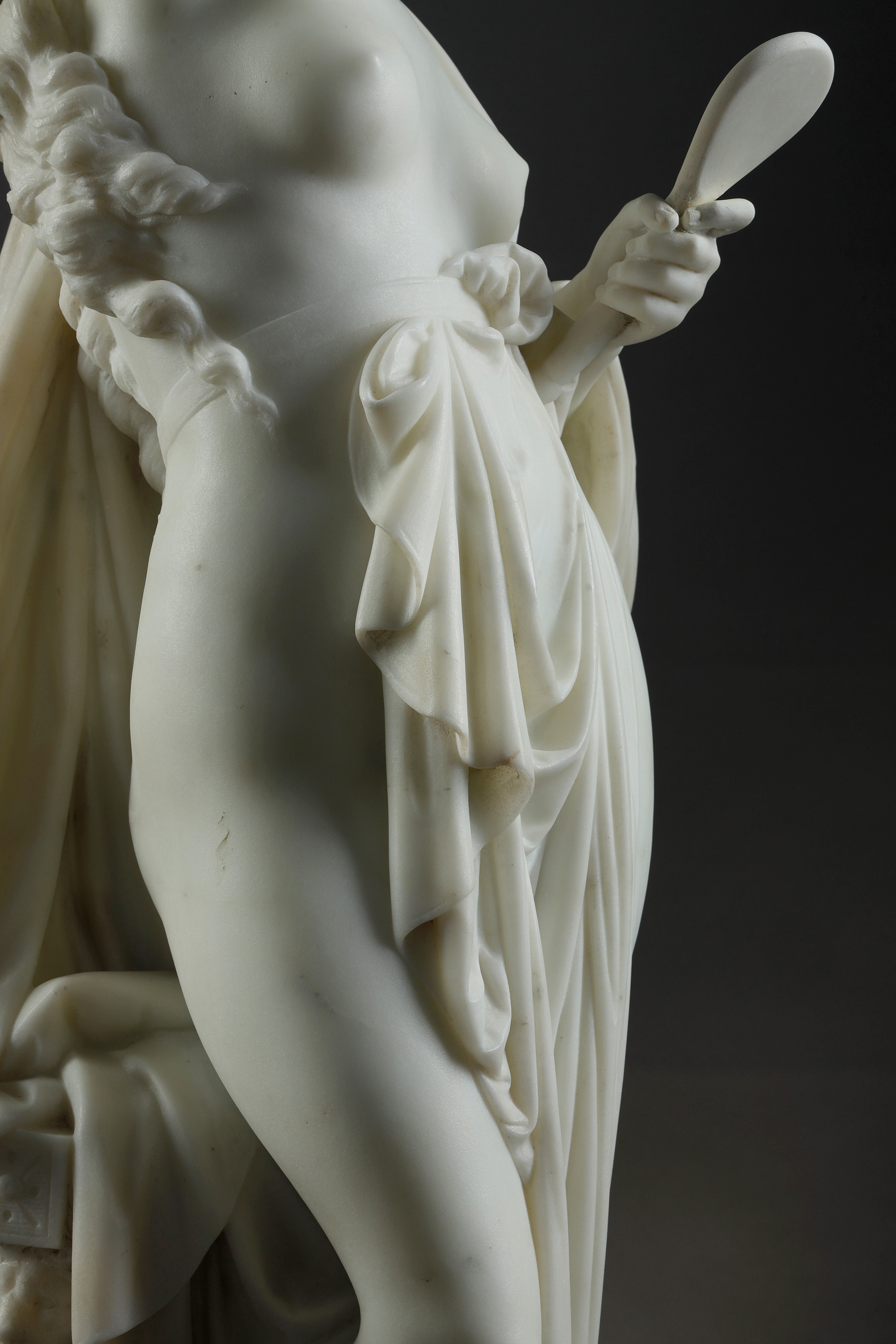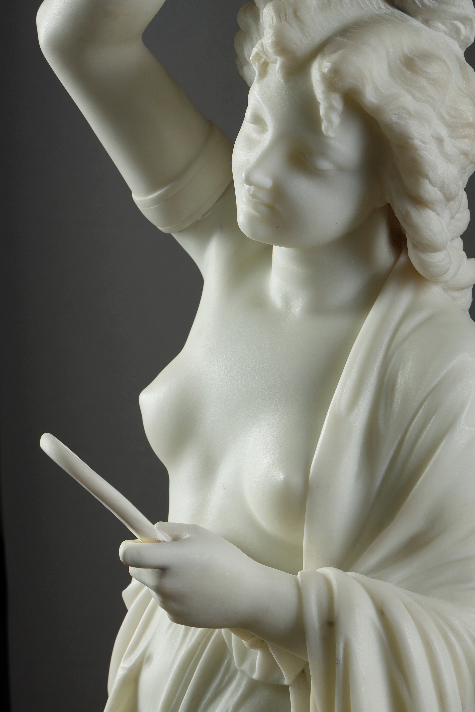 19世纪法国雕塑名家Albert Ernest Carrier Belleuse签名创作人物主题大理石雕塑作品《持镜女子》