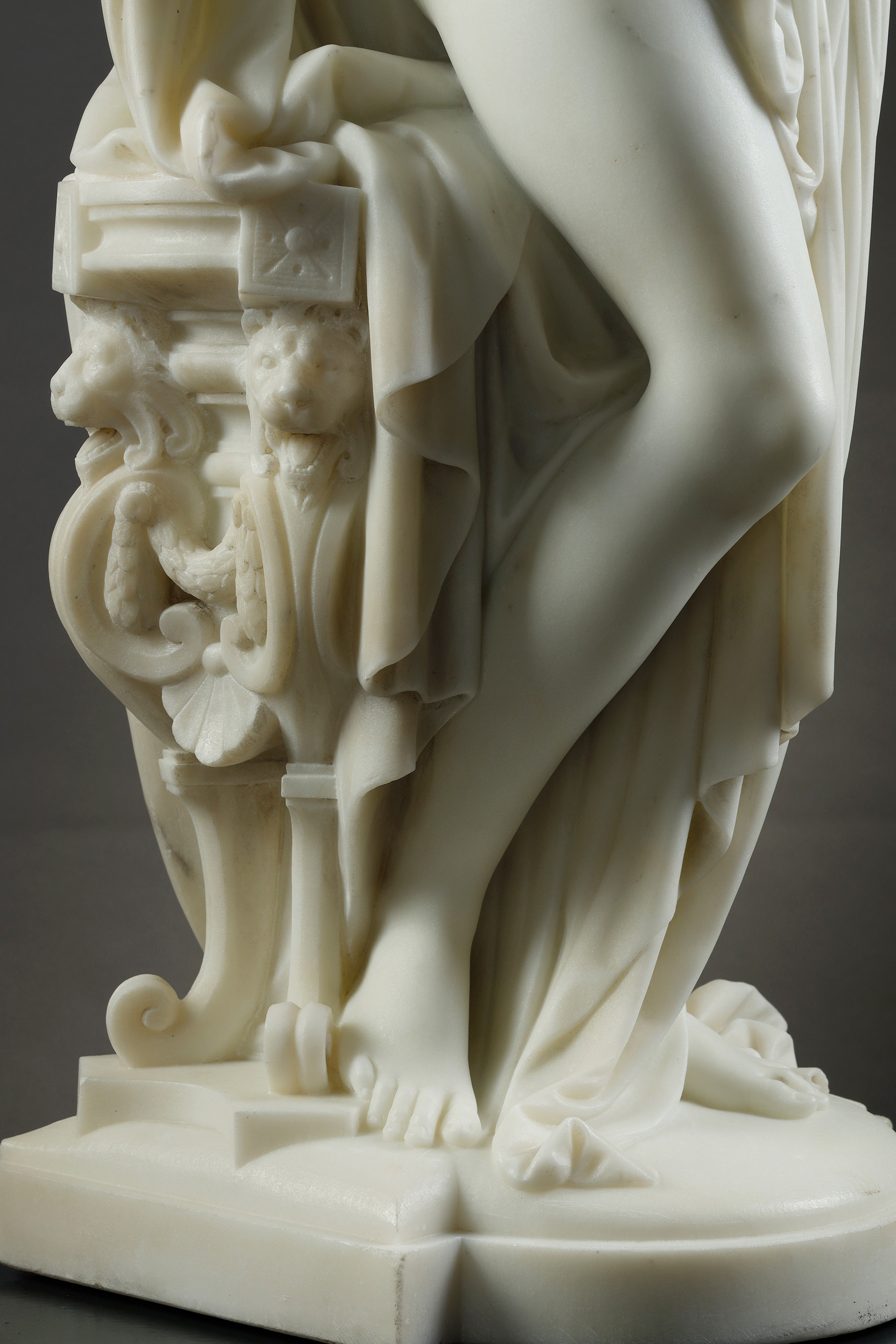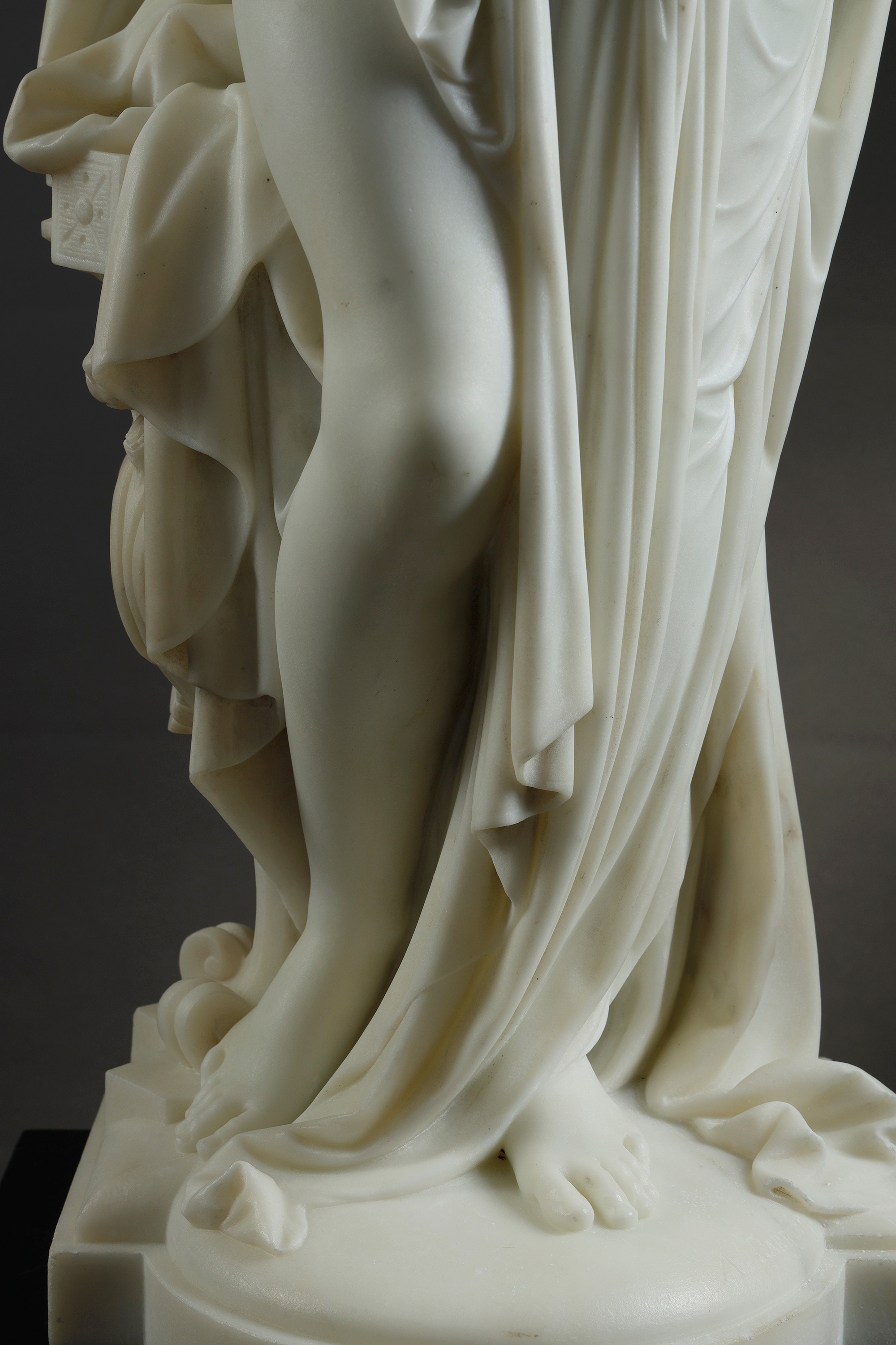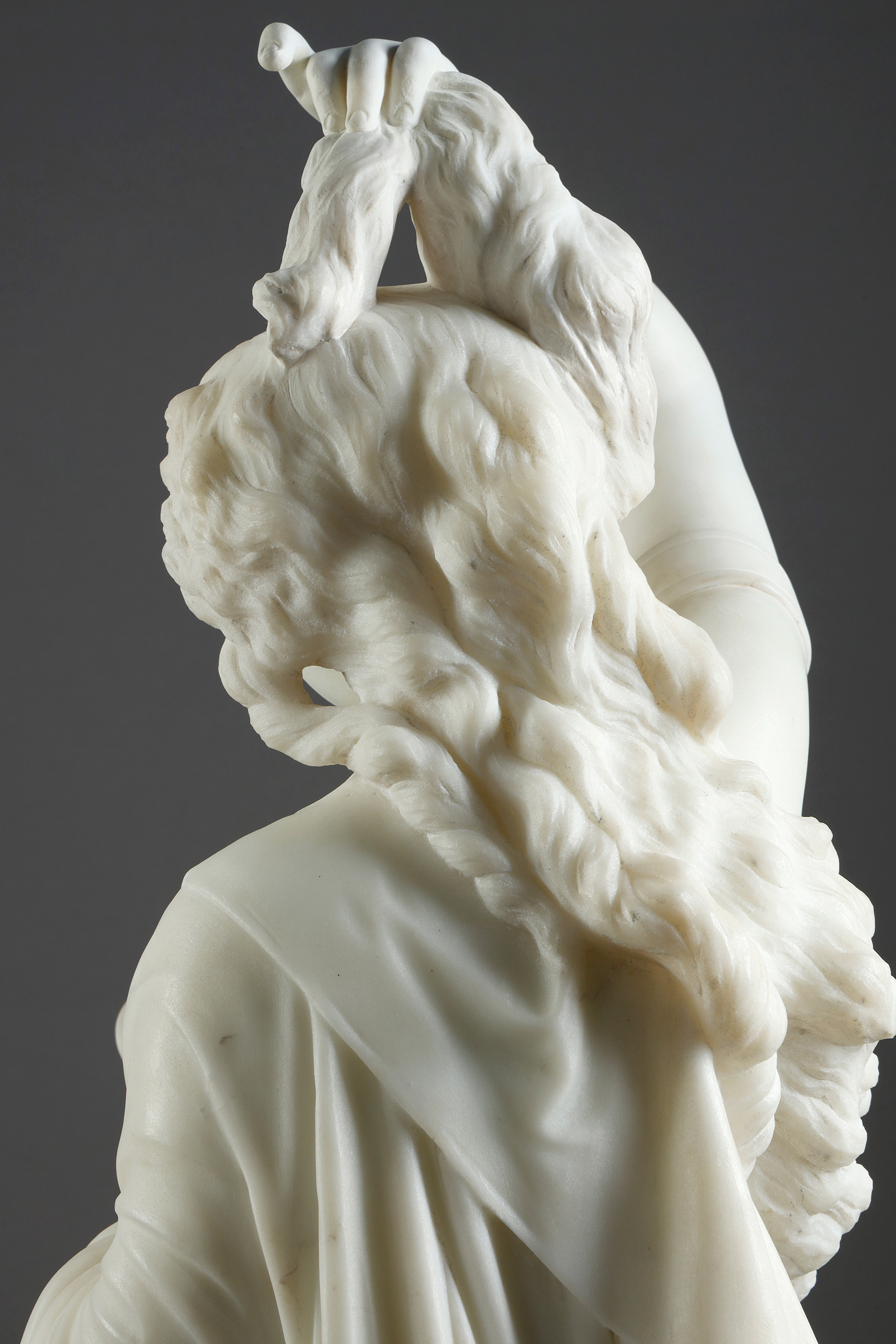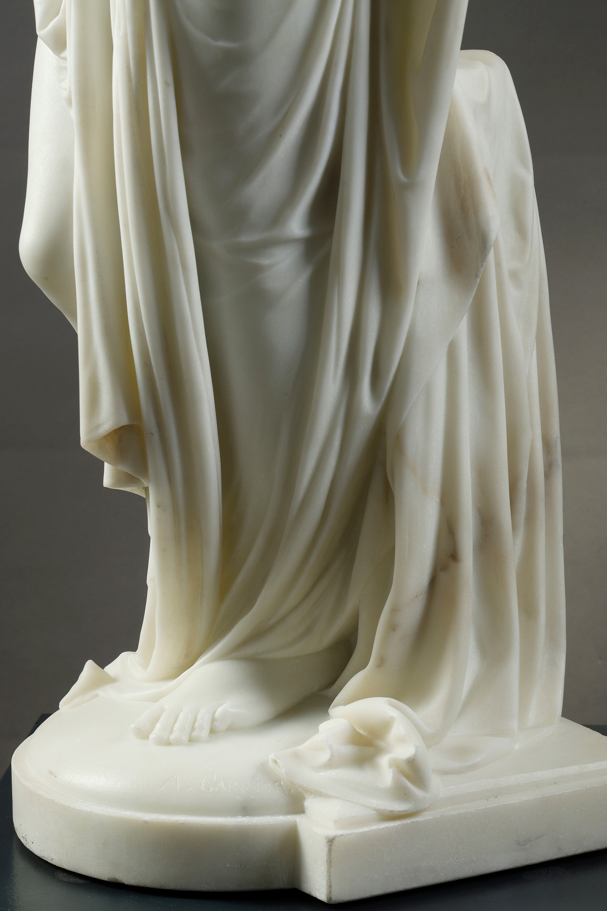 19世纪法国雕塑名家Albert Ernest Carrier Belleuse签名创作人物主题大理石雕塑作品《持镜女子》